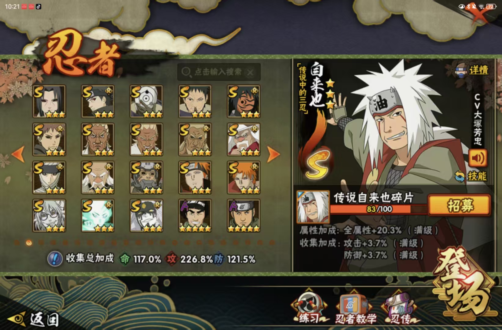 两个号S忍基本互补,漂泊系列5个,新春4个,91片创立初代,83片传自,67片十尾带土,有意私