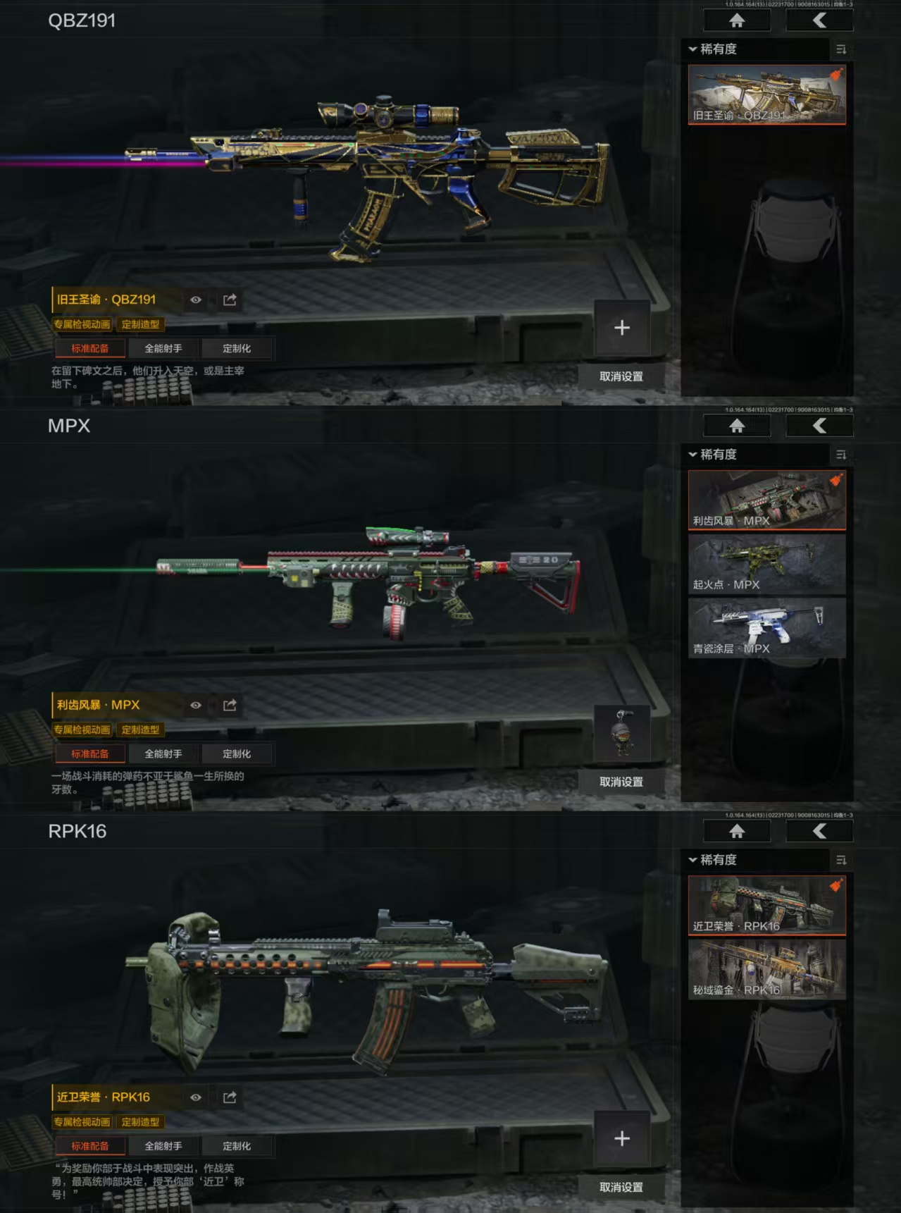 DZH705安卓Q-等级30-仓库价值19.3M-科恩币5826K-【近战武器】下弦月 工兵铲【枪皮】 镀火熔金·H416 赤帽要塞AR57 利齿风暴·MPX 近卫荣誉·RPK16 旧王圣谕·QBZ191