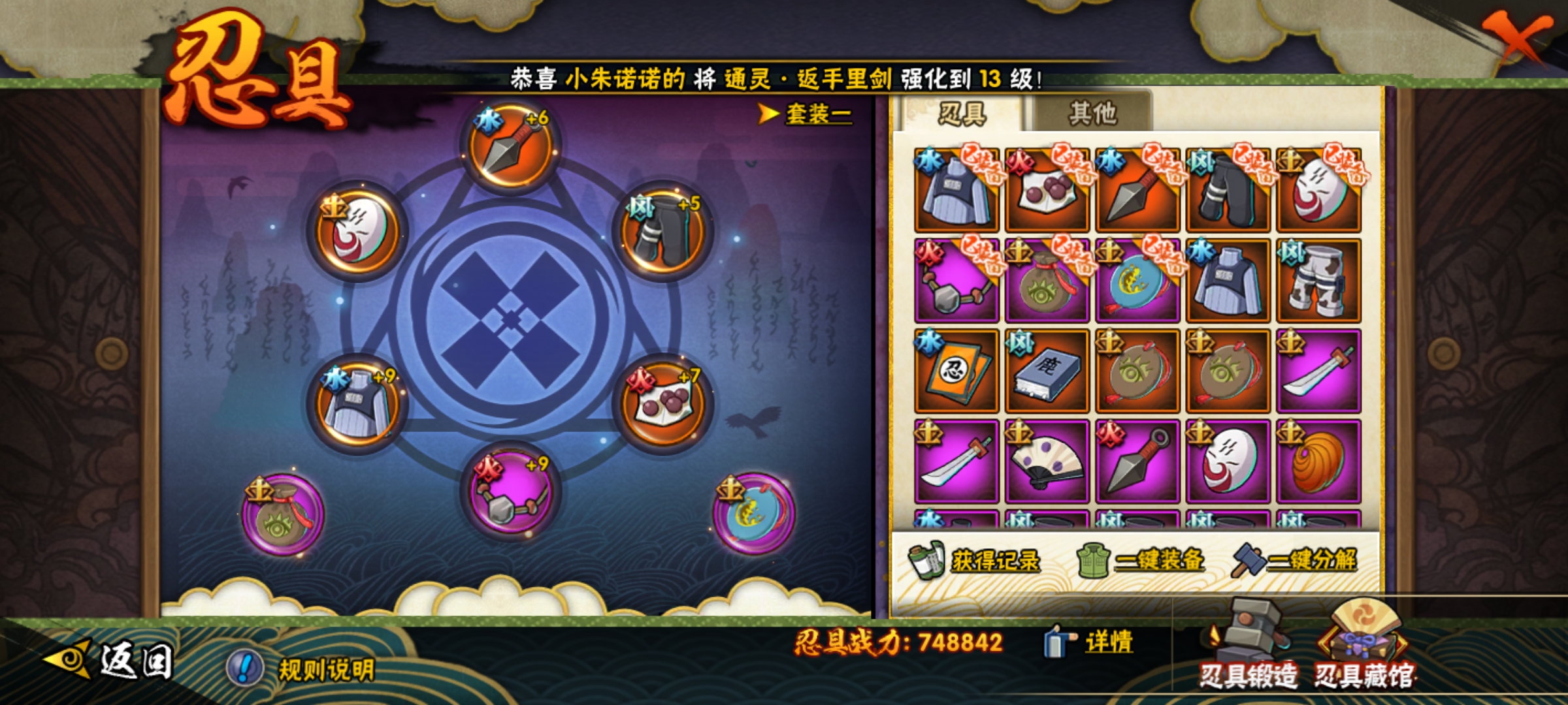 WLHY545【区服】3551【等级】136【S级数量】6【A级数量】21【B级数量】24【C级数量】32【S级】宇智波佐助「永恒万花筒」 波风水门 漩涡鸣人·宇智波佐助 宇智波鼬「须佐能乎」 佩恩「天道」 自来也「舞之豪杰」【A级】宇智波鼬 干柿鬼鲛 长十郎「六代目水影」 千代「近松十人卫」 迈特凯「青春爆炸」 猿飞阿斯玛 秋道丁次「忍界大战」 飞段「死司凭血」 日向宁次「忍界大战」 药师兜「半蛇斗篷」 迪达拉 迈特凯 巳月「仙人模式」 我爱罗「疾风传」 迪达拉「秽土转生」 宇智波佐助「万花筒