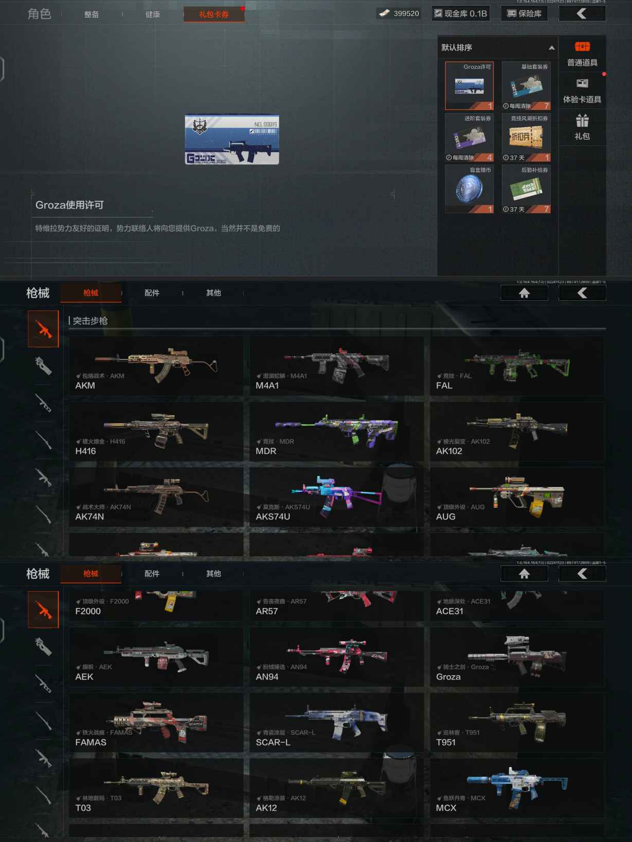 ZMTW802【巨额资产现金库0.1B 12金枪】安卓Q-等级30-仓库价值171.7M-科恩币399520+0.1B现金-【套装】金狮护身·转运套装 鎏金街头套装 都市夜影套装 公司成员套装 王国卫队礼装·轻装 赤色福星·套装 金红闪电.套装 财团之手作战套装 和平先锋作战套装【枪皮】竞技·FAL 包络战术·AKM 镀火熔金.H416 旧王圣谕·QBZ191 浮鳞影青·QBZ192 玉擎天工.MP5 旗帜·AEK 地脉深处.ACE31 告丧夜曲·AR57 利齿风暴·MPX 利齿风暴·MPX 旧