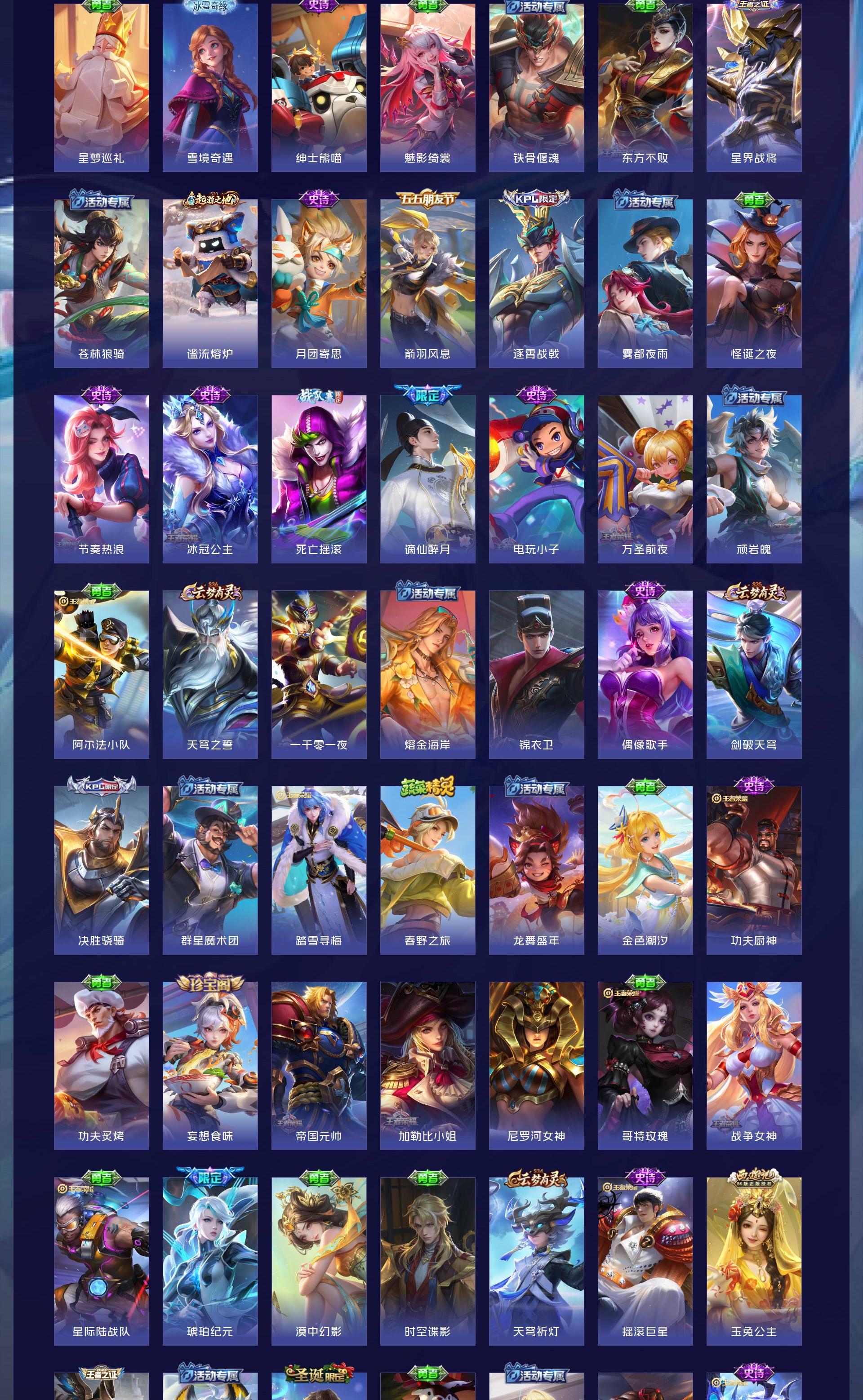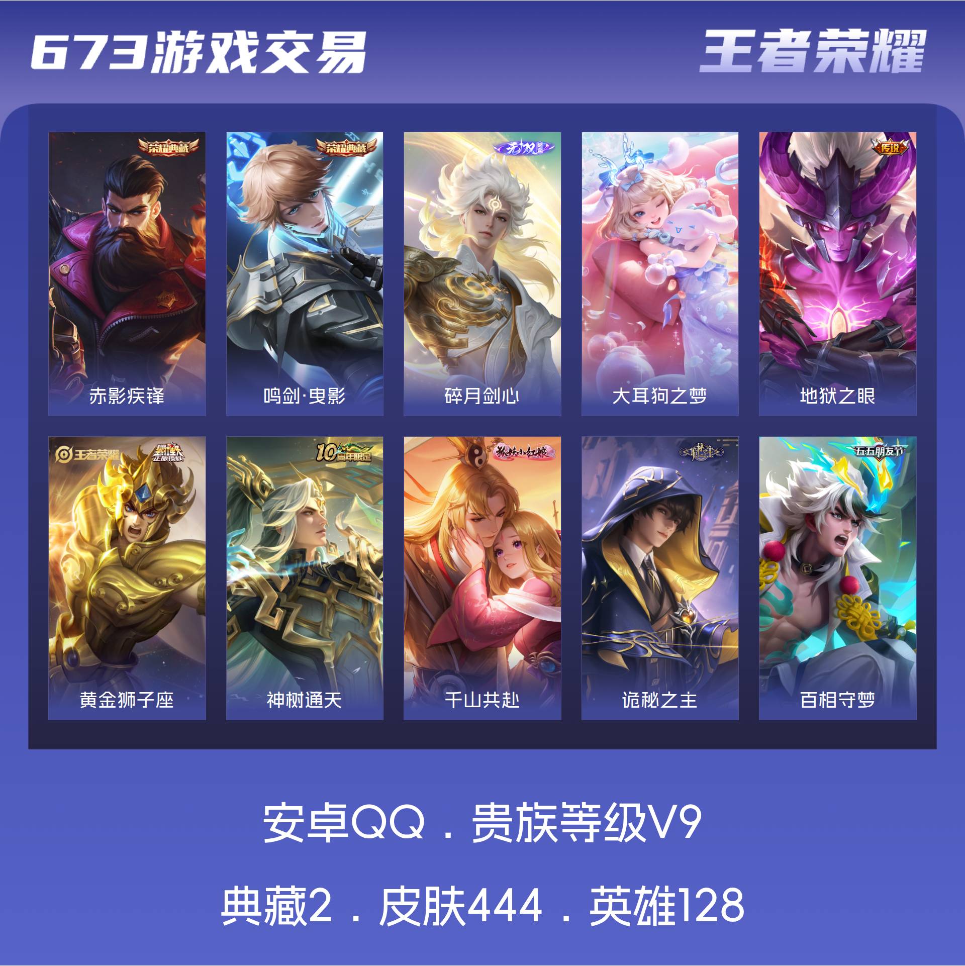 V9 皮肤444 英雄128 最强王者 荣耀典藏2 无双皮肤1 珍品传说1 星传说3 传说31 其他皮肤410