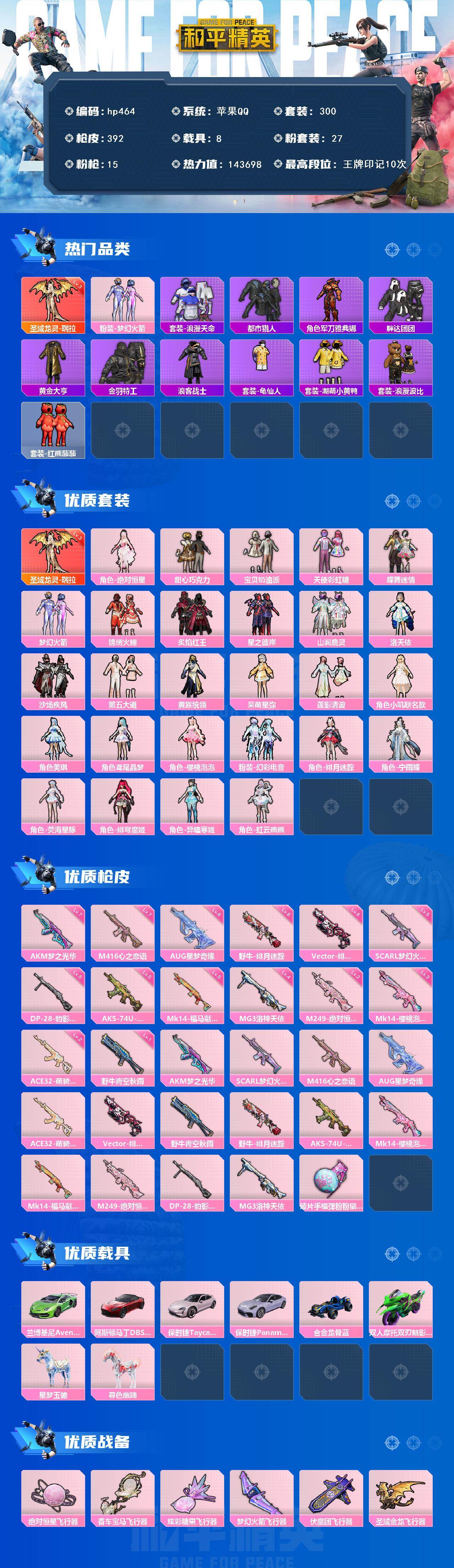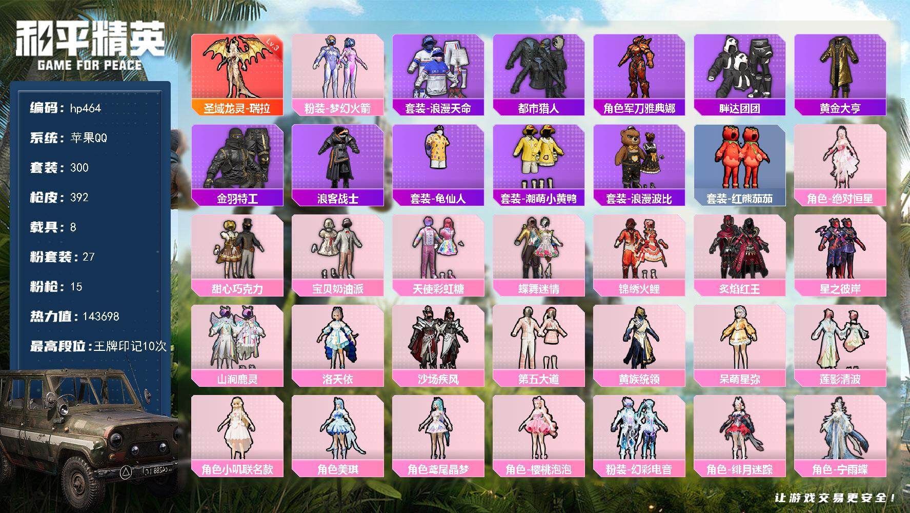 [17162045]苹果 手Q-1神装-27粉装-15特效枪-8载具-11粉色飞