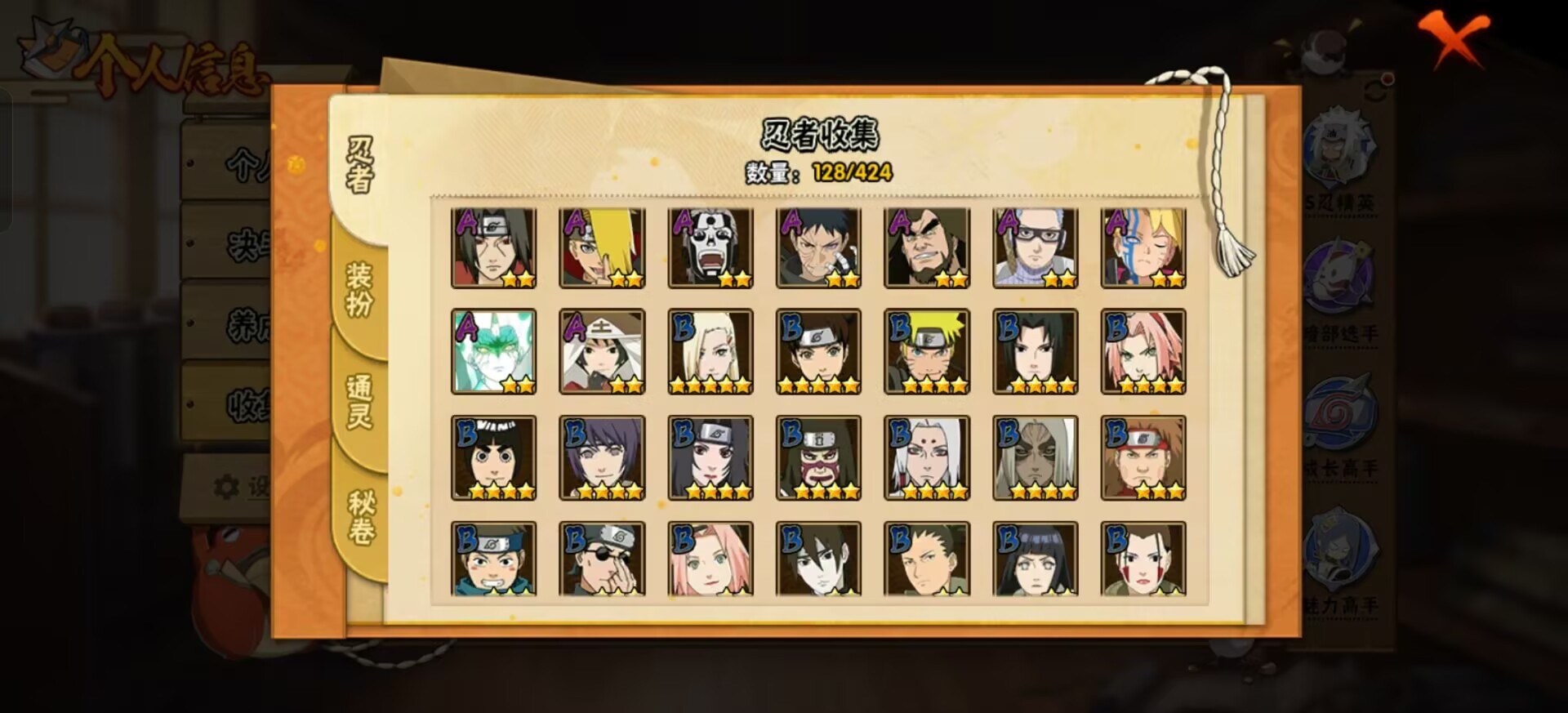 【S级忍者】宇智波斑「秽土转生·解」,自来也 「舞之豪杰」,自来也 「传说中的三忍」,波风水门「九喇嘛连结」,漩涡鸣人·宇智波佐助,宇智波鼬「秽土转生」,宇智波斑「白面具」,宇智波鼬 「须佐能乎」,佩恩「天道」,波风水门
