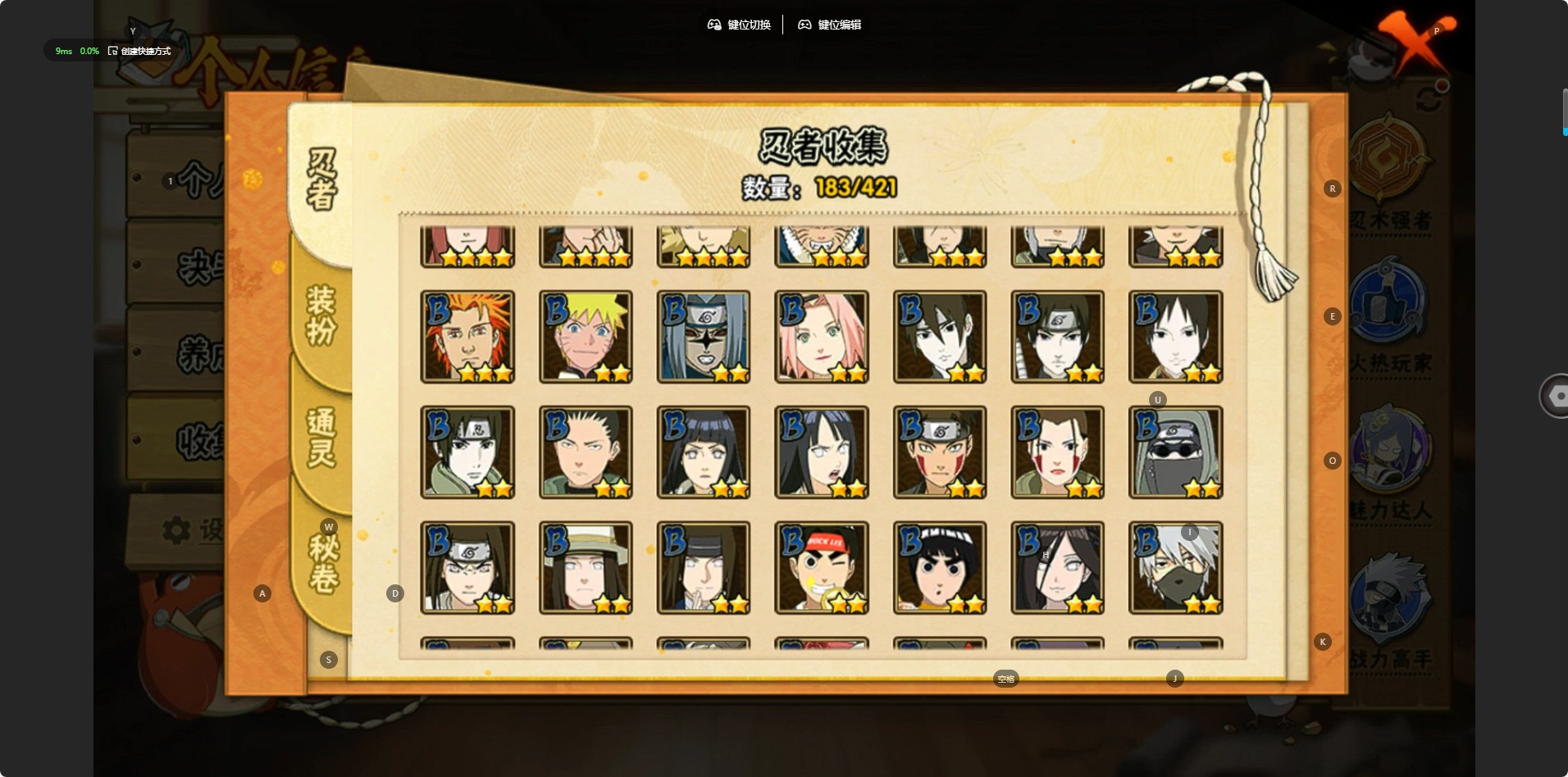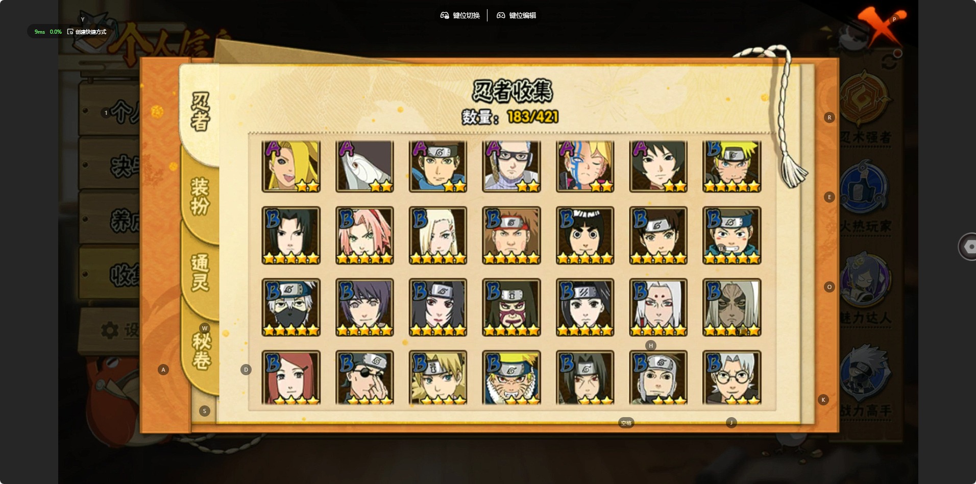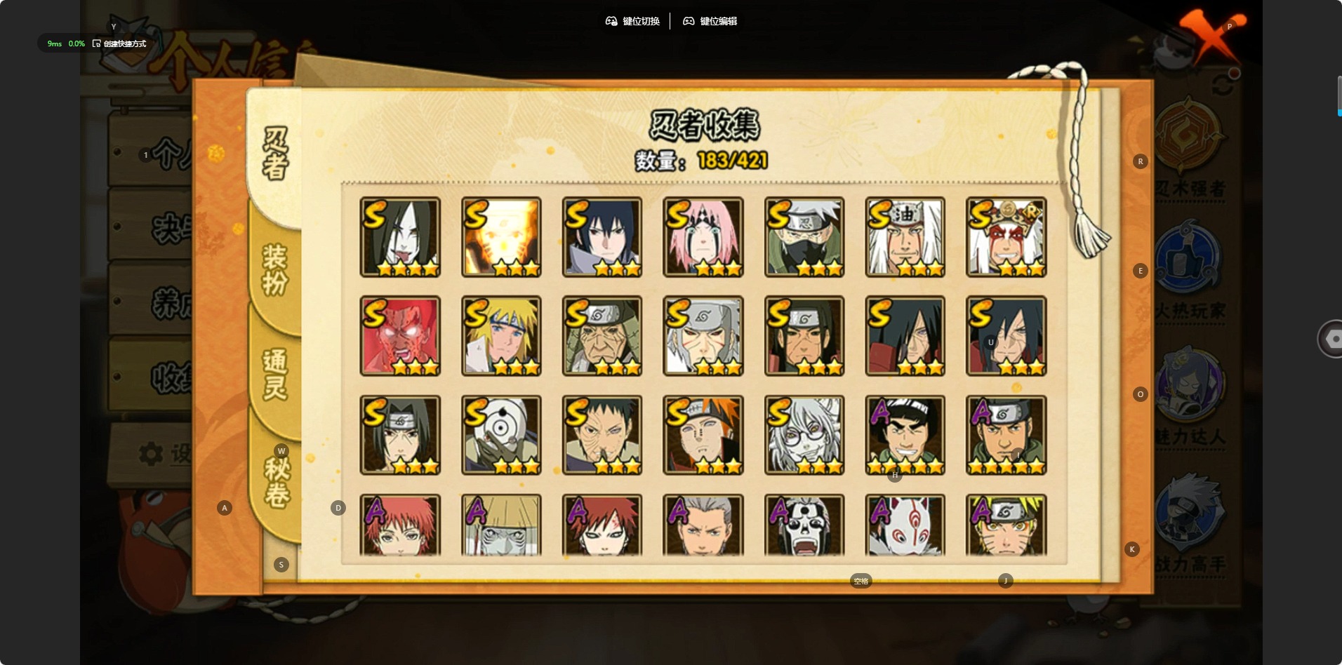 【S级忍者】宇智波斑「秽土转生·解」,宇智波佐助「永恒万花筒」,春野樱 「忍界大战」,漩涡鸣人 「九喇嘛连结」,迈特凯「死门」,宇智波带土 「忍界大战」,千手柱间「秽土转生」,自来也 「舞之豪杰」,旗木卡卡西「须佐能乎」,自来也 「传说中的三忍」,药师兜「仙人模式」,宇智波斑「秽土转生」,宇智波斑「白面具」,千手扉间「秽土转生」,猿飞日斩「秽土转生」,宇智波鼬 「须佐能乎」,佩恩「天道」,波风水门,