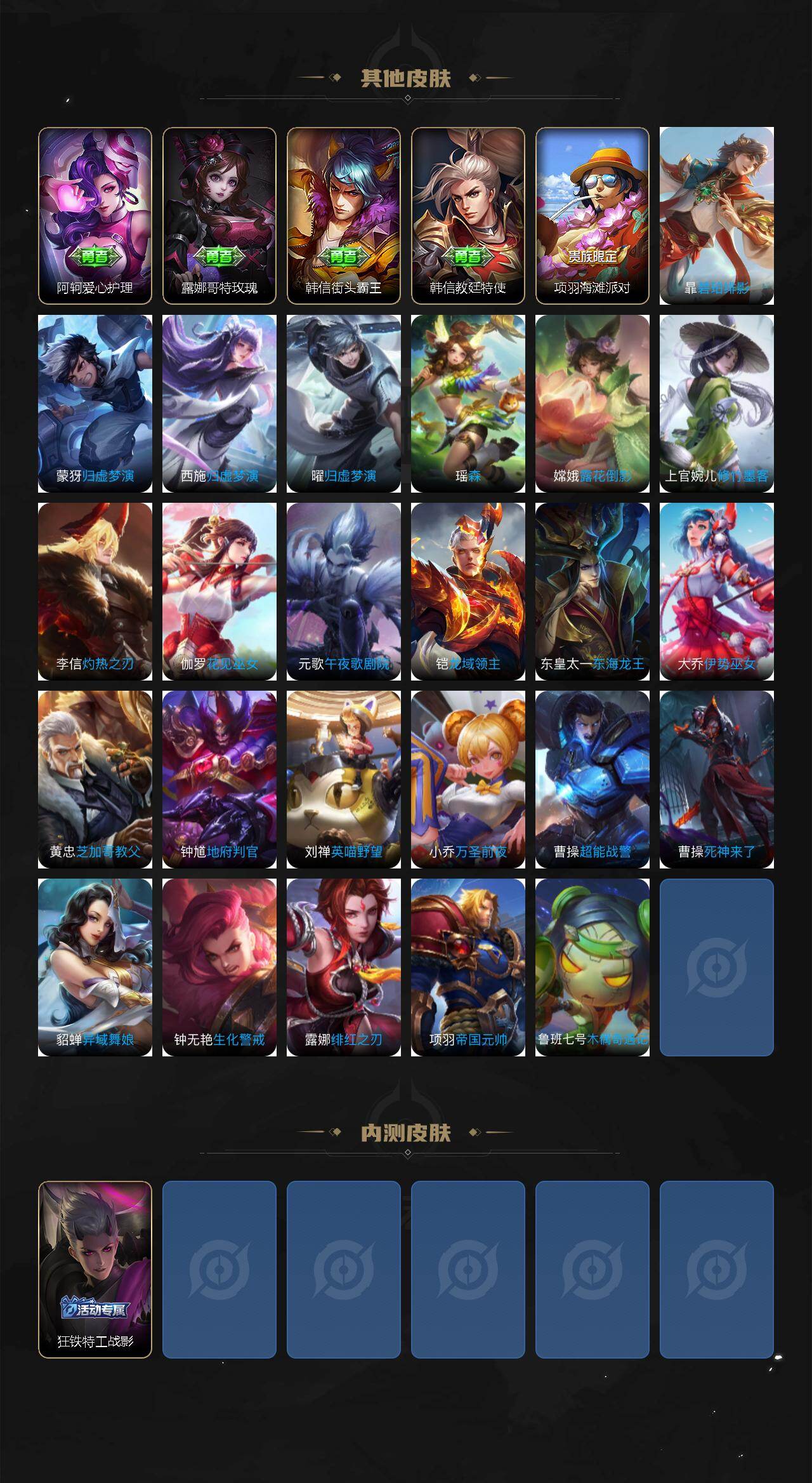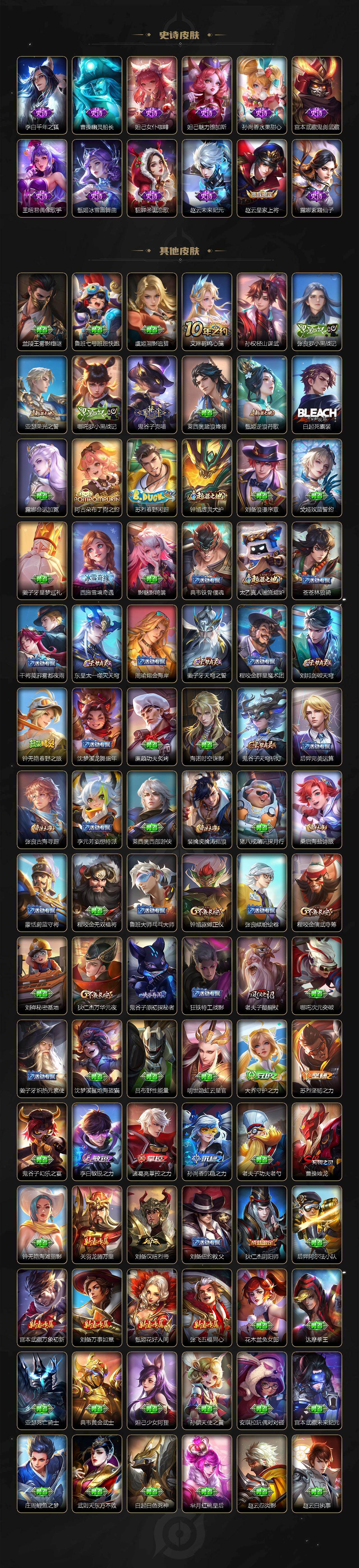 【限定皮肤】:姜子牙天穹之誓,狄仁杰阴阳师,赵云皇家上将,曹操烛龙,狄仁杰万华元夜,项羽