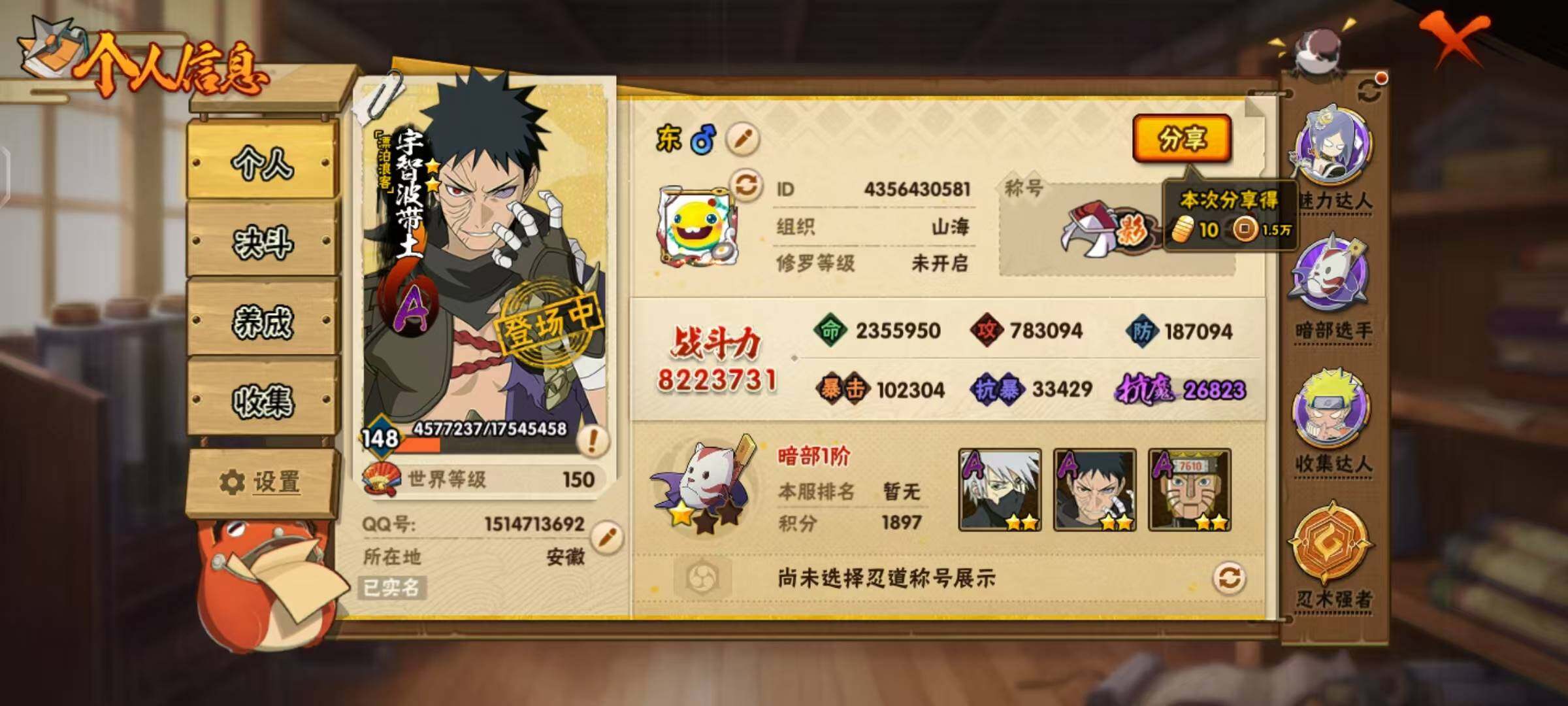 18S级忍者数-45A级忍者数【S级忍者】:长门「秽土转生」(3星),猿飞日斩