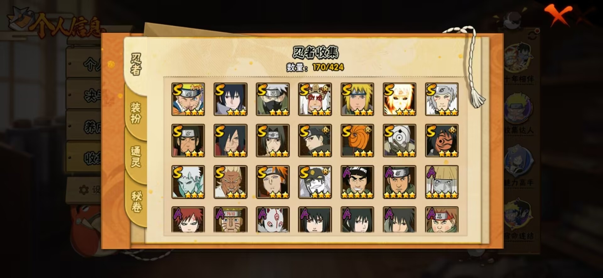 【S级忍者】宇智波止水「须佐能乎」,艾「忍界大战」,大筒木桃式,宇智波斑「秽土转生·解」,宇智波佐助「永恒万花筒」,神秘面具男 「红夜之刃」,自来也 「舞之豪杰」,旗木卡卡西「须佐能乎」,波风水门「九喇嘛连结」,漩涡鸣人·宇智波佐助,宇智波带土「十尾人柱力」,宇智波斑「白面具」,千手扉间「秽土转生」,千手扉间,神秘面具男,宇智波鼬 「须佐能乎」,佩恩「天道」,波风水门