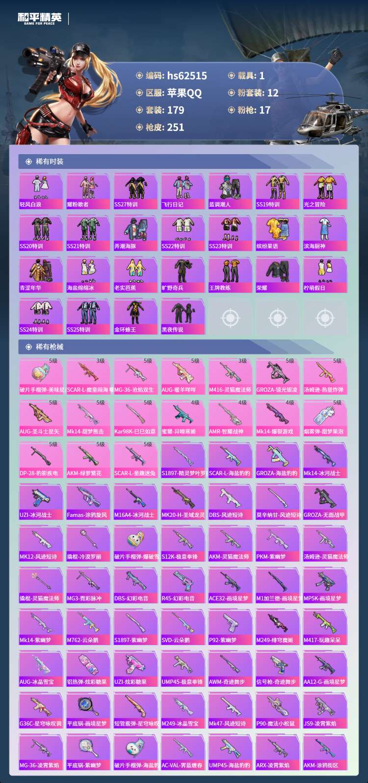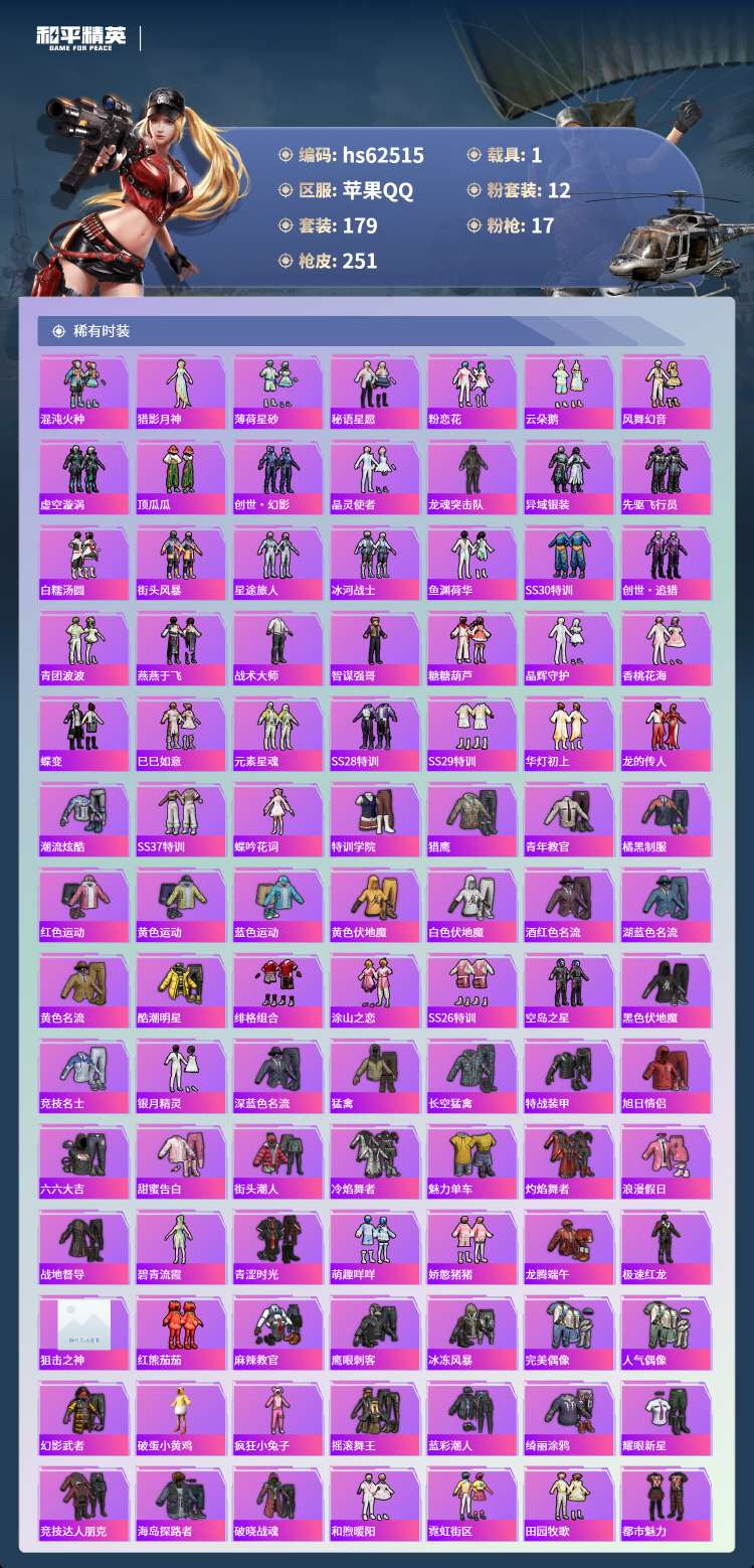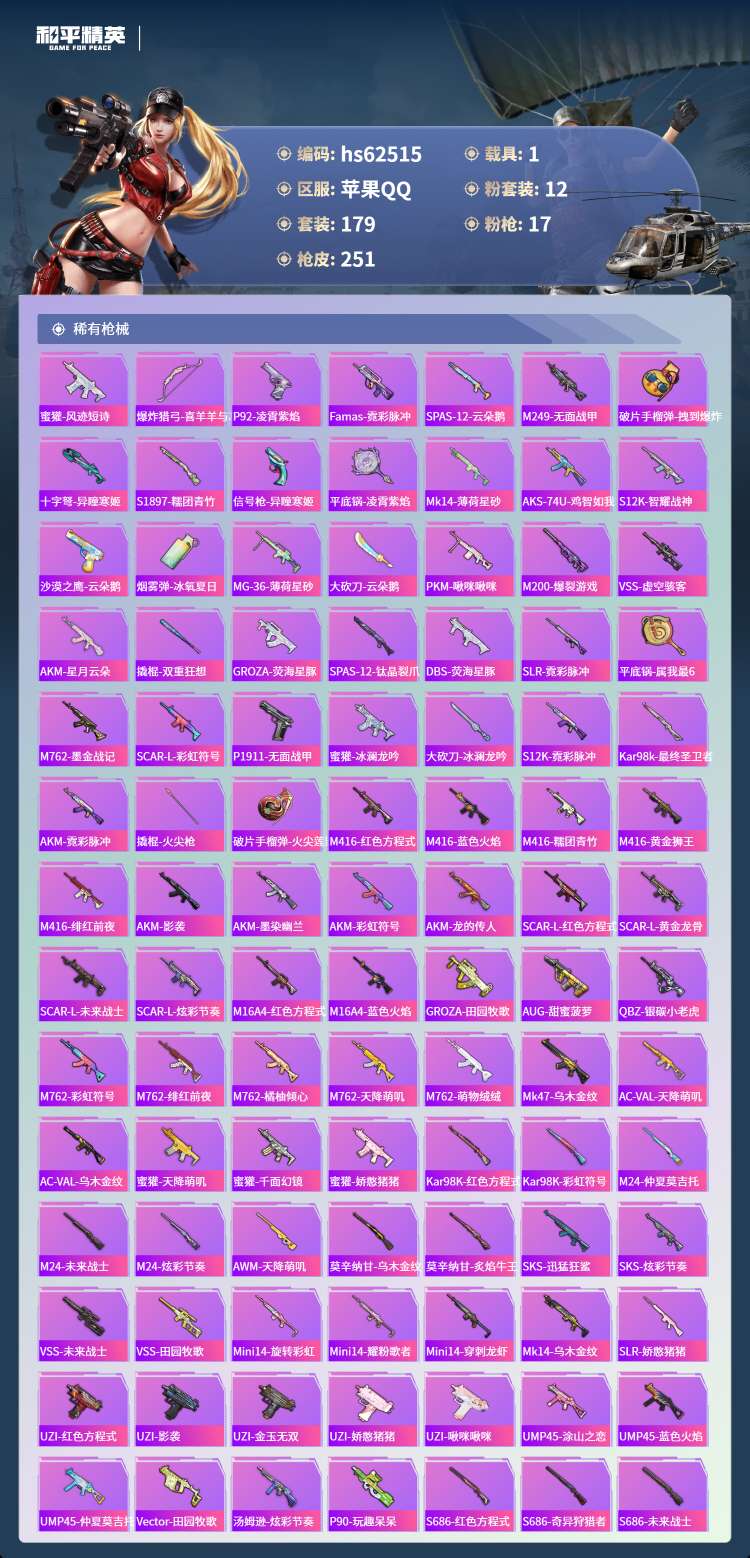 hs62515 苹果手Q-15王牌印记-有战神框-1红装-12粉装-17特效枪-1载具-81555热