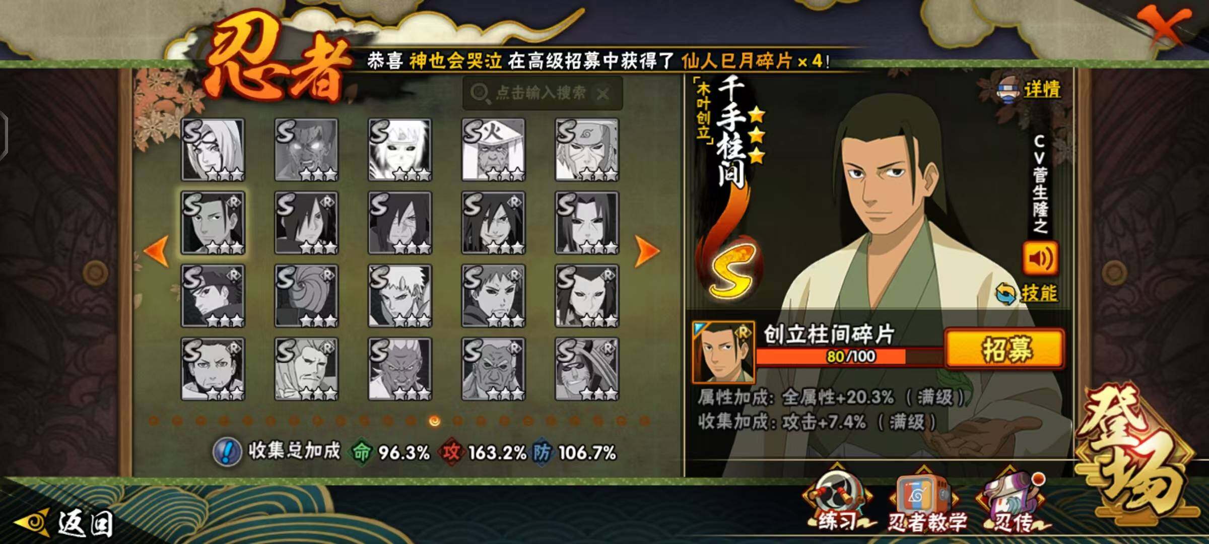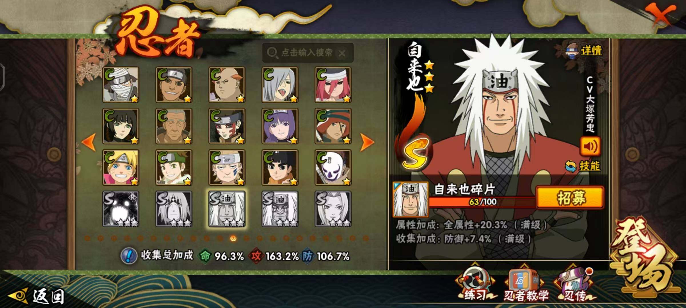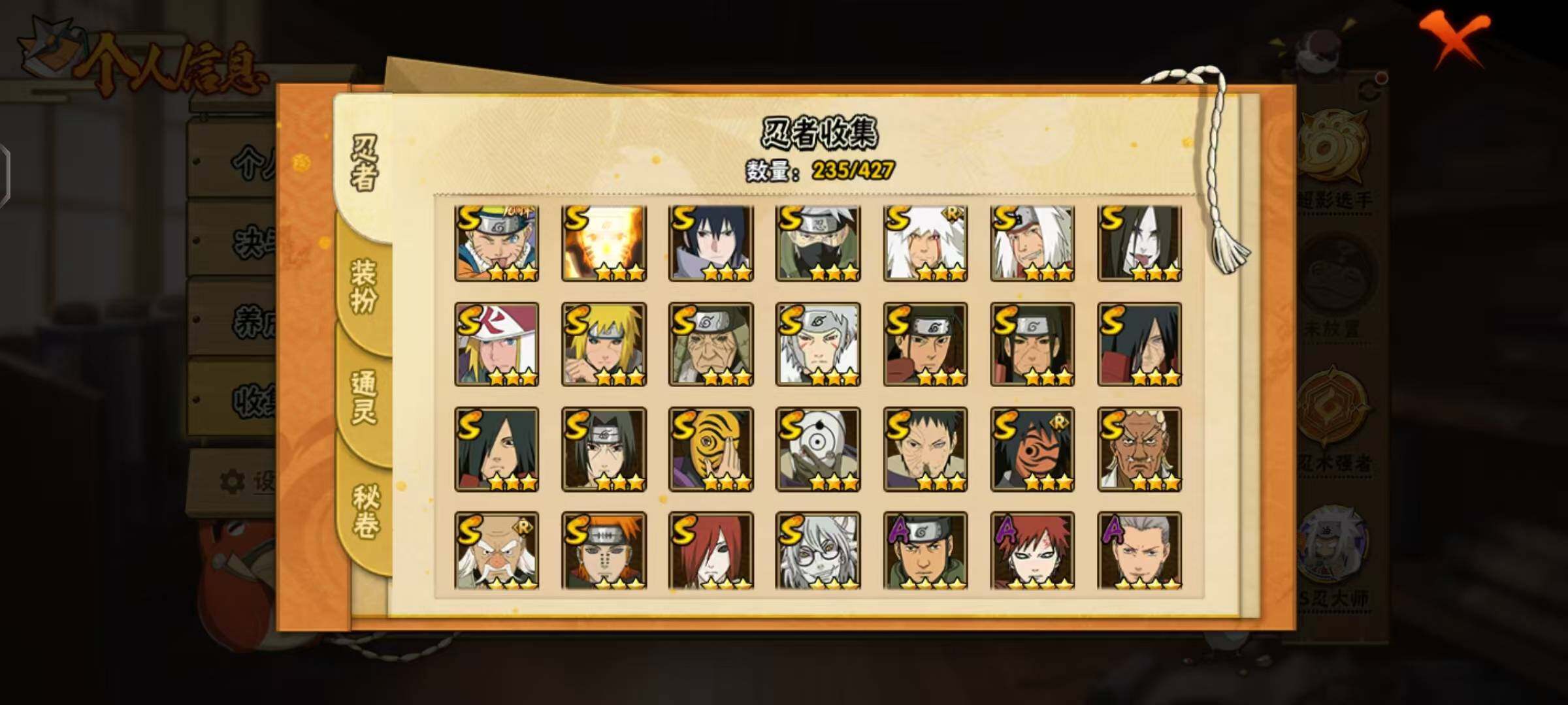 VIP9,851W战力,S忍25个,A忍46个,金银角98片,带土59片,创立