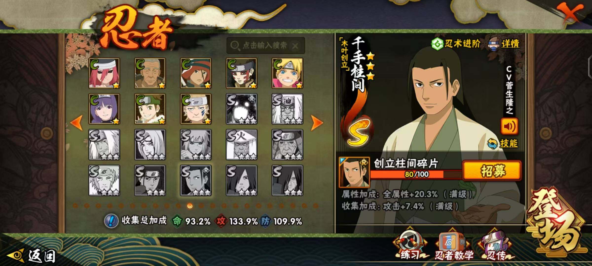 v10,1183万战力,22s,40a,三代97片,创立柱间80片,止水80片,