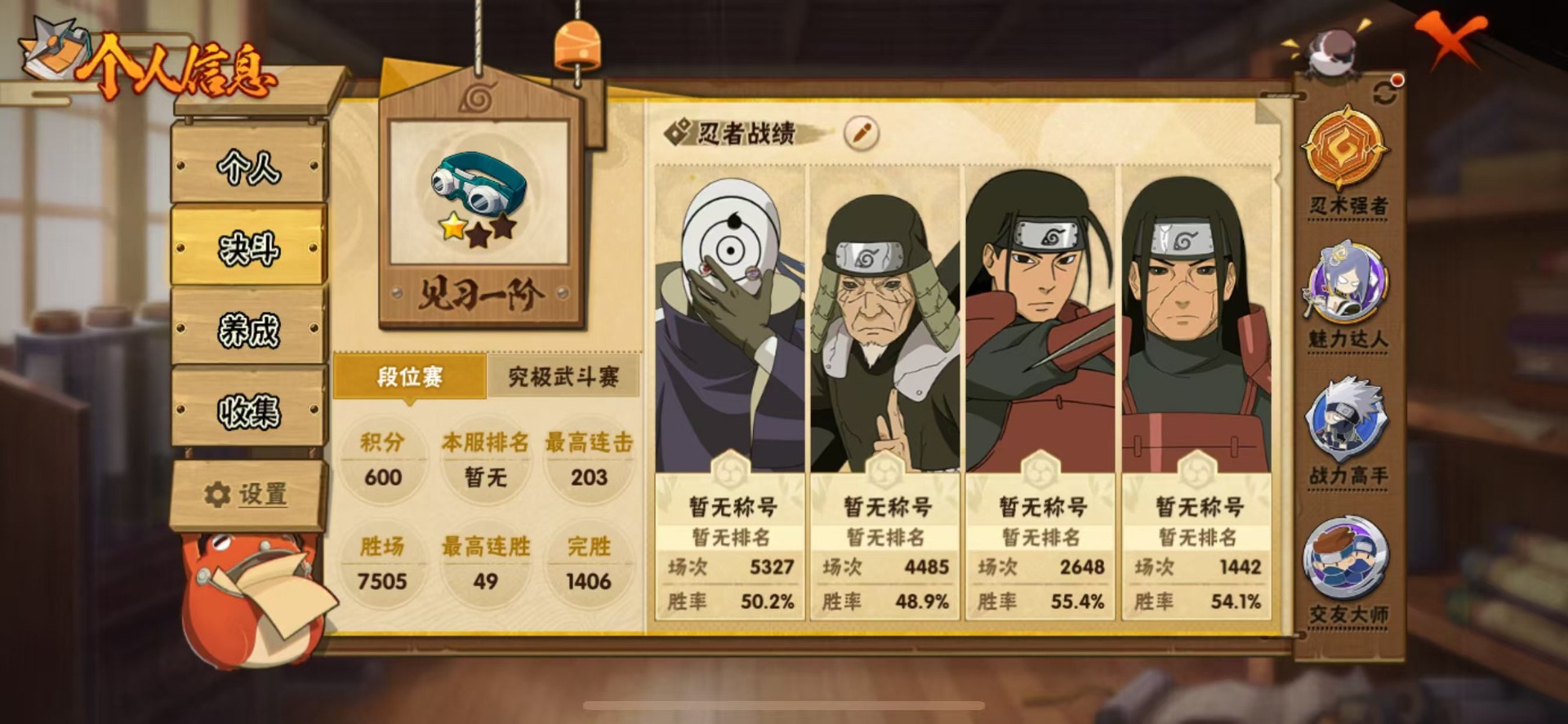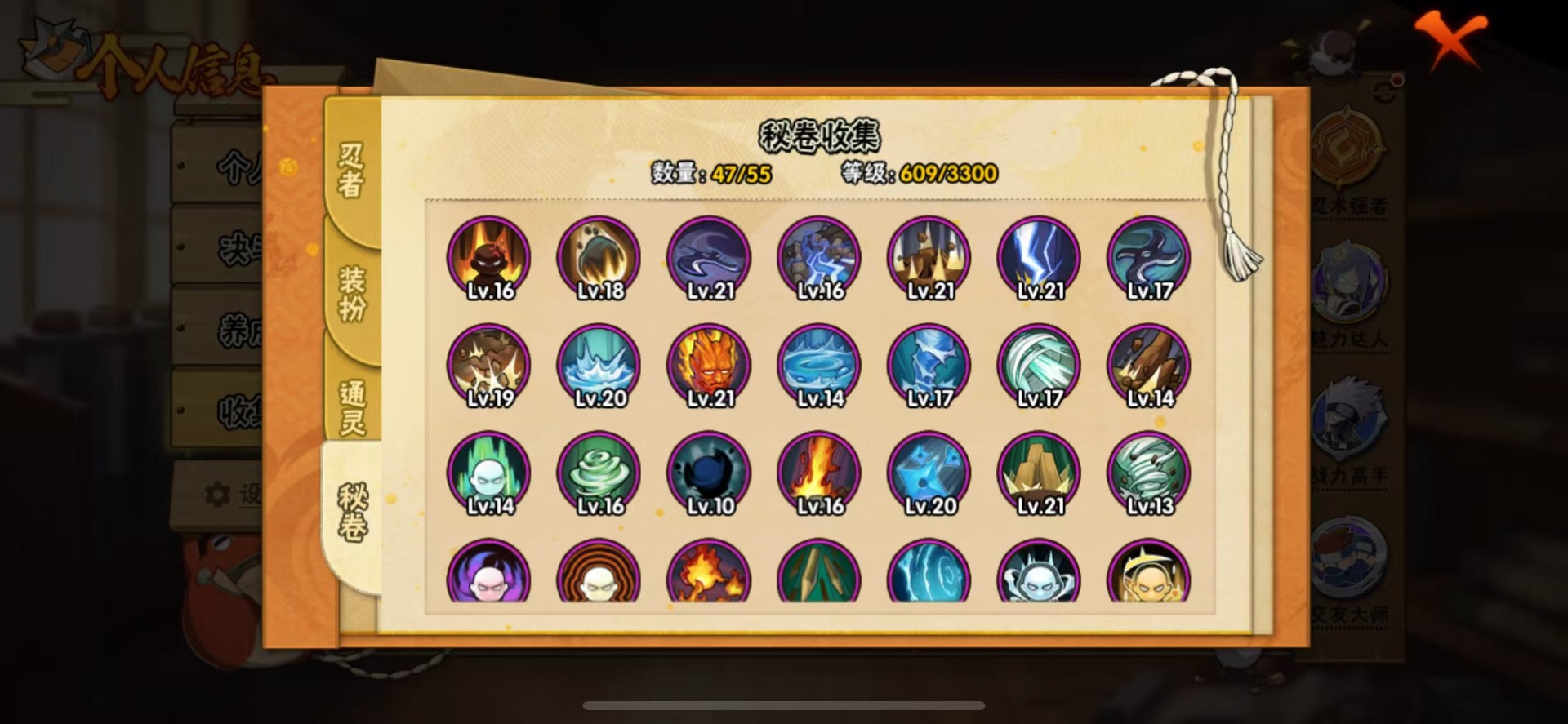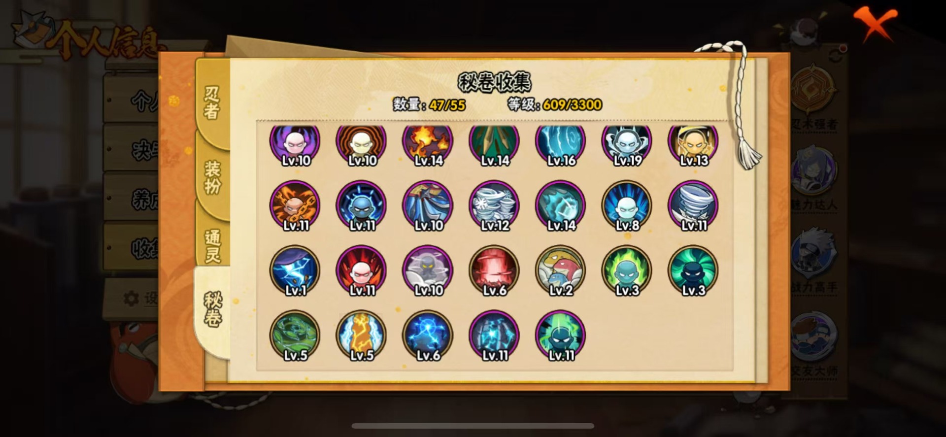 【S级忍者】宇智波止水「须佐能乎」,艾「忍界大战」,大筒木桃式,宇智波斑「秽土转生·解」,宇智波佐助「永恒万花筒」,漩涡鸣人 「九喇嘛连结」,千手柱间「秽土转生」,旗木卡卡西「须佐能乎」,大筒木舍人 「最终章」,自来也 「传说中的三忍」,漩涡鸣人 「暴怒·第六尾」,波风水门「九喇嘛连结」,漩涡鸣人·宇智波佐助,宇智波鼬「秽土转生」,宇智波斑「秽土转生」,宇智波斑「白面具」,千手扉间「秽土转生」,纲手