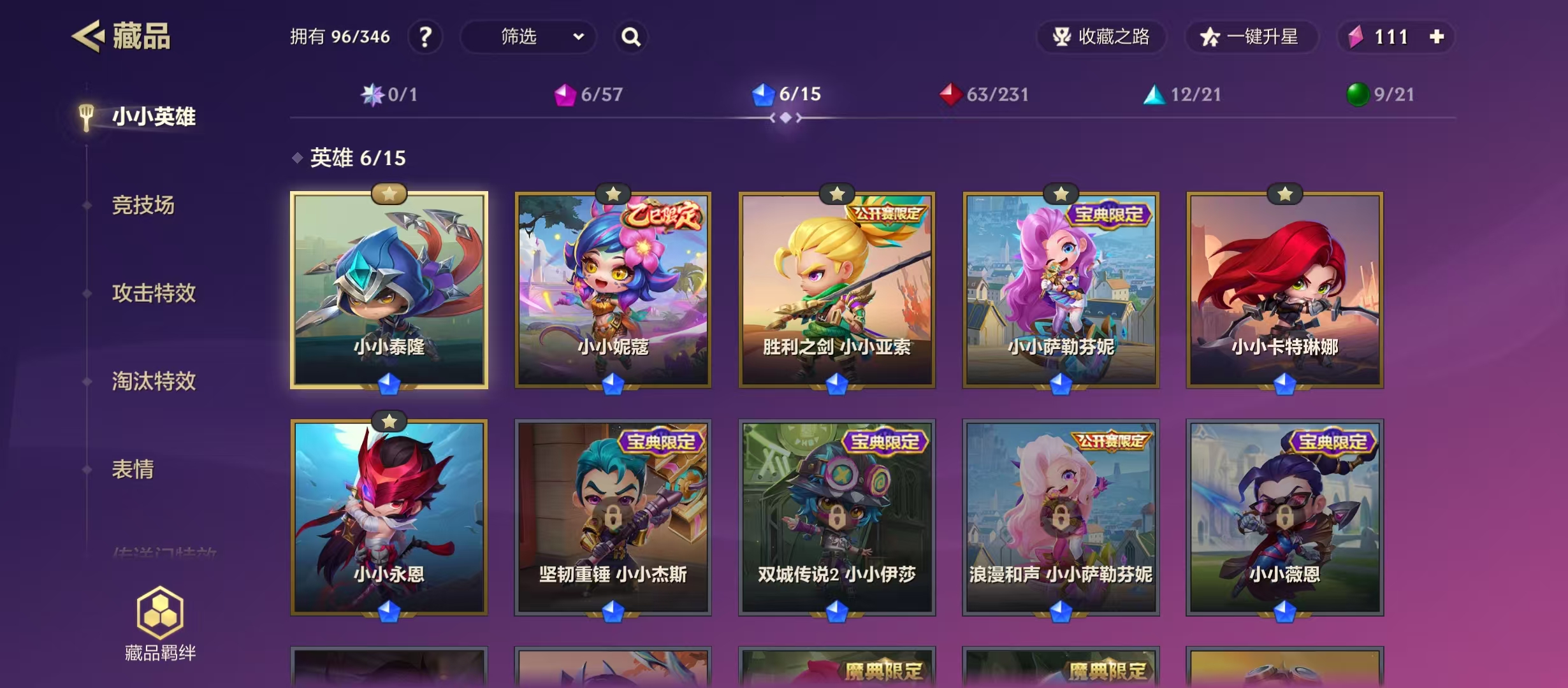 【编号38359】【店长推荐捡漏号】【4神话6小小英雄1英雄竞技场3传说竞技场】 至臻小小亚索 隐龙之子小小伊泽瑞尔 龙腾虎跃小小瑟提 神龙烈焰 小小金克丝 小小泰隆 小小妮蔻 胜利之剑小小亚索 小小萨勒芬妮 小小卡特琳娜 小小永恩剪纸花灯 夜战城楼 魄罗海岛乐园 德玛西亚团结圣坛 攻击特效:至臻小小亚索 隐龙之子小小伊泽瑞尔 龙腾虎跃小小瑟提 神龙烈焰 小小金克丝