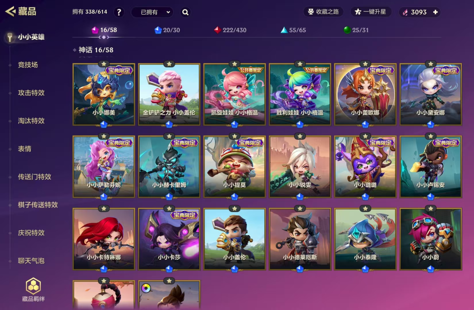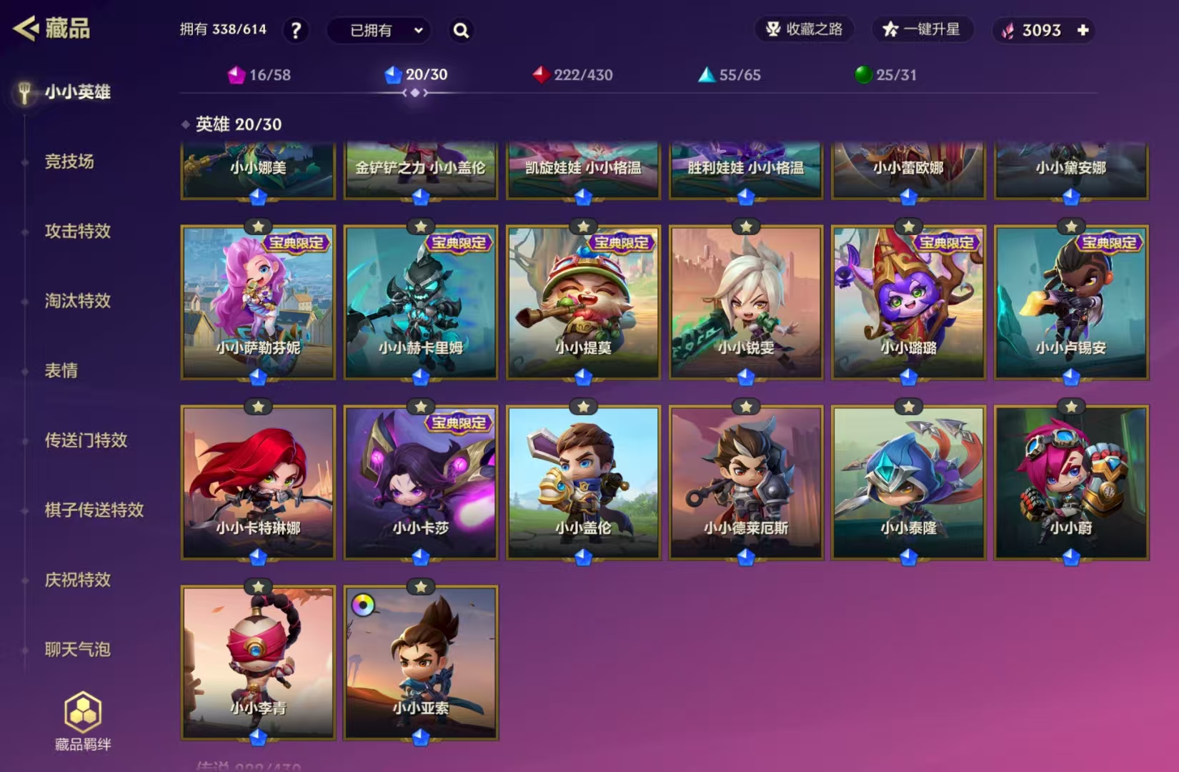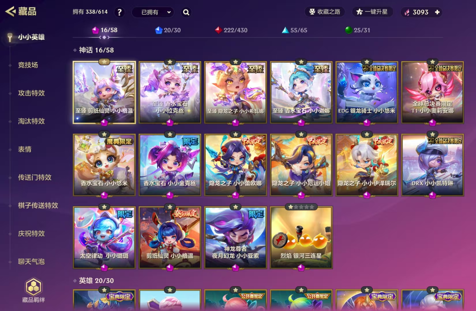 [10664465]【花雨晴天落 至臻格温+至臻龙女+至臻迦娜+至臻拉克丝+11神话+可可爱爱+香水宝石宫+远古龙息】可二次 小小英雄(神话)(15) 至臻 剪纸仙灵 小小格温,剪纸仙灵 小小格温,神龙尊者 夜月幻龙 小小亚索,DRX 小小凯特林,太空律动 小小璐璐,至臻隐龙之子小小希瓦娜,隐龙之子 小小蕾欧娜,隐龙之子 小小厄运小姐,隐龙之子 小小伊泽瑞尔,香水宝石 小小悠米,香水宝石 小小金克丝,至臻 香水宝石 小小拉克丝,全球总决赛限定·T1·小小奥莉安娜,EDG 银龙骑士 小小悠米,麻辣