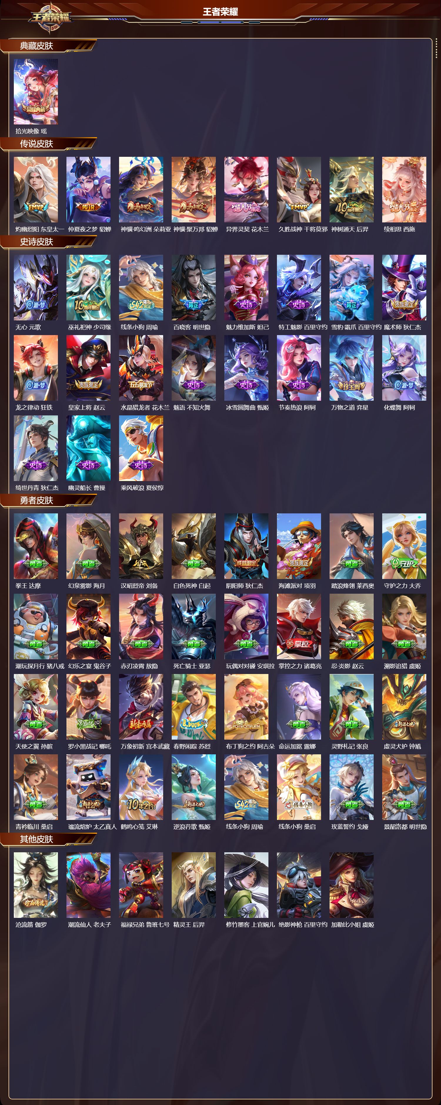 安卓QQ/永恒钻石/66皮肤/66英雄/1典藏/0珍品无双/0无双/0珍品传说/8传说/19史诗/3稀有英雄