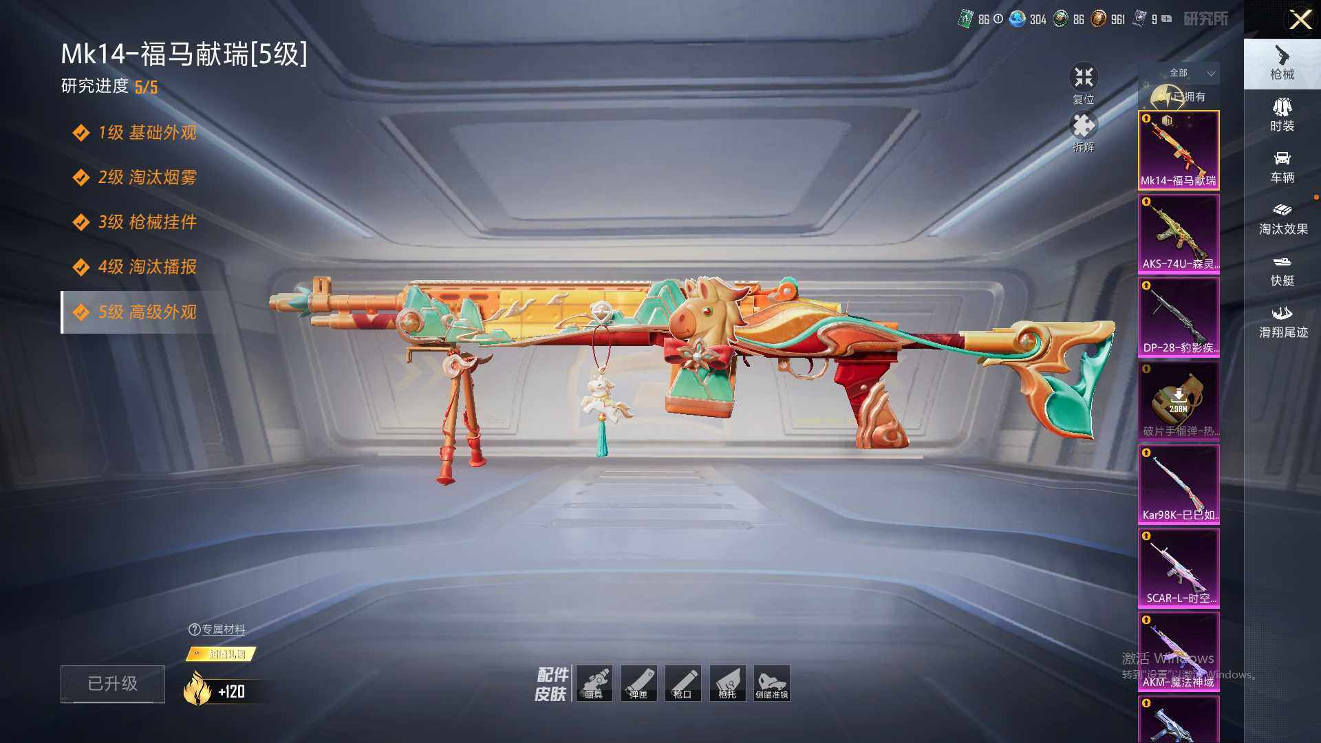 【粉色枪皮等级】:AKM-魔法神域(三级),SCAR-L-时空协奏(三级),M416-电玩时刻(五级),UMP45-量子极限(五级),AKS-74U-森灵之息(