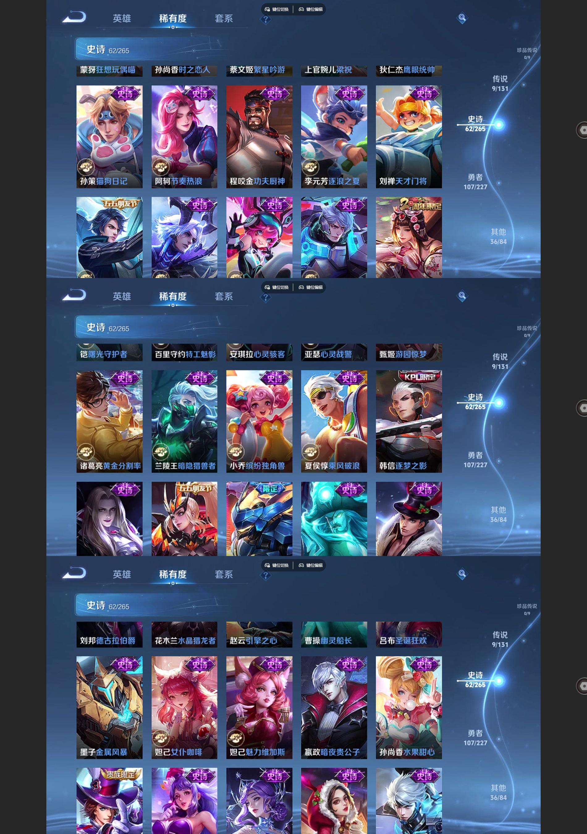 215皮肤1典藏9传说1星元62史诗70限定-470紫星币