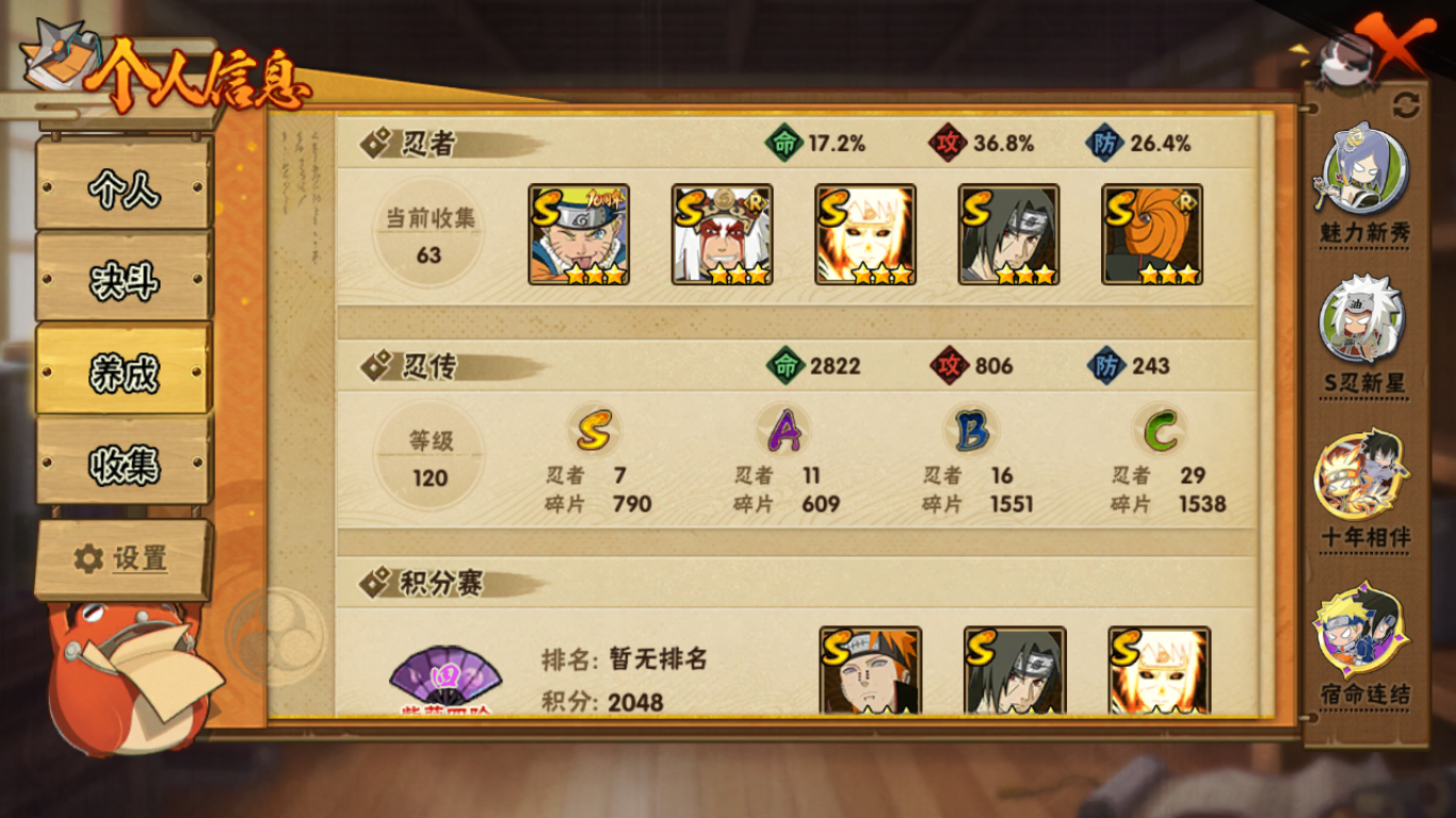 244w战力五影斑十尾7s+暴怒带土11a战力244账号等级