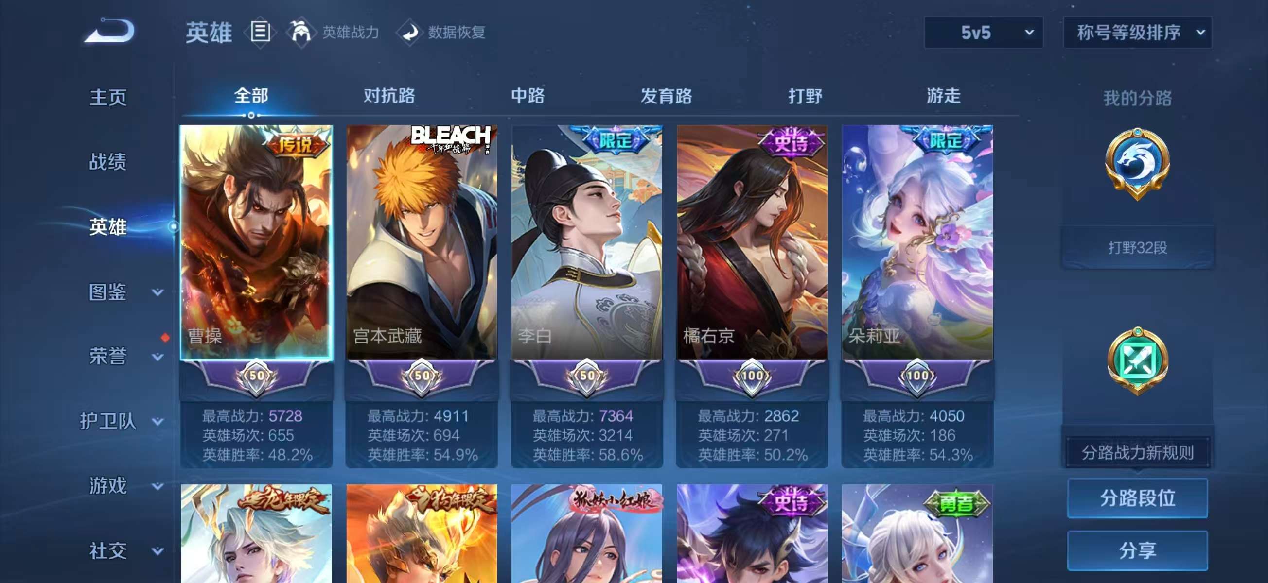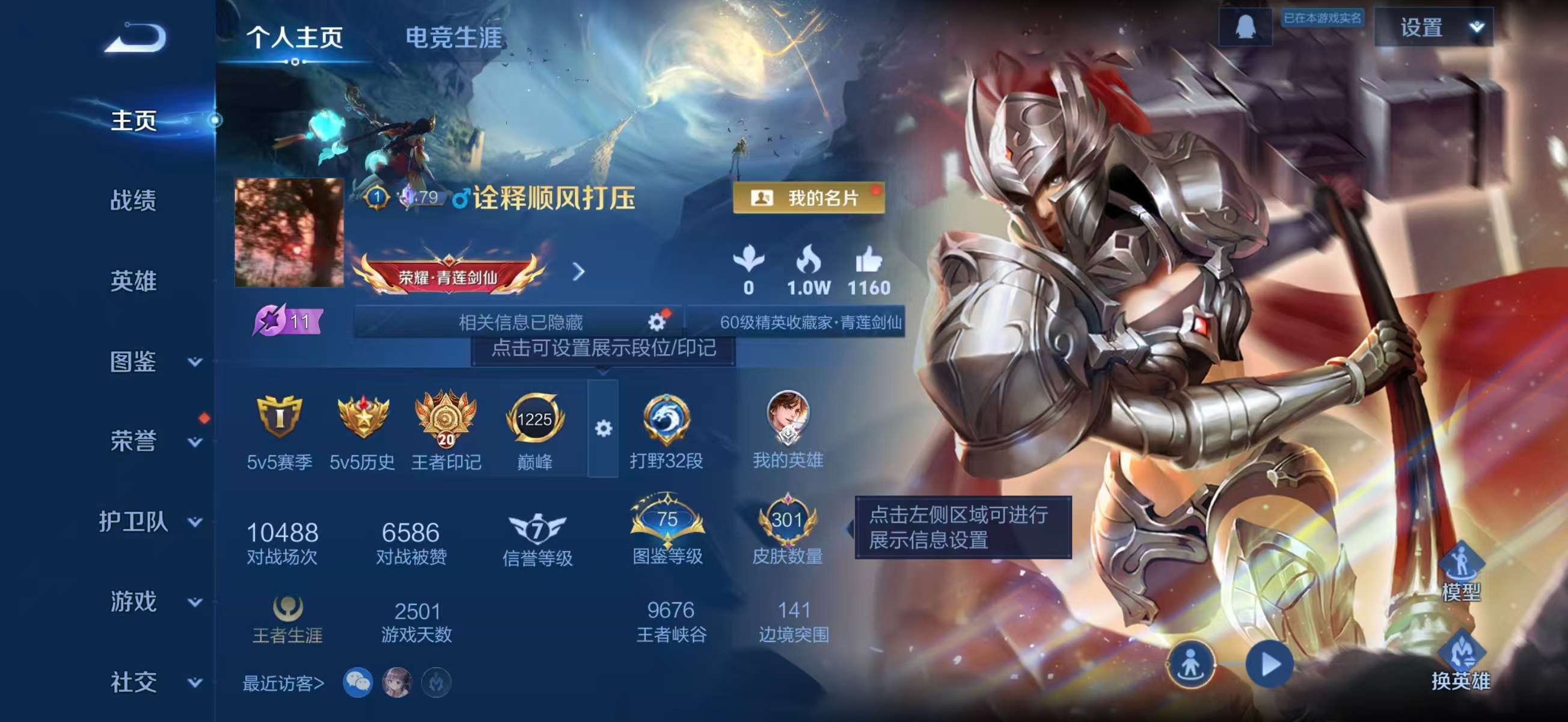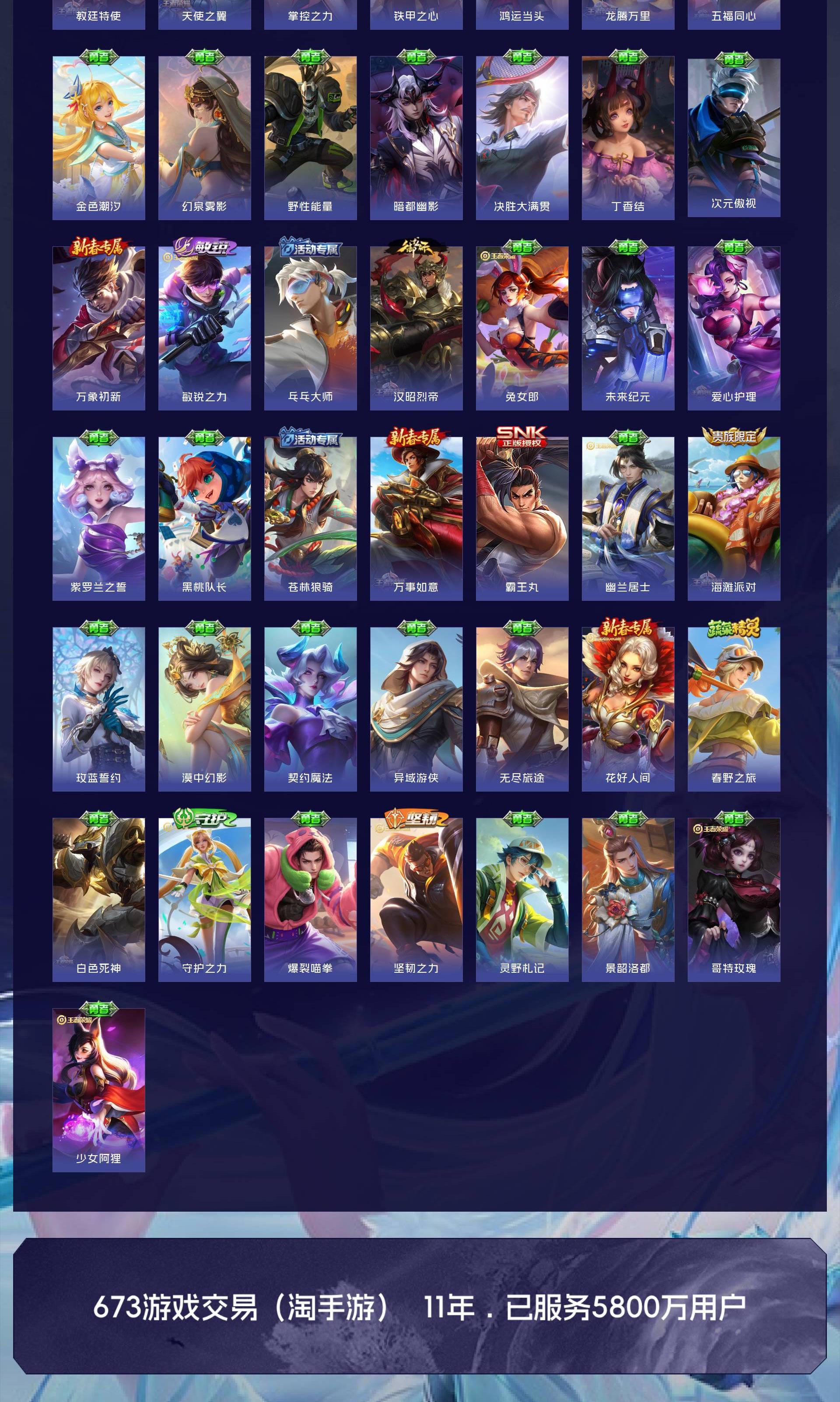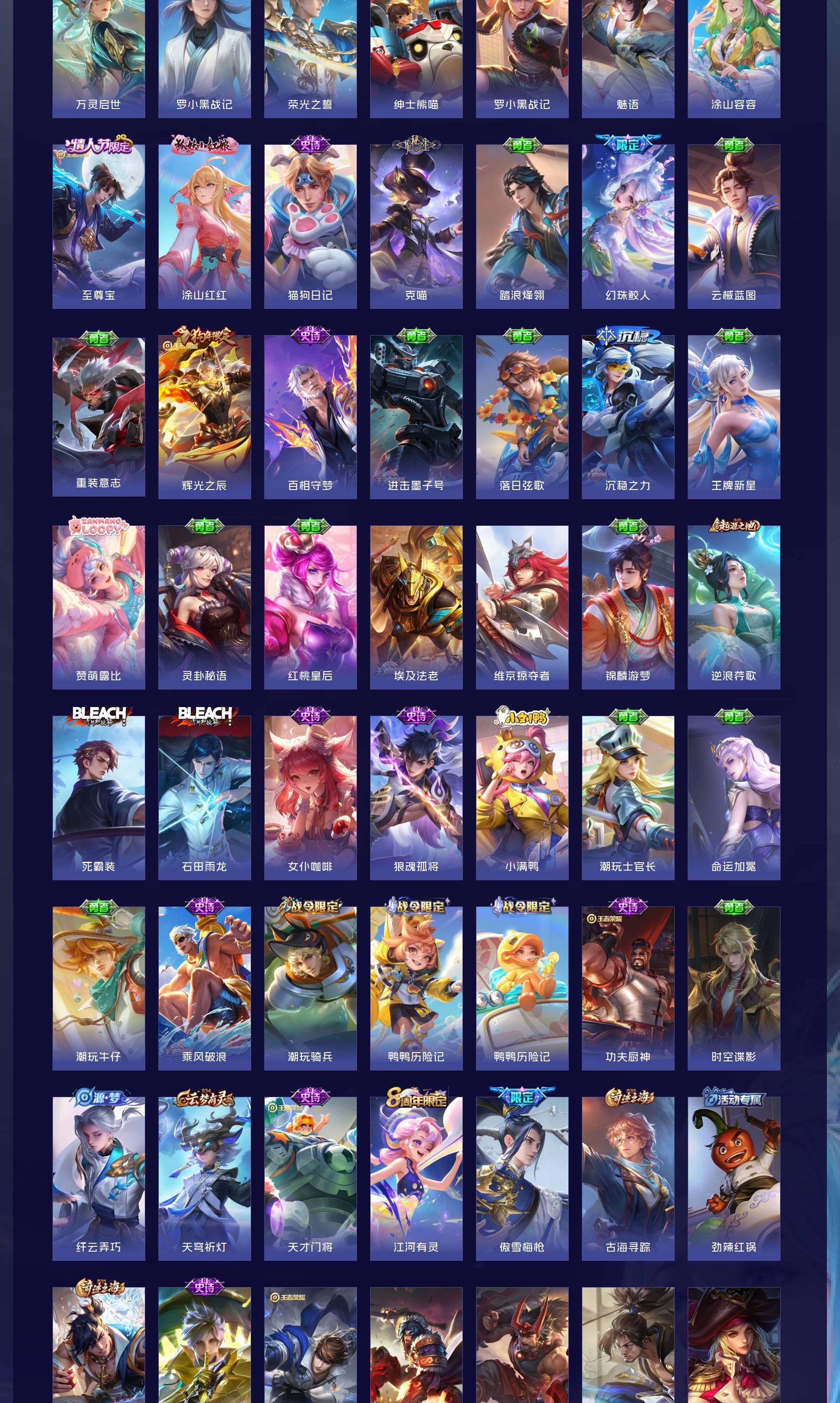 V8 皮肤301 英雄127 至尊星耀 荣耀典藏3 无双皮肤1 珍品传说1 传说15 其他皮肤281
