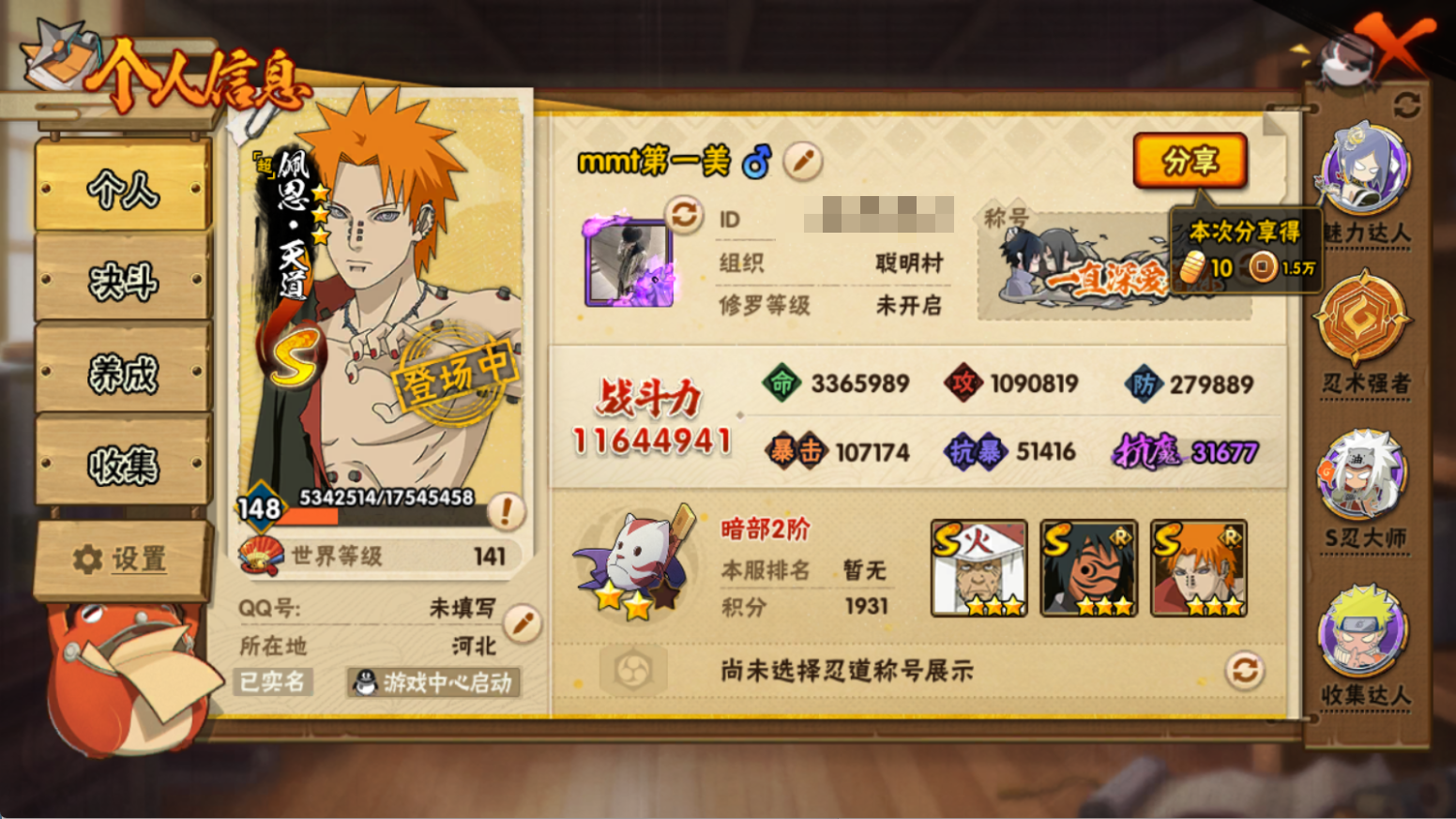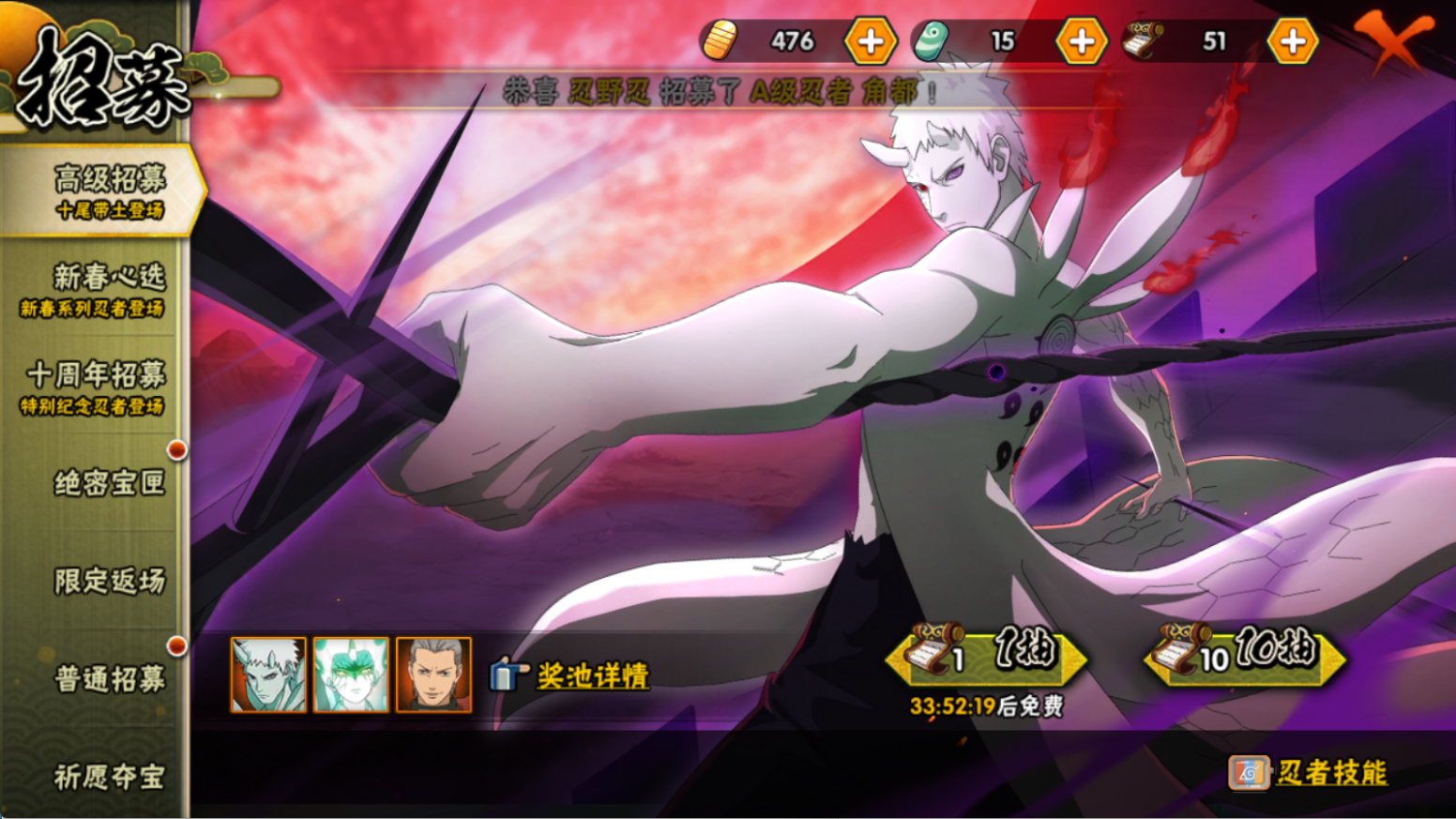 (可转苹果)氪1.1W!十尾带土648传承奥义!超哥 创斑 破面28S+漂泊再不斩 新春小南6个198直购36A+3直购通灵+妙木山主场景