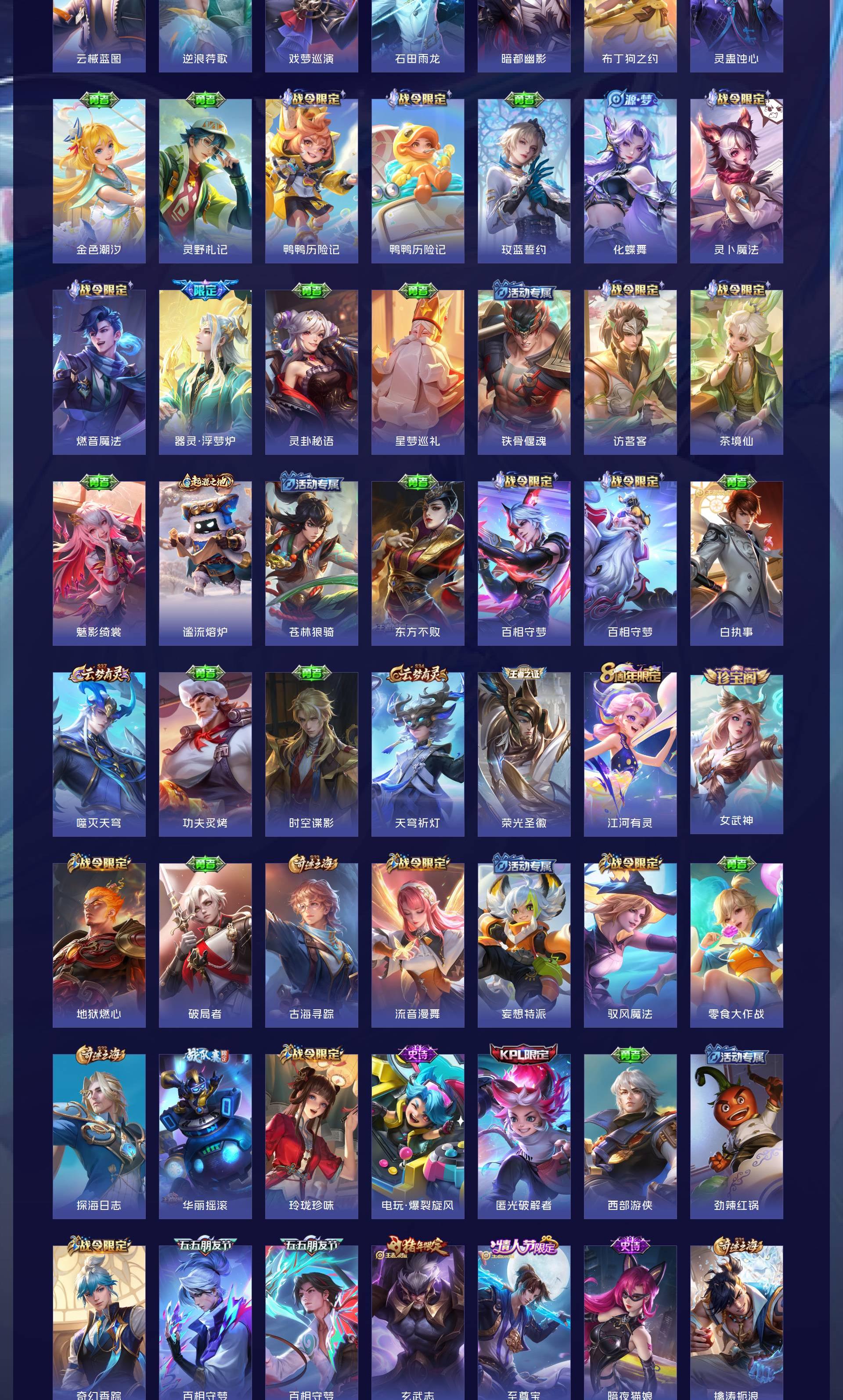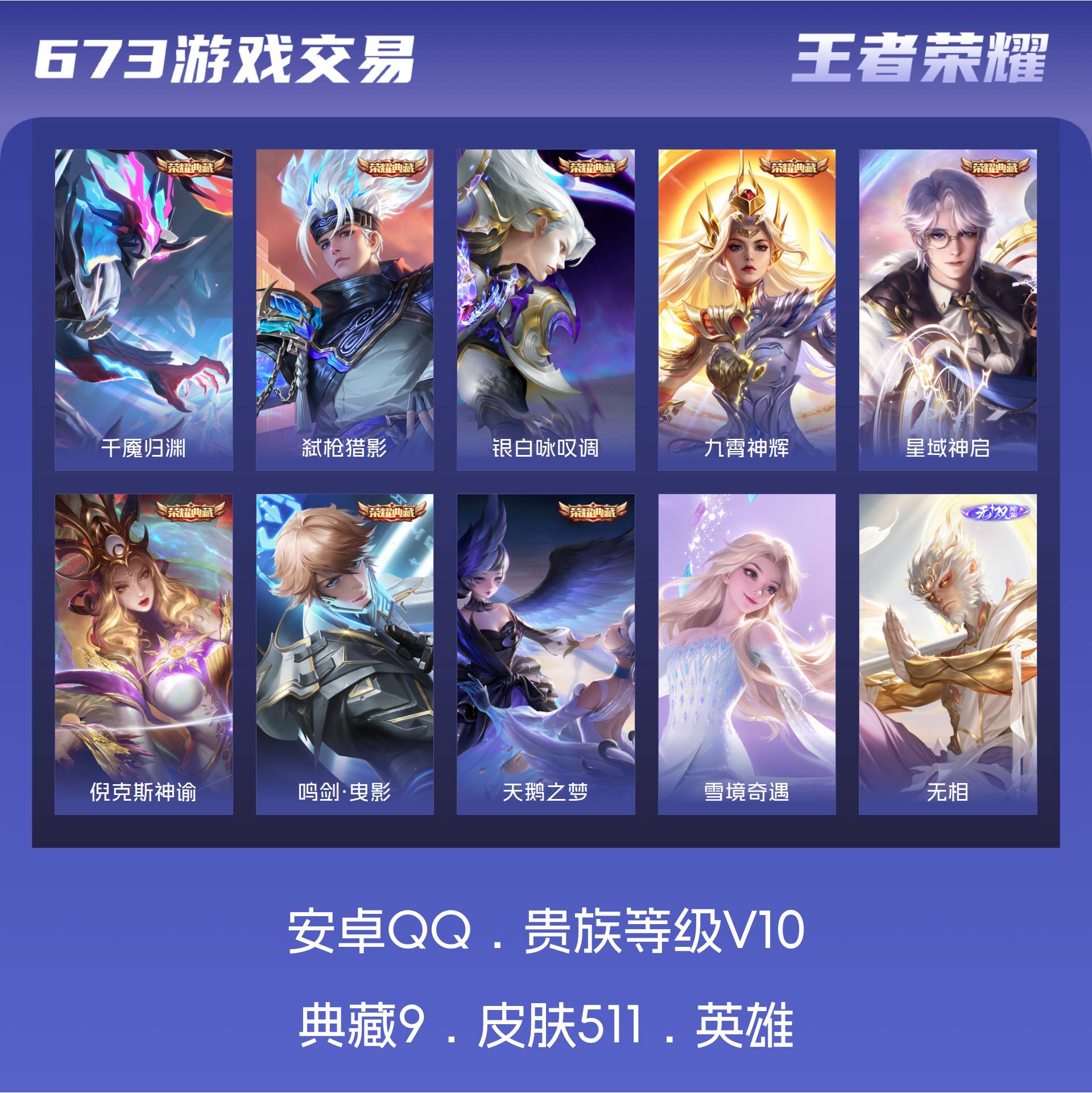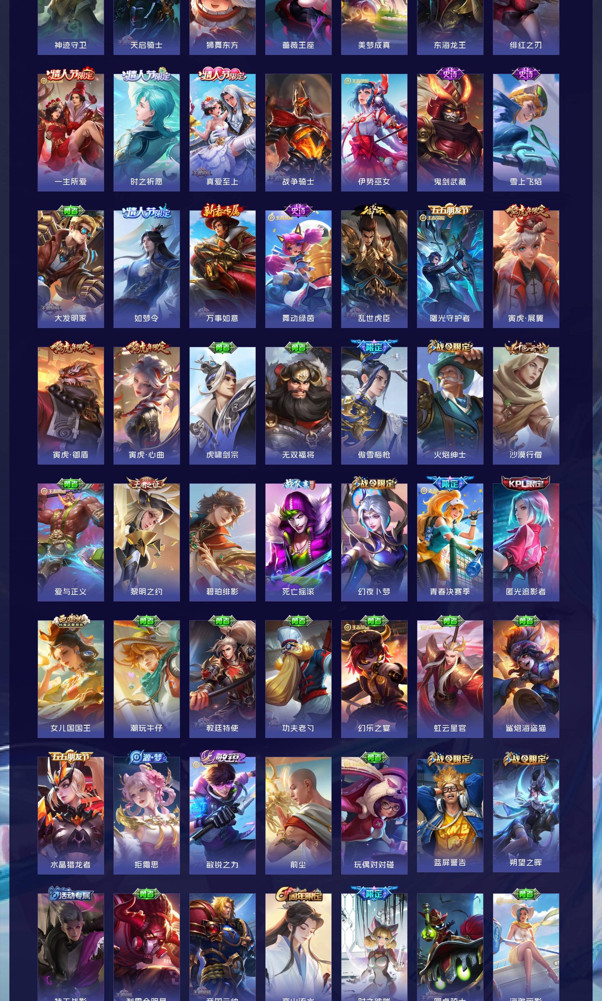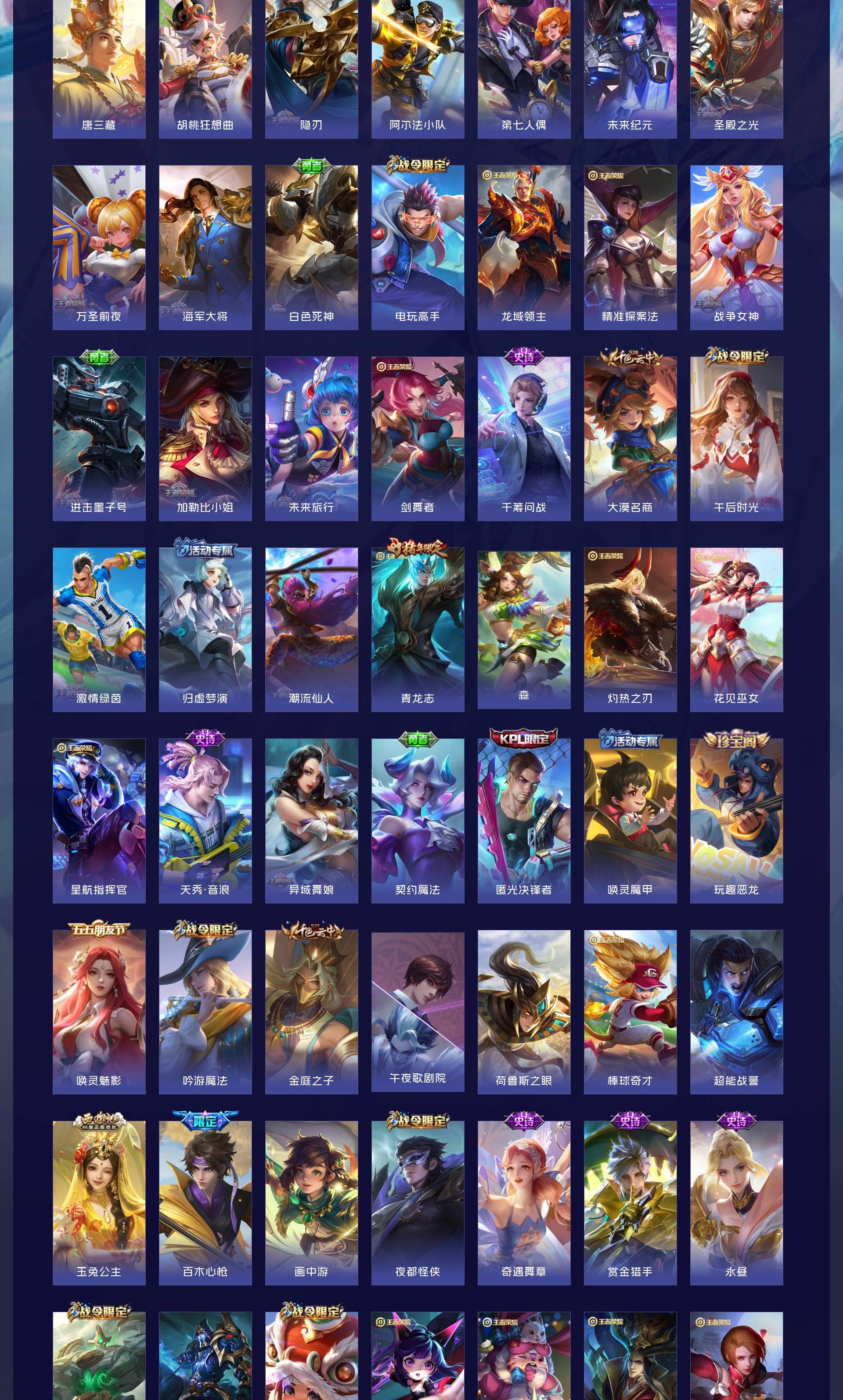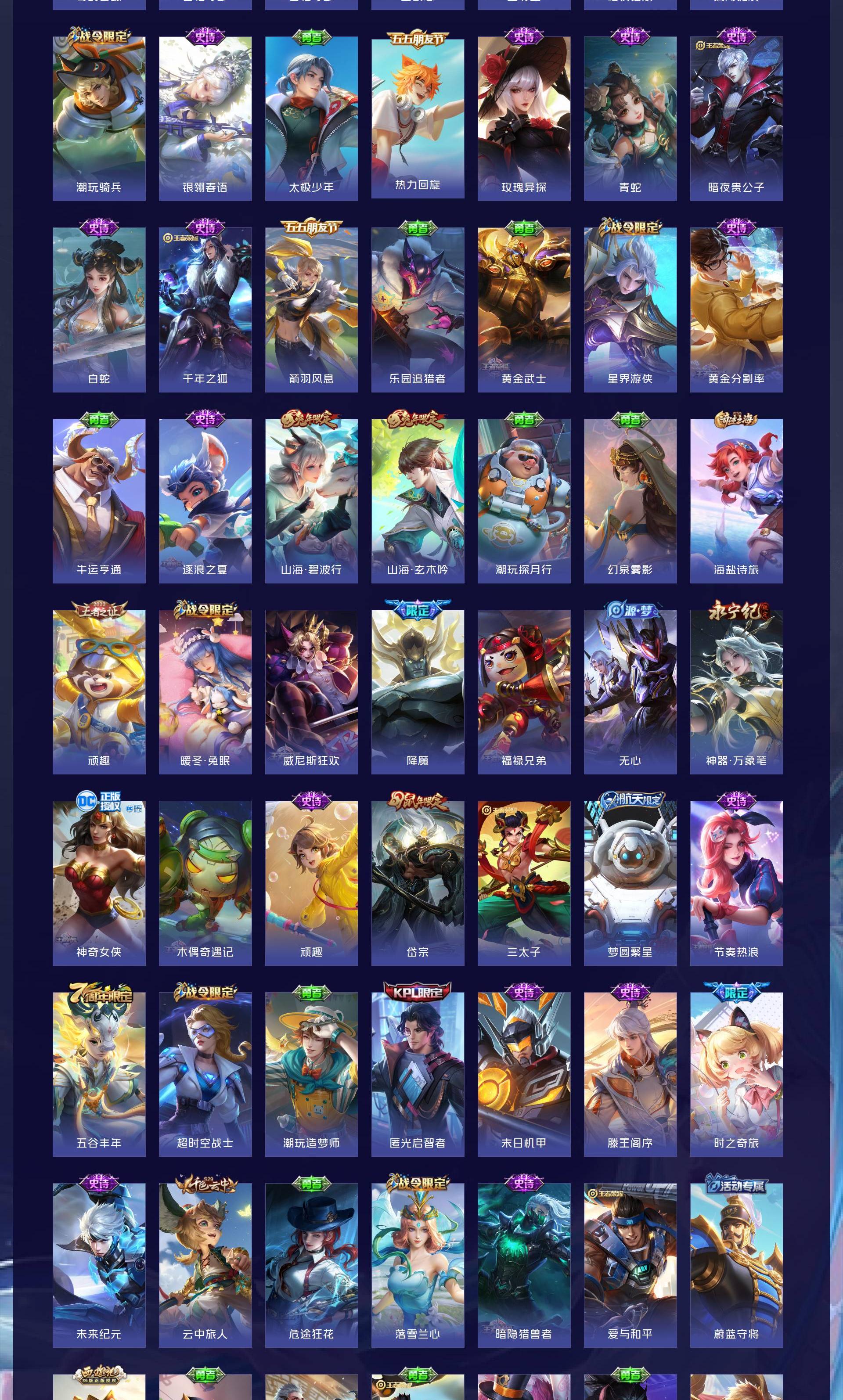 V10 皮肤511 非凡王者 荣耀典藏9 无双皮肤4 珍品传说2 传说73 其他皮肤425