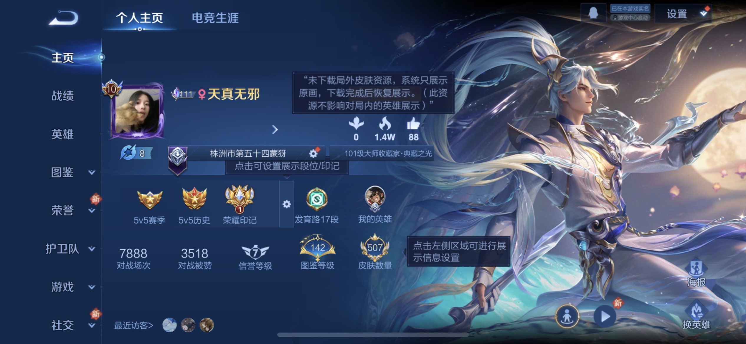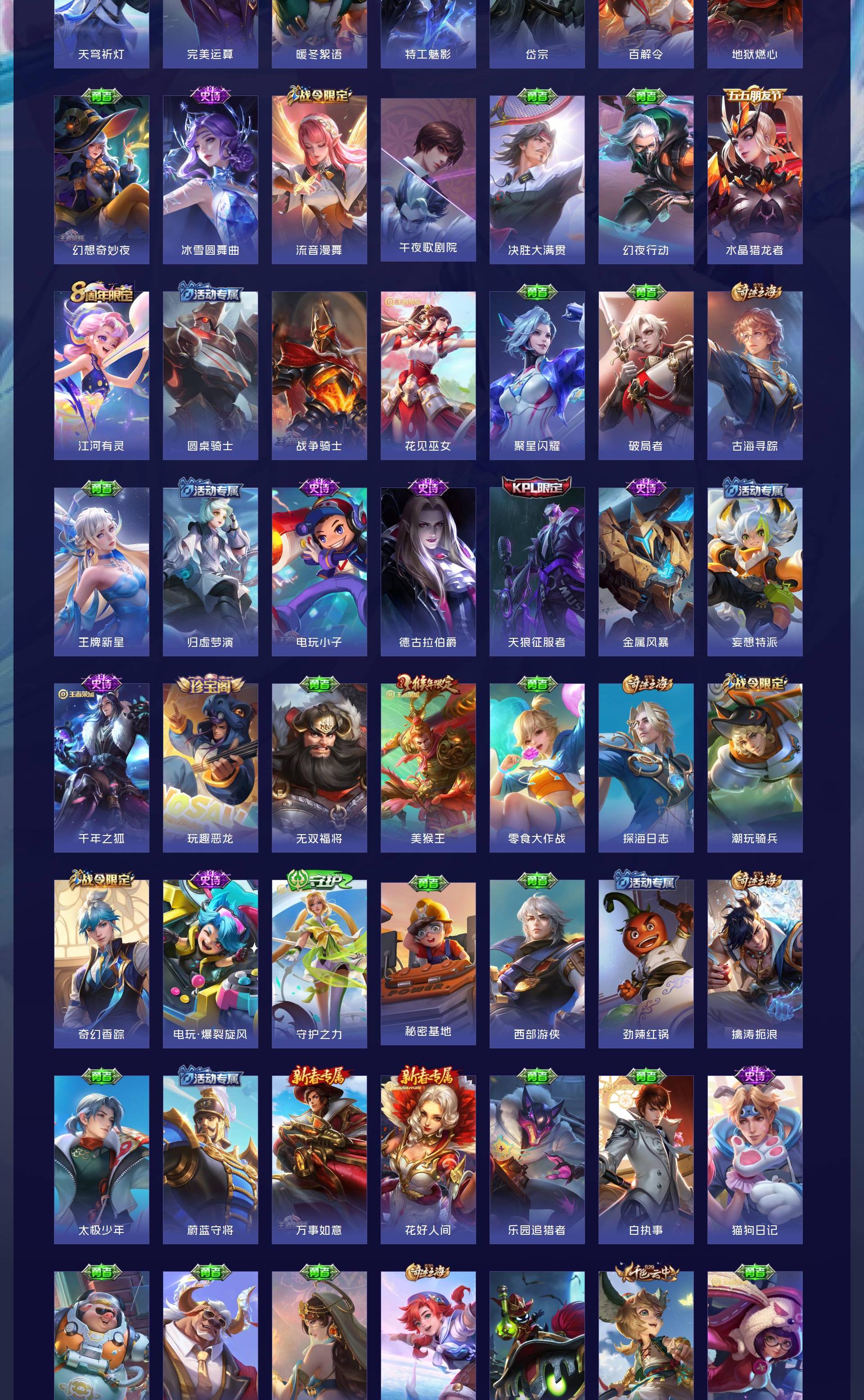 V10 皮肤507 英雄128 最强王者 荣耀典藏4 无双皮肤9 珍品传说6 传说66 其他皮肤416