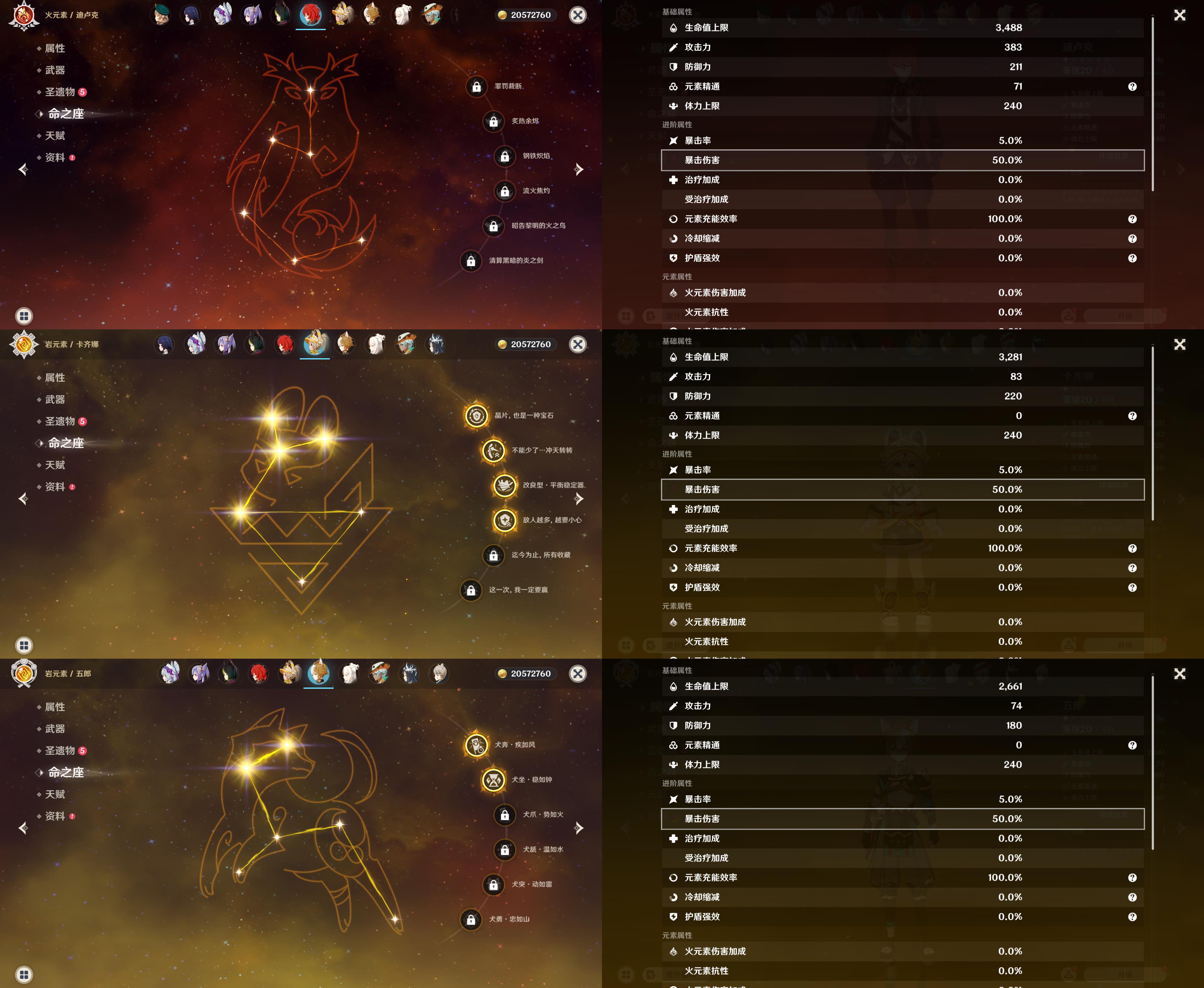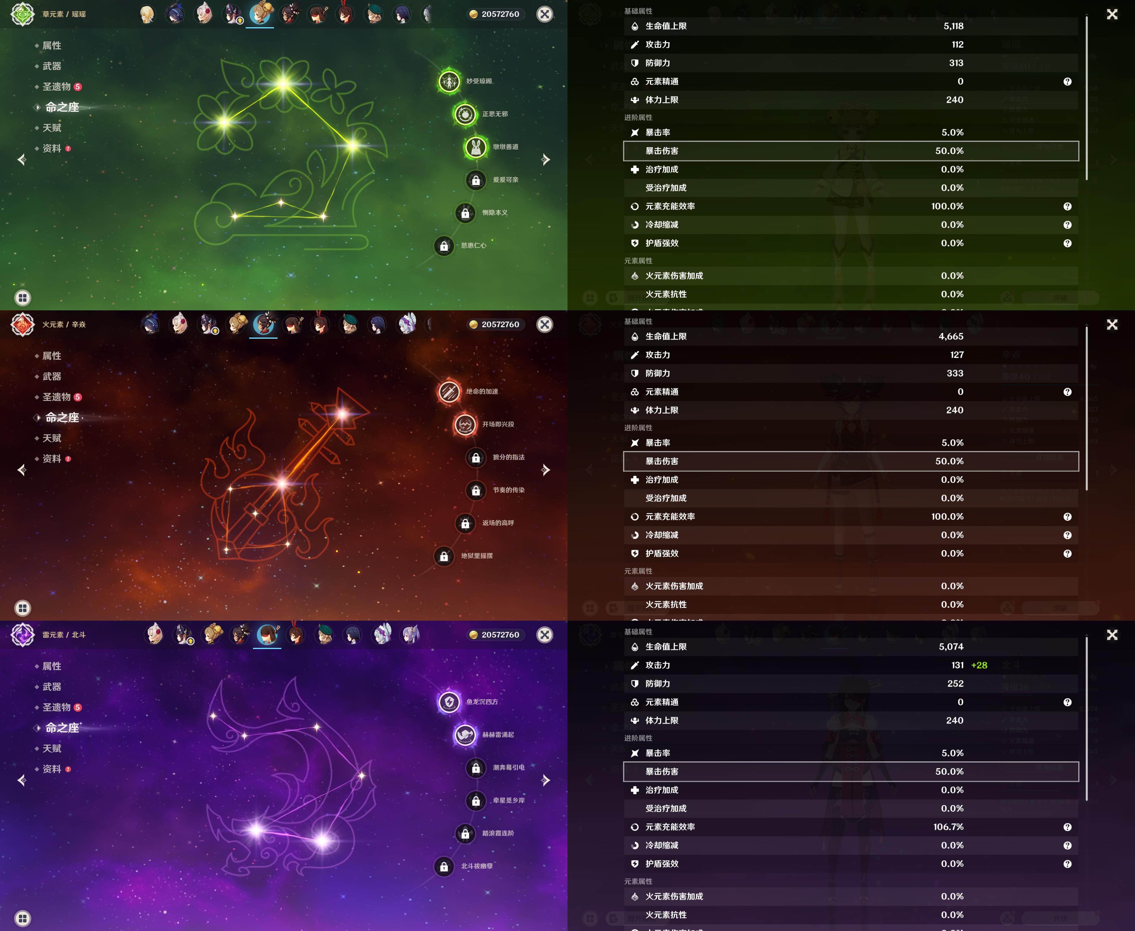 五星角色: