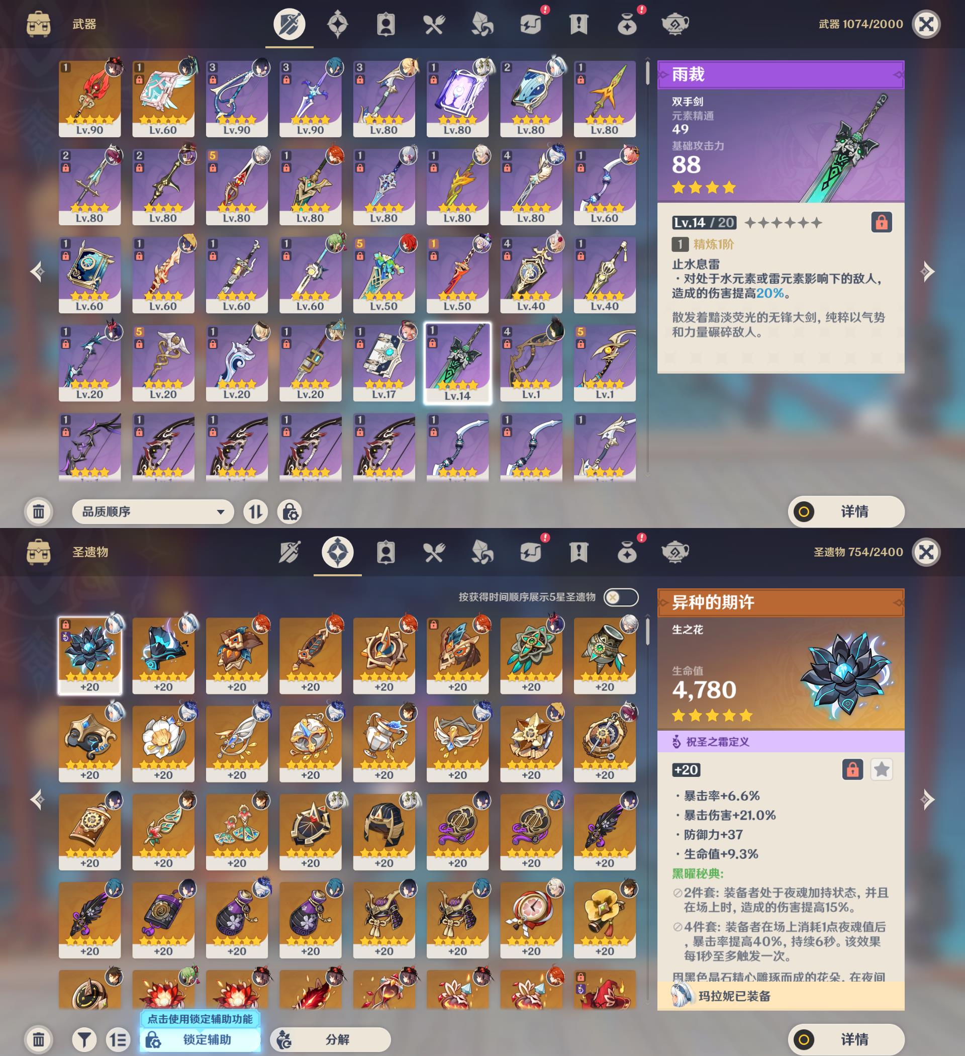 57级/29黄/女主/18个五星角色/2个五星武器/胡桃/2命夜兰