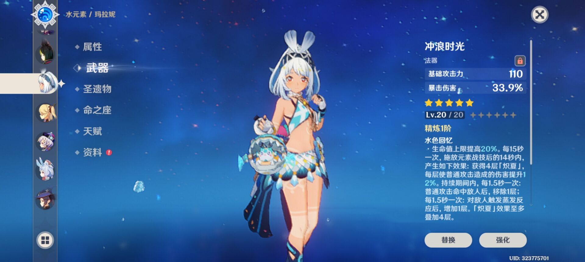 练度还不错,等级57,探索还有很多资源没拿,马拉尼有专武