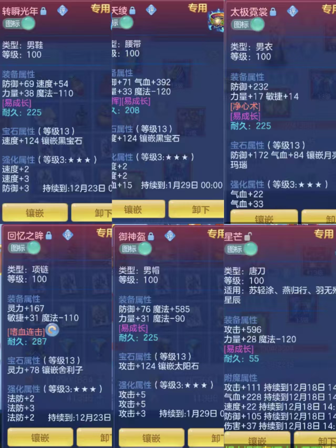 装备等级特效: