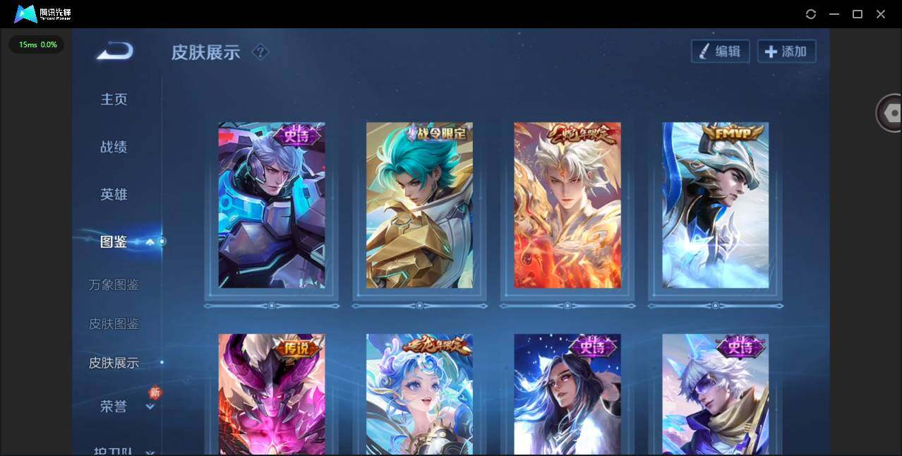 贵族等级: V5 英雄数: 120 皮肤数: 113 星传说: 幽冥火 传说皮: 地狱之眼,无双飞将 限定皮: 李小龙,五谷丰年,逐霄战戟,愿照·九州拓