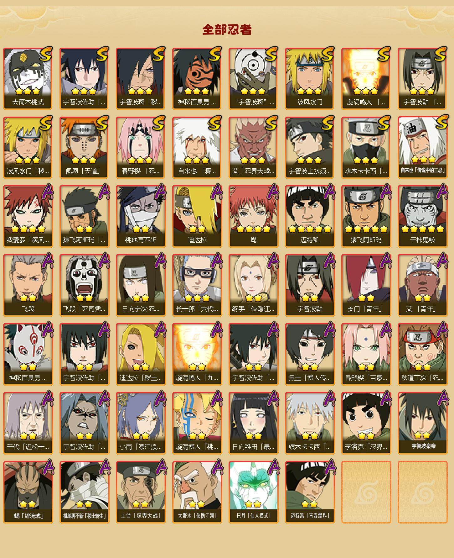 【HYZ3024】V10/战力852W/S忍16/A忍38/2星大野木「侠隐江湖」/侠隐江湖-纲手/蜃/死司凭血-飞段/5星猿飞阿斯玛/须佐能乎-旗木卡卡西/秽土转生-猿飞阿斯玛/5星迈特凯/砂之守鹤/蓝蛇/忍者之路-神秘面具男/大筒木桃式/2星蝎「绯流琥」/2星桃地再不斩「秽土转生」/百豪-春野樱/白面具-宇智波斑/3星自来也「传说中的三忍」/四代目土影-黑土/秽土转生-迪达拉/飞段/镰鼬/忍界大战-春野樱/万花筒写轮眼-宇智波佐助/迪达拉/4星我爱罗「疾风传」/山椒鱼/九尾查克拉-漩涡鸣人/
