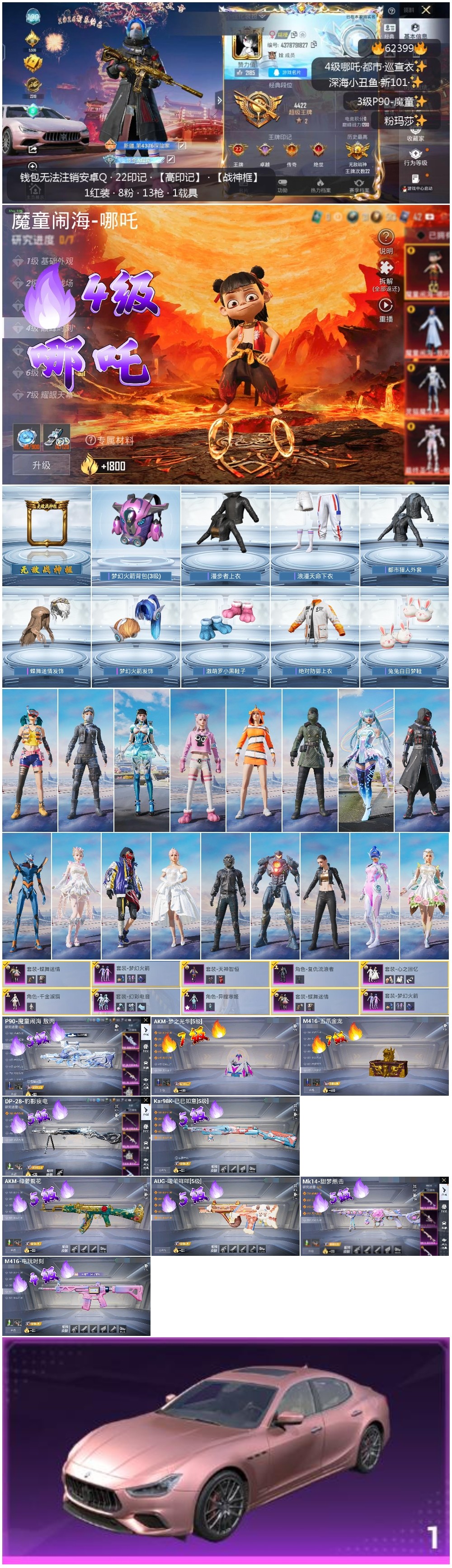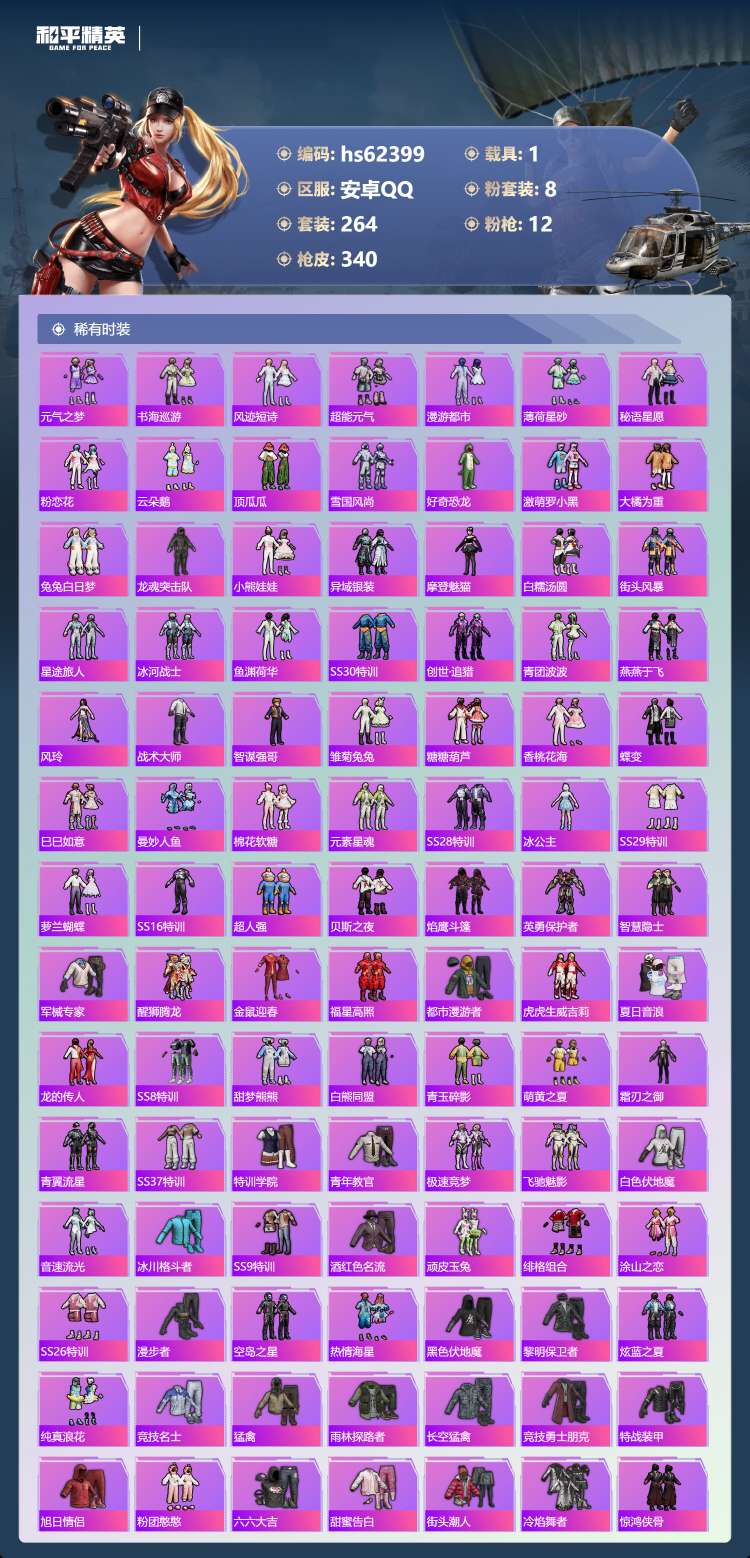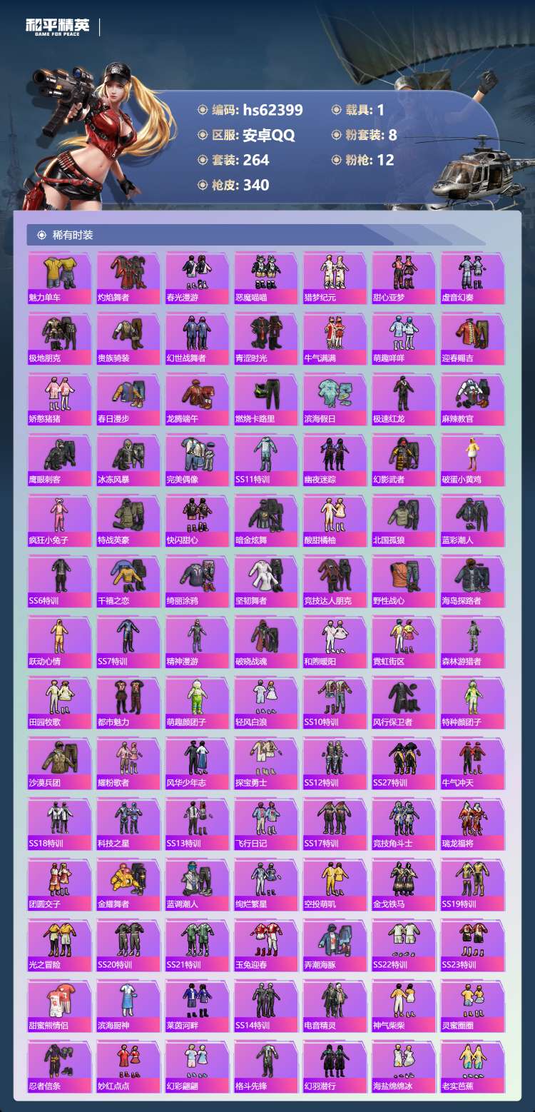 hs62399 安卓手Q-22王牌印记-有战神框-1红装-8粉装-12特效枪-1载具-114608热