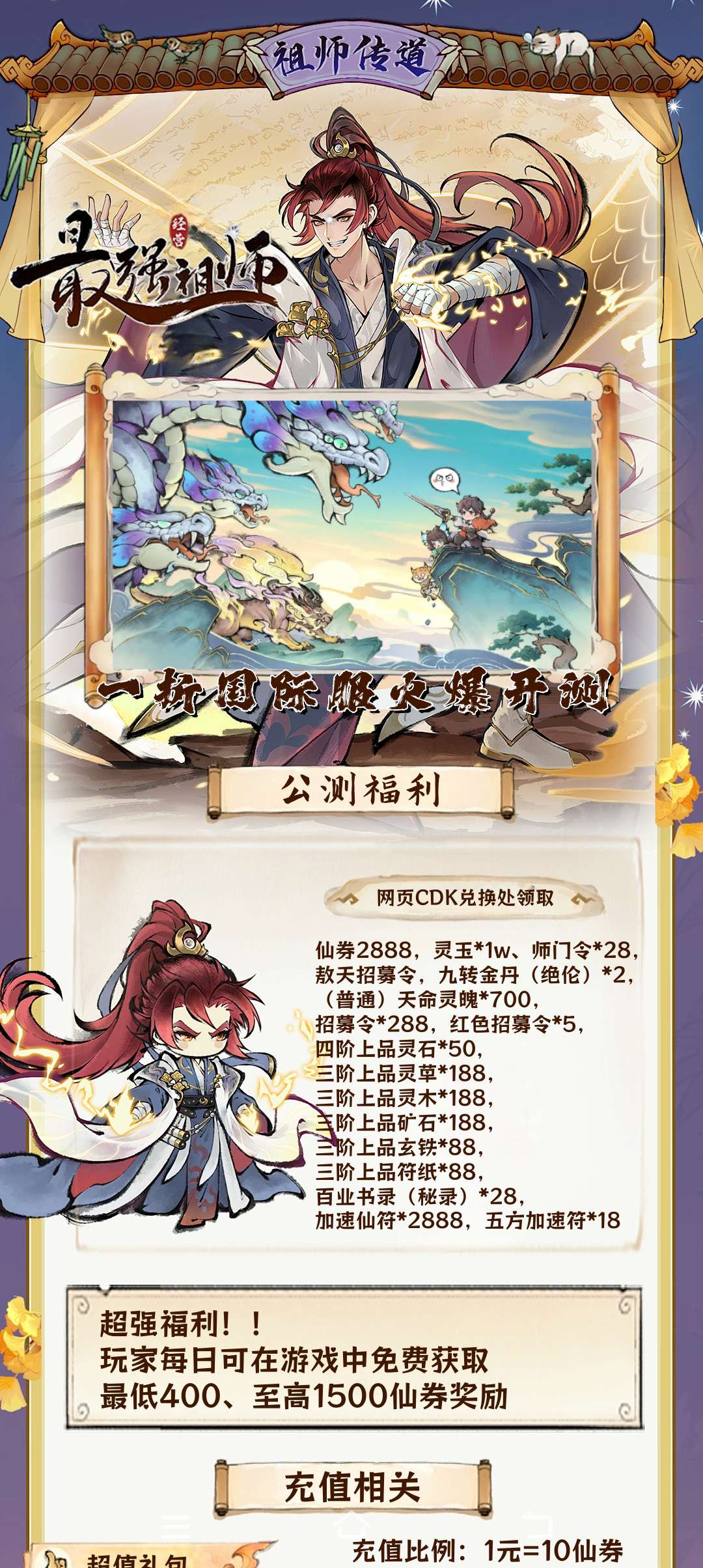 最强祖师!内置充值1折进游送截图福利,每天可免费领随机400到1500仙卷,不懂勿扰谢谢
