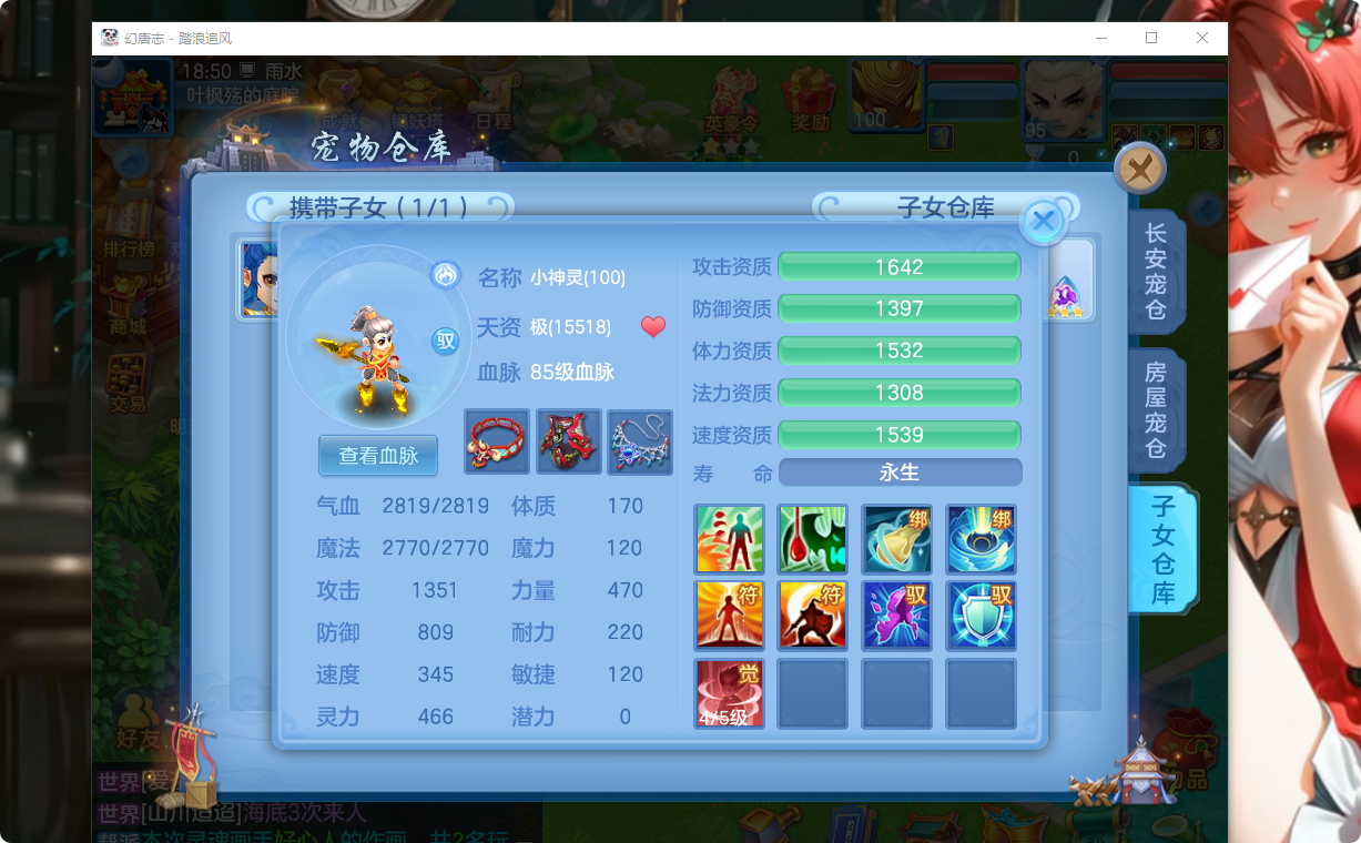 8锻,易成长衣服,法爆武器,五雷头,有个亲生孩子,还有个结婚小号的大唐孩子。宝宝成品。