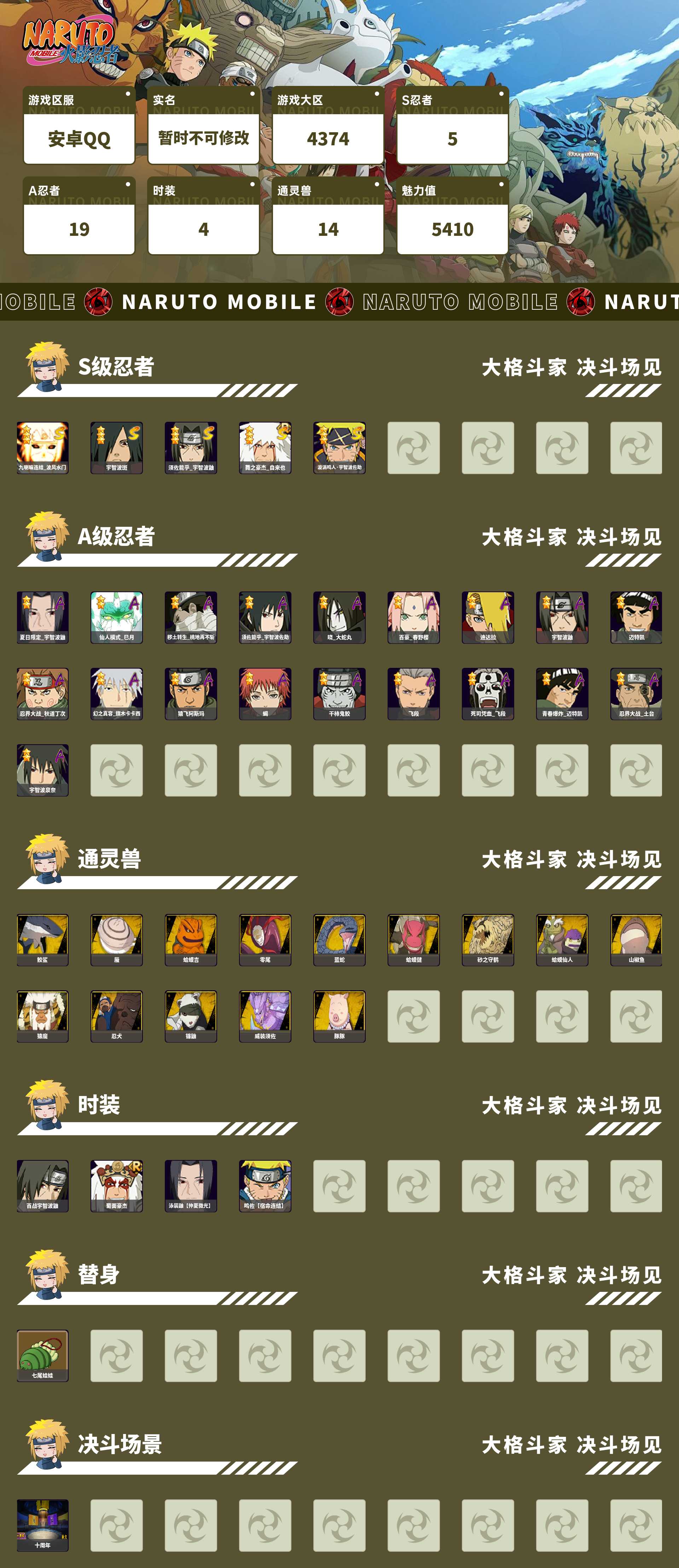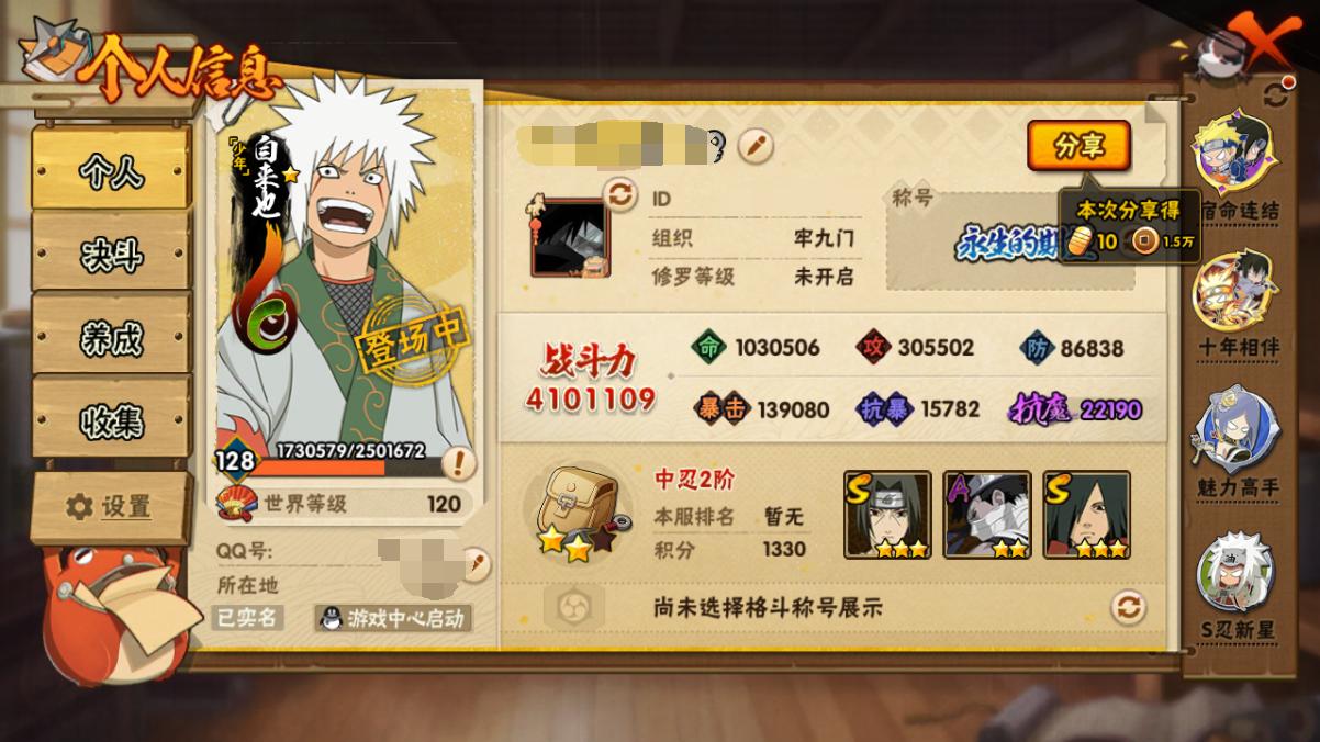 (可转苹果)410w战力+九尾水门+宇智波斑5S+夏日鼬1个