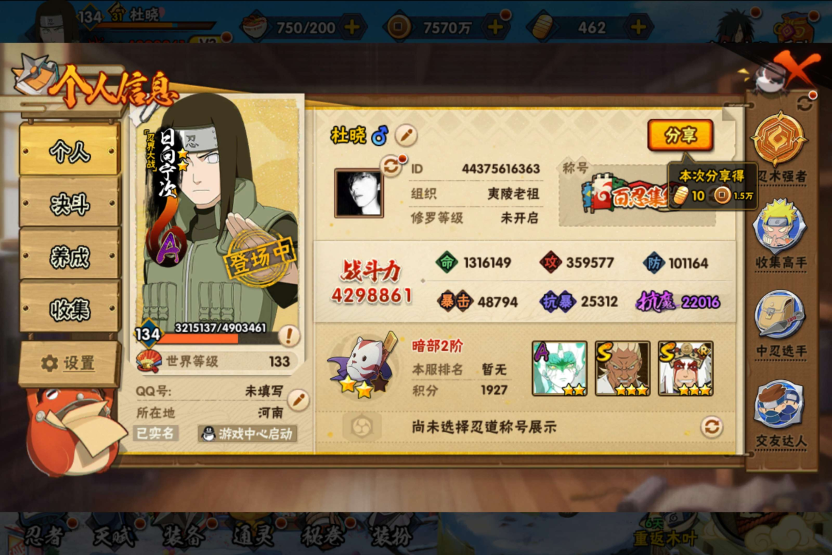 安卓QQ-可二次-新手成品号噢-S忍者数:6- A忍者数:26