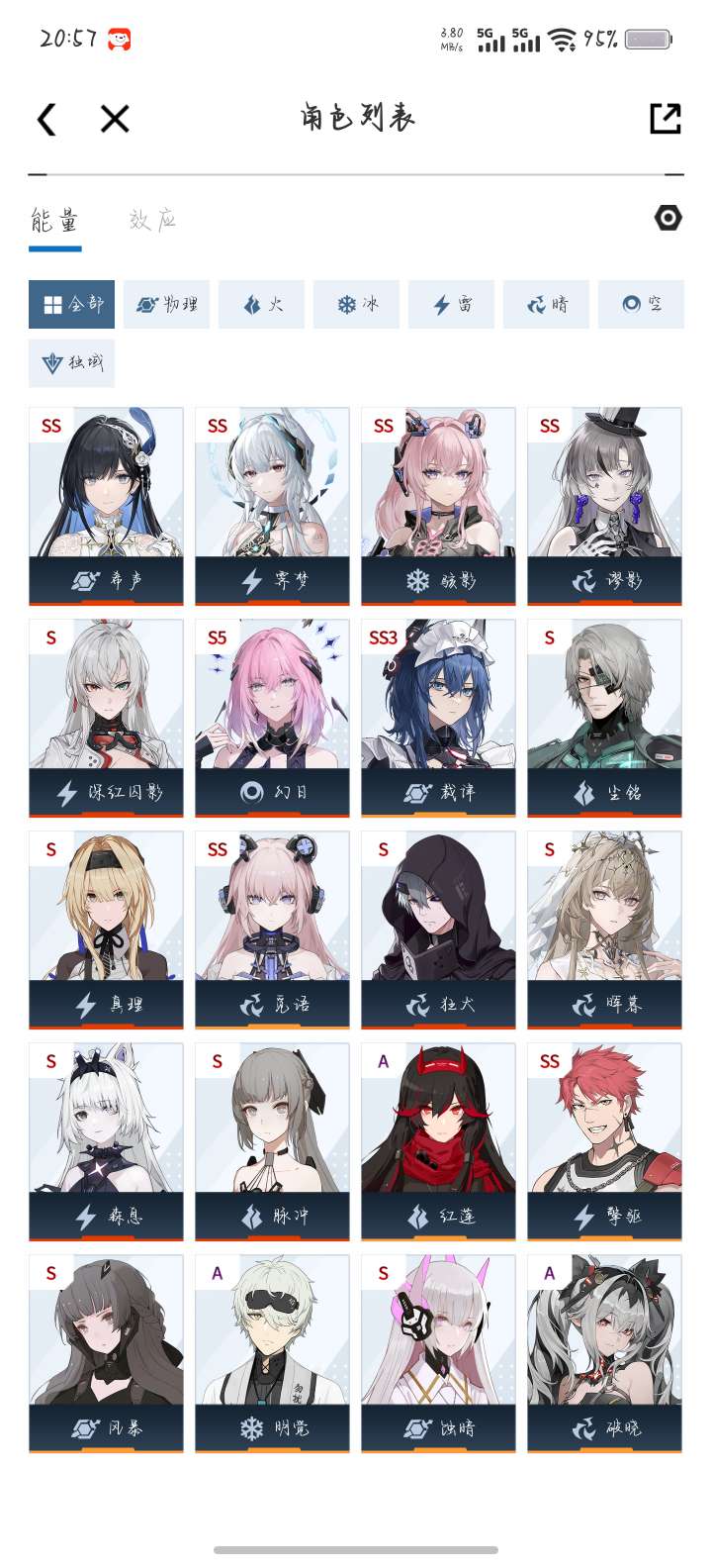 希声的花嫁皮,角色ss霁梦,ss骇影,ss希声,ss谬影,战力都拉满了的,武器,辅助机几乎都有。