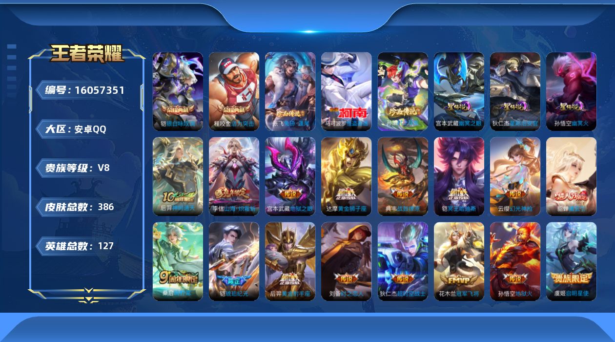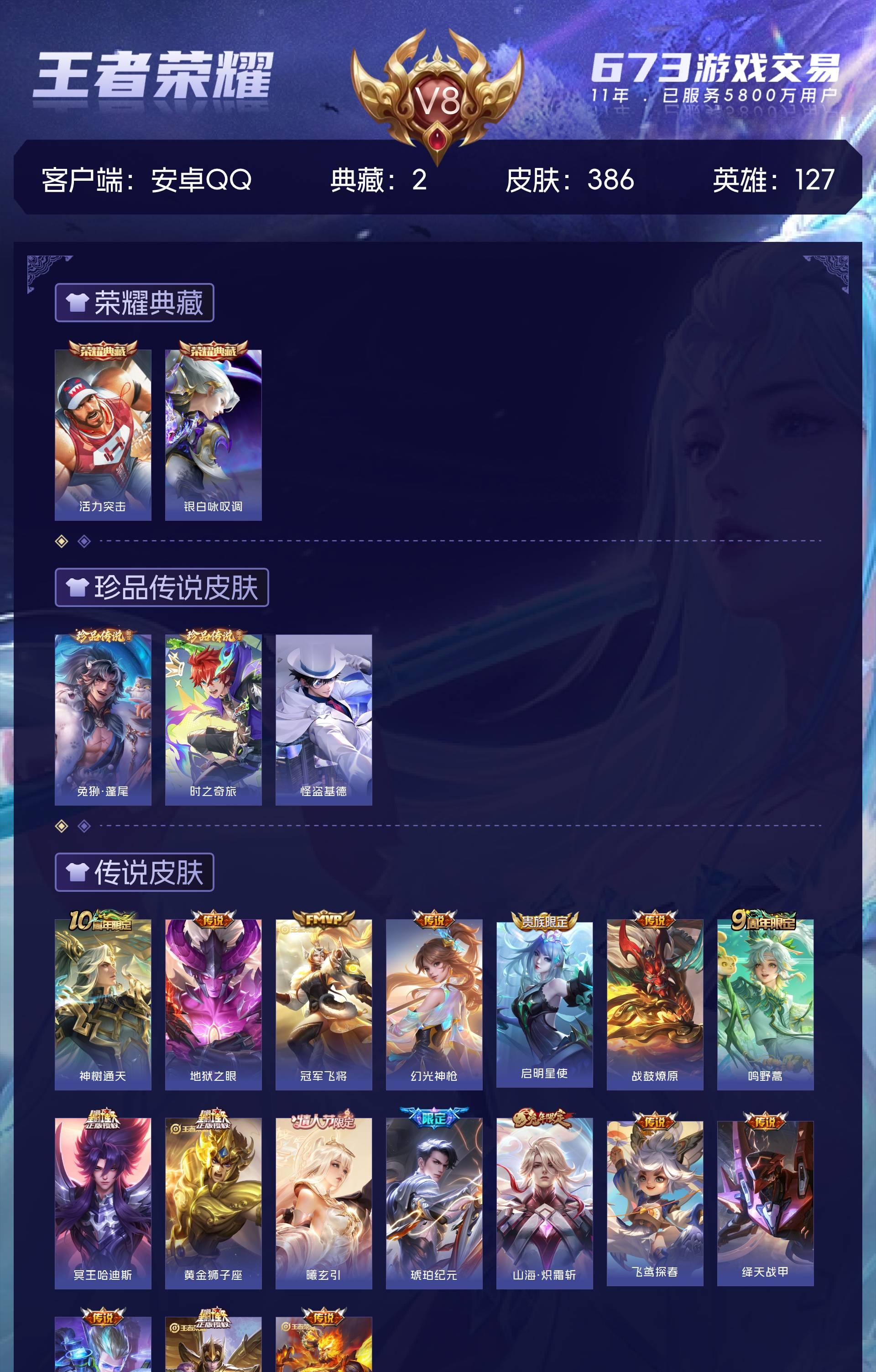 V8 皮肤386 英雄127 最强王者 荣耀典藏2 珍品传说3 传说17 其他皮肤369