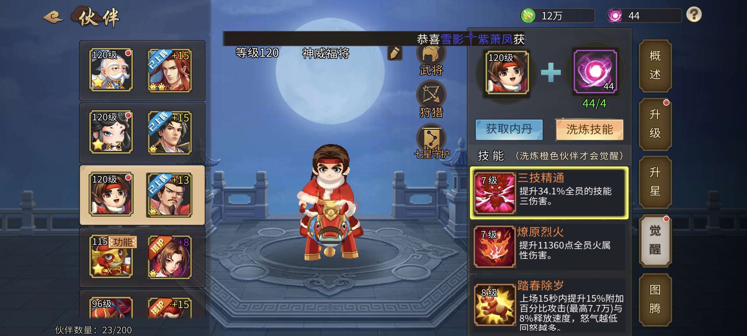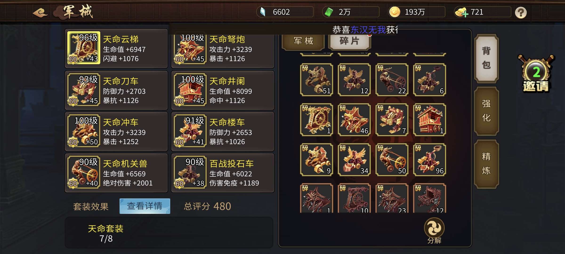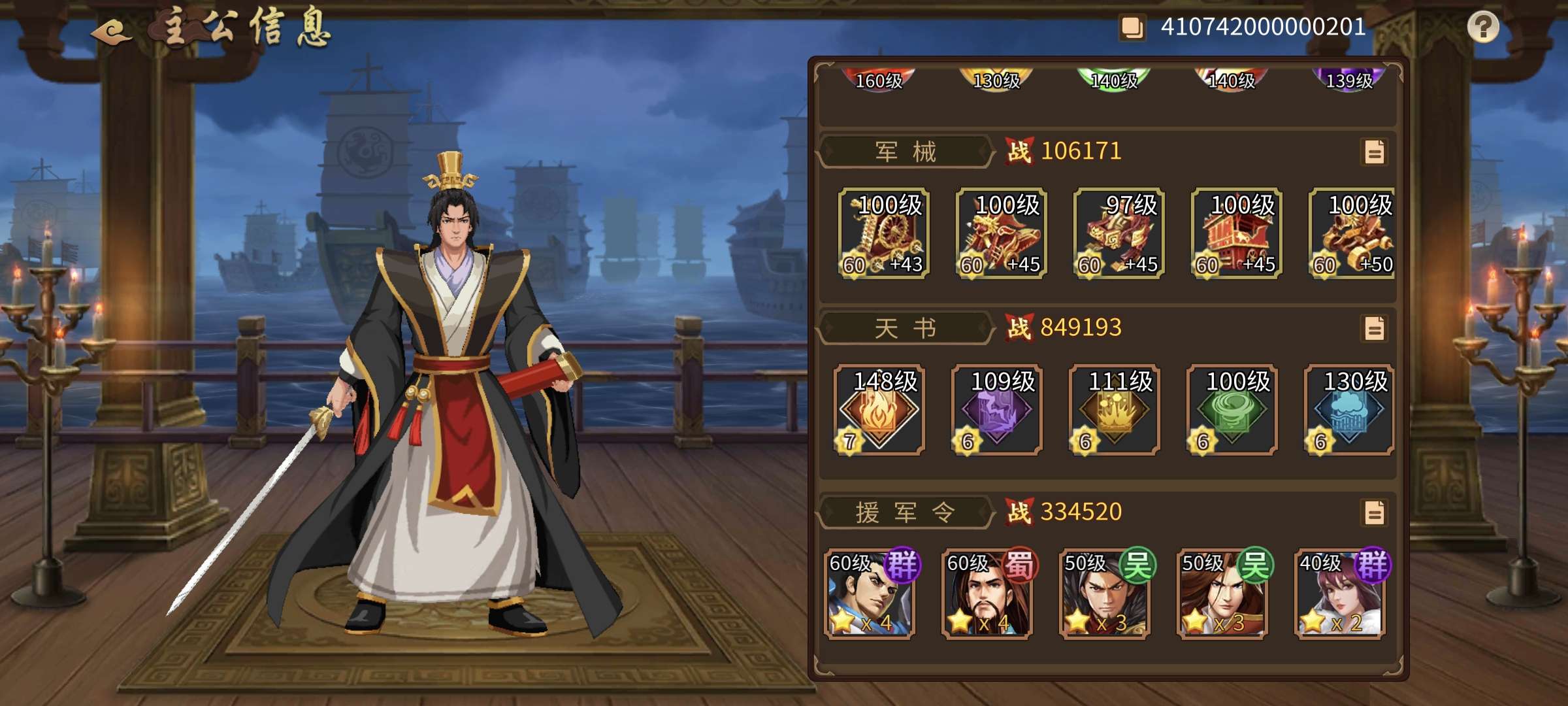 以前区榜2,合区后不想玩了。164级,天书76666,冰书马上升7,8星刘协。宠物援军优秀。
