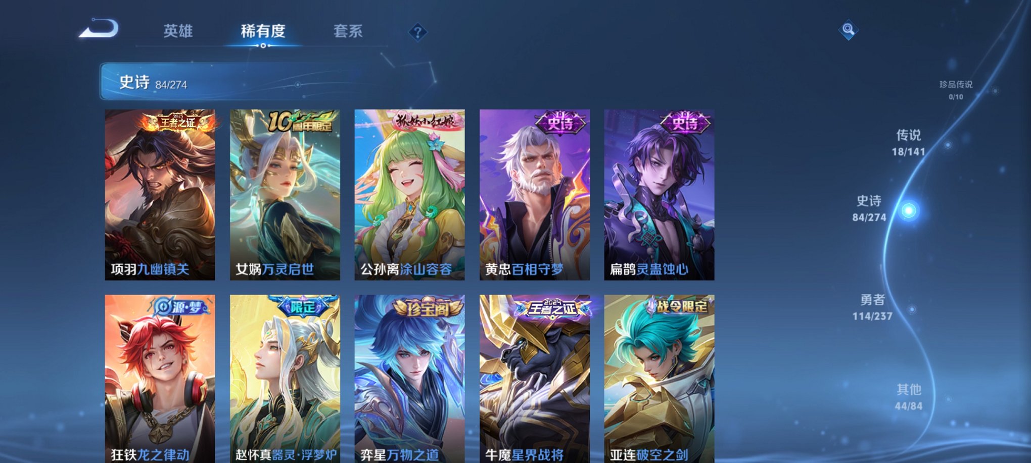 【18传说261皮肤1水晶3星元】安卓V区-126英雄-261皮肤【1水晶】 鸣剑·曳影【星元皮肤】幽冥之眼 星际治安官 金色仲夏夜之梦【传说皮肤】神树通天 白虎志 愿照·千秋盛 金乌负日 逐花归海 鸣野蒿 云鹰飞将 黄金狮子座 超时空战士 仲夏夜之梦 久胜战神 地狱之眼 炽阳神光 绛天战甲 一念神魔 云霓雀翎 启明星使 幻光神枪【史诗皮肤】神威 夏日便利店 九幽镇关 万灵启世 龙之律动 星界战将 燃音魔法 江河有灵 地狱燃心 天穹祈灯 天穹之誓 灵蛊蚀心 逆浪荇歌 破空之剑 百相守梦 万物之道