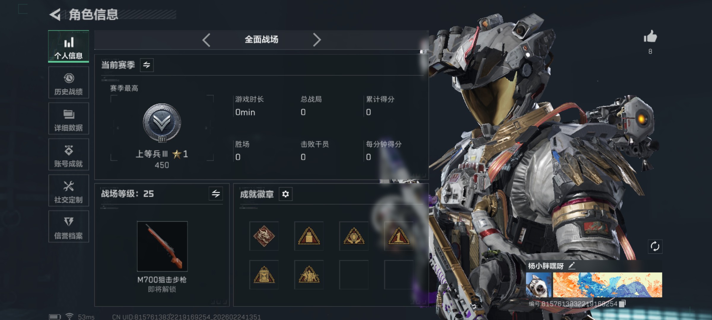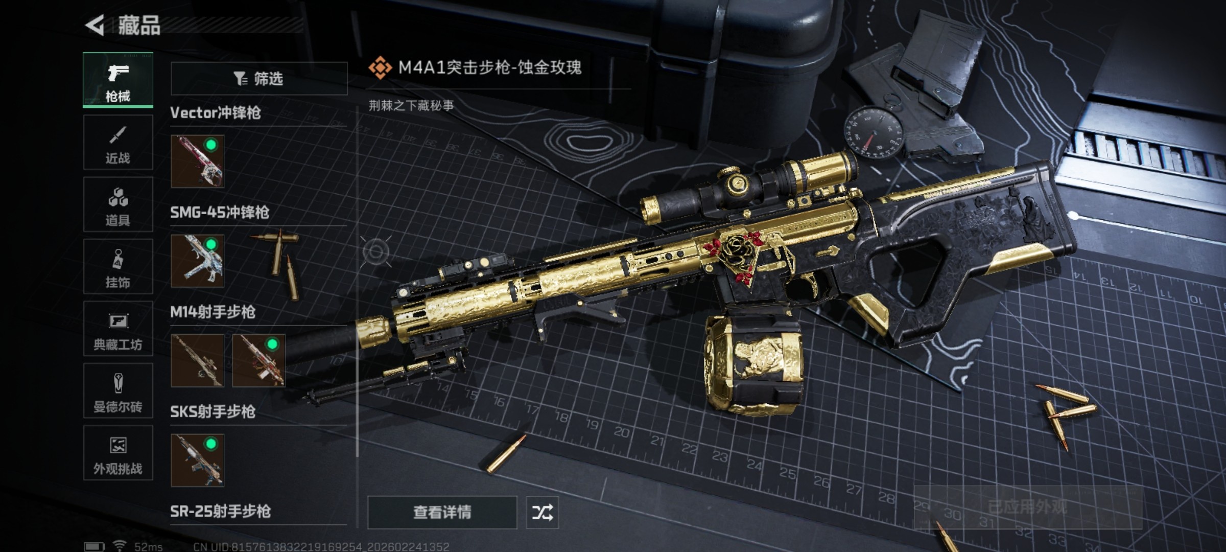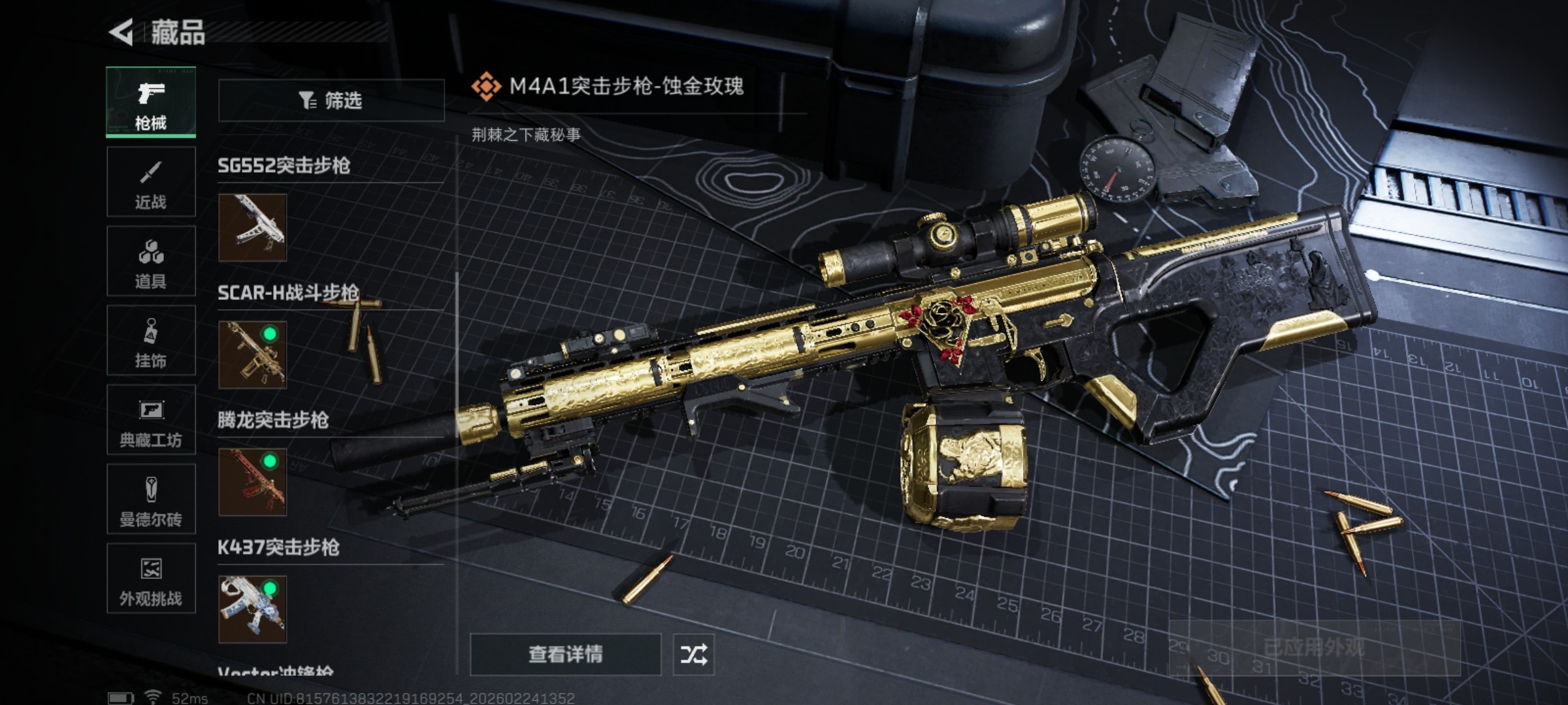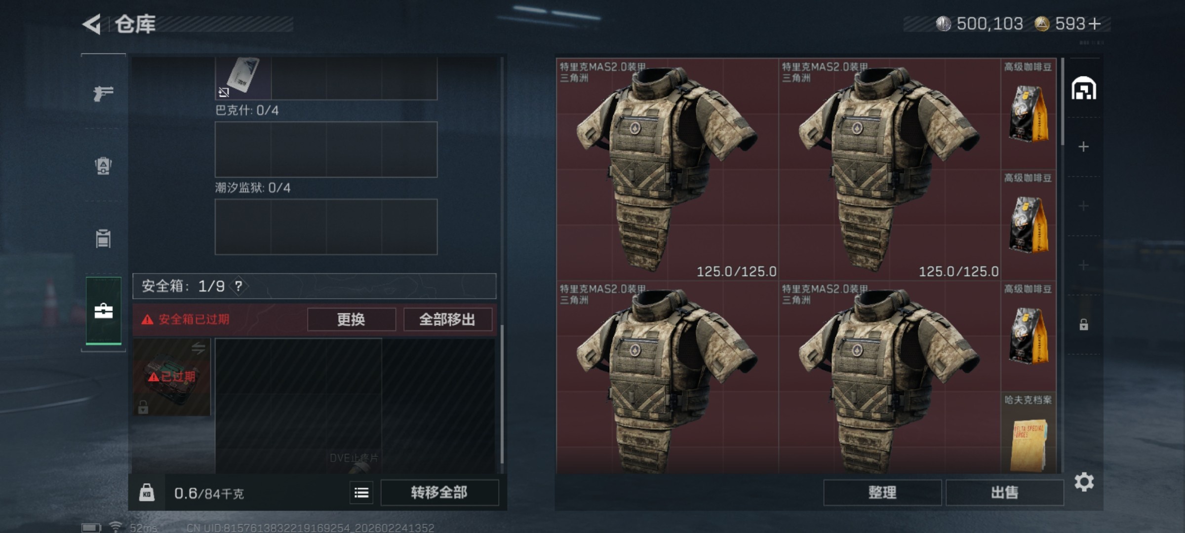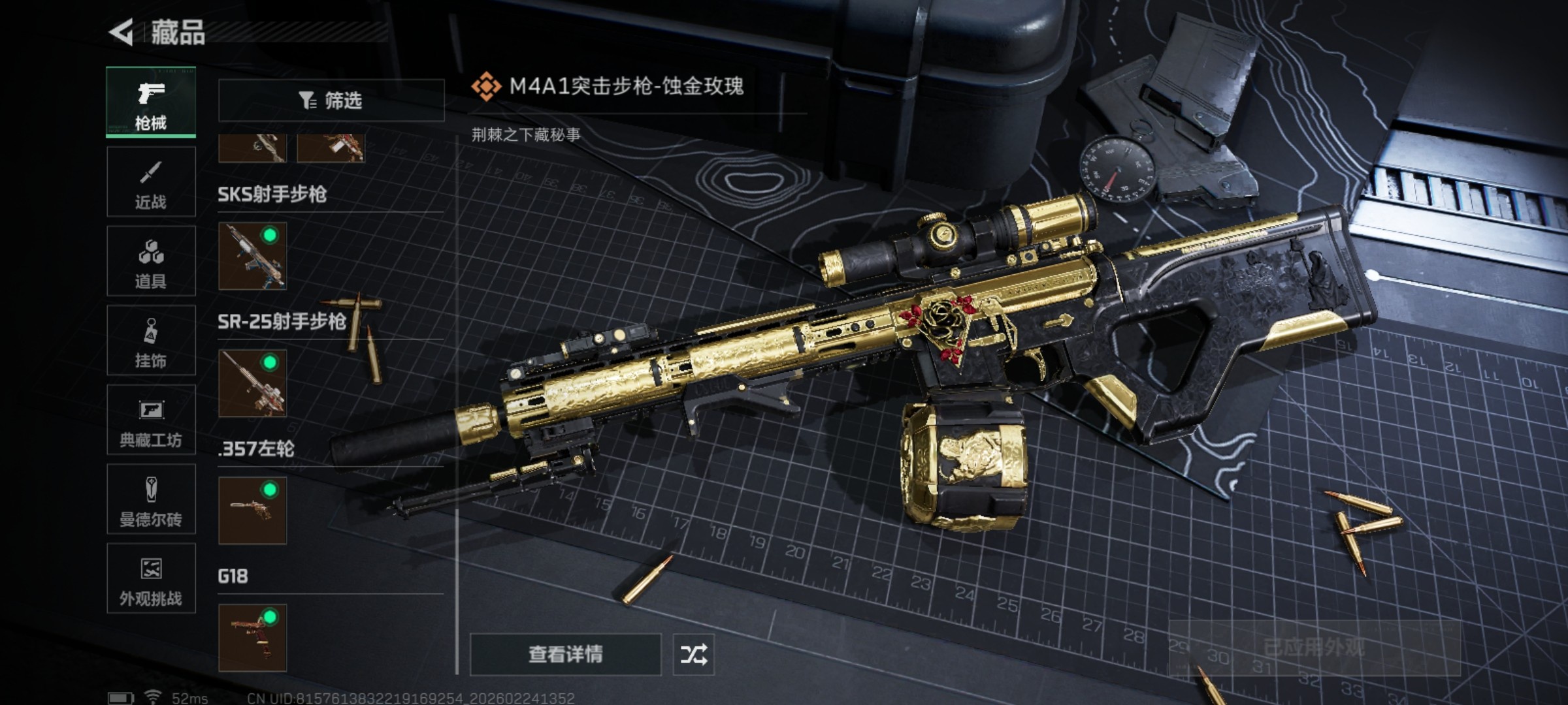 QQ区 哈夫币:500103 干员外观数:2 近战数:3 典藏数:2 枪械数:79 载具数:6 烽火地带等级:60 全面战场等级:25 烽火地带段位:钻石 全面战场段位:军士长 特勤处:技术中心Lv.3|工作台Lv.3|制药台Lv.3|防具台Lv.3 捆绑包:捞点薯条捆绑包 干员外观:露娜-金牌射手|红狼-电锯惊魂 近战:信条|怜悯|黑鹰 枪械:SCAR-H战斗步枪-启航|SG552突击步枪-运动员|ASh-12战斗步枪-鹅鸭杀|M4A1突击步枪-蚀金玫瑰|Vector冲锋枪-能天使·午夜邮差|