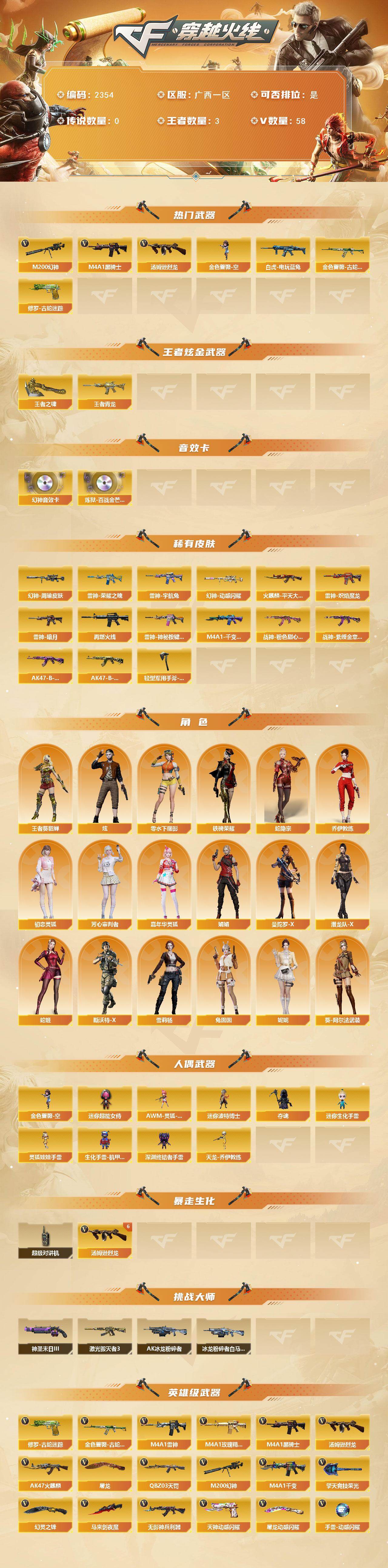 [17178160]广西一区-56V-3王者武器数-0炫金武器数【热门武器