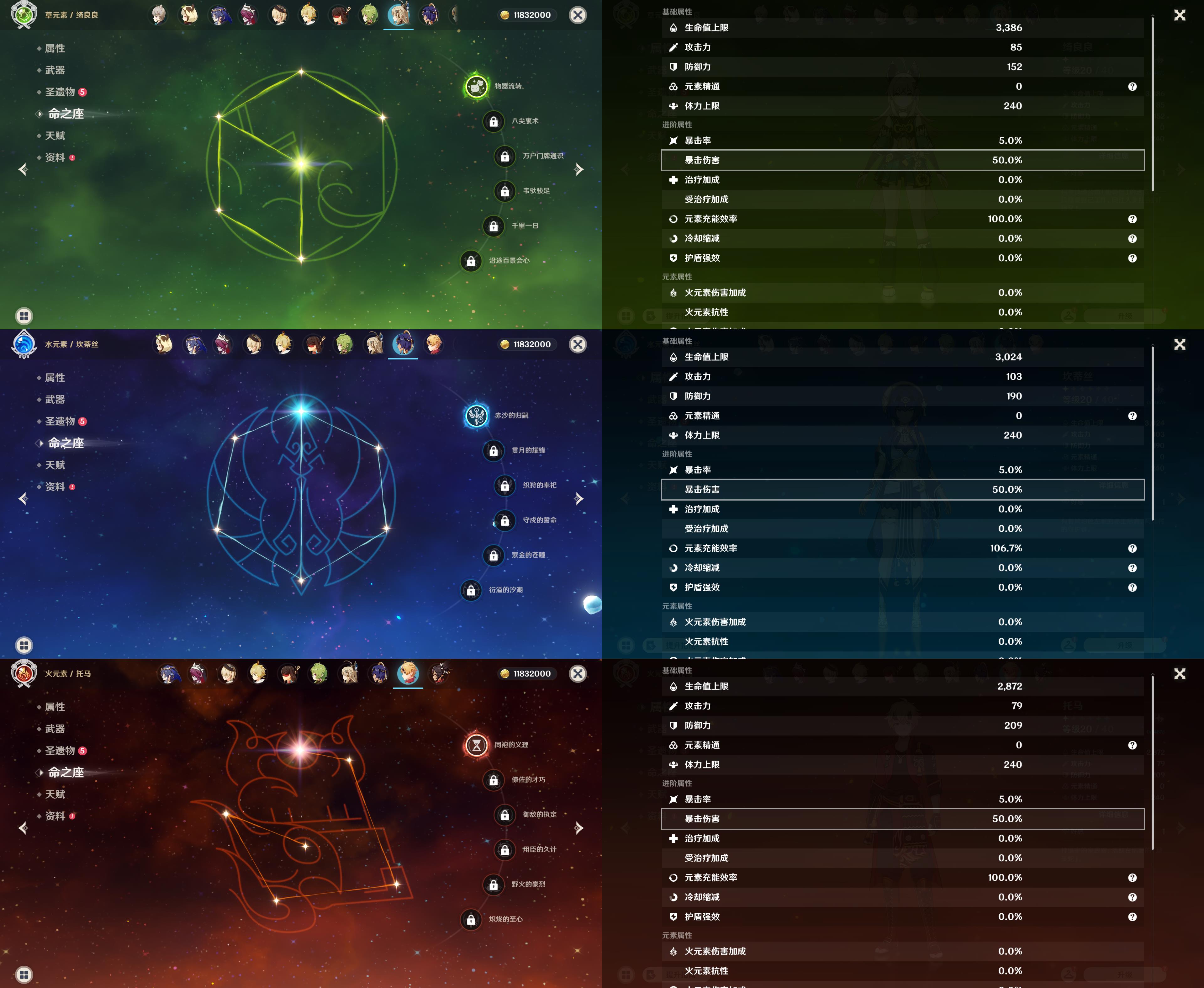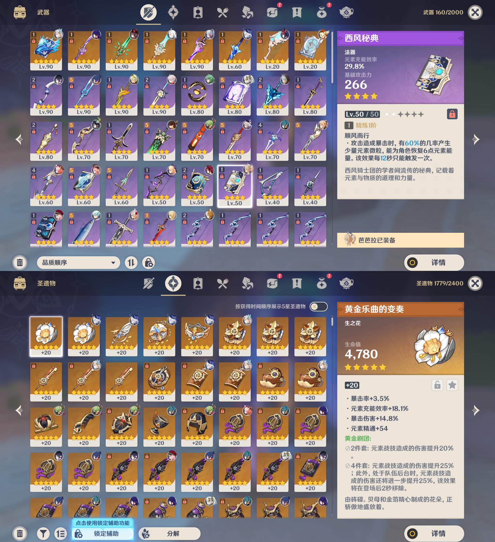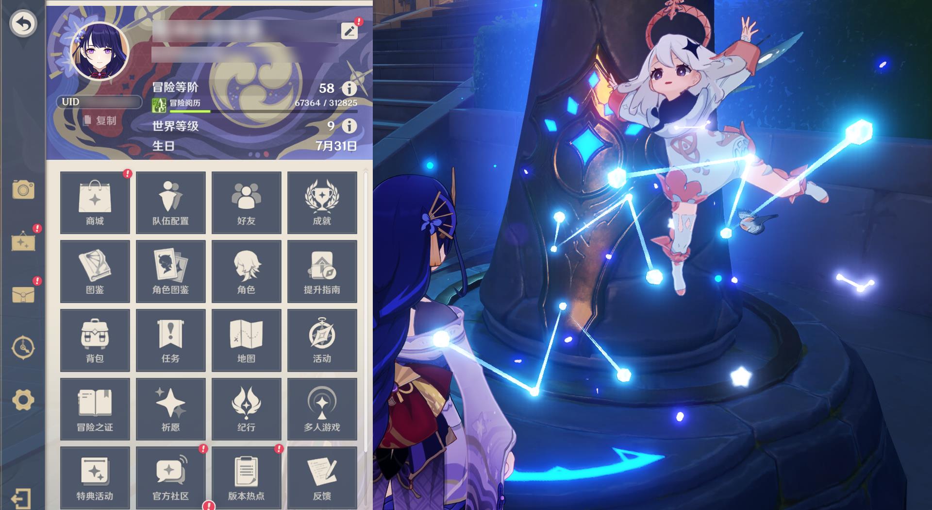 58级/33黄/女主/19个五星角色/8个五星武器/2命雷电将军/