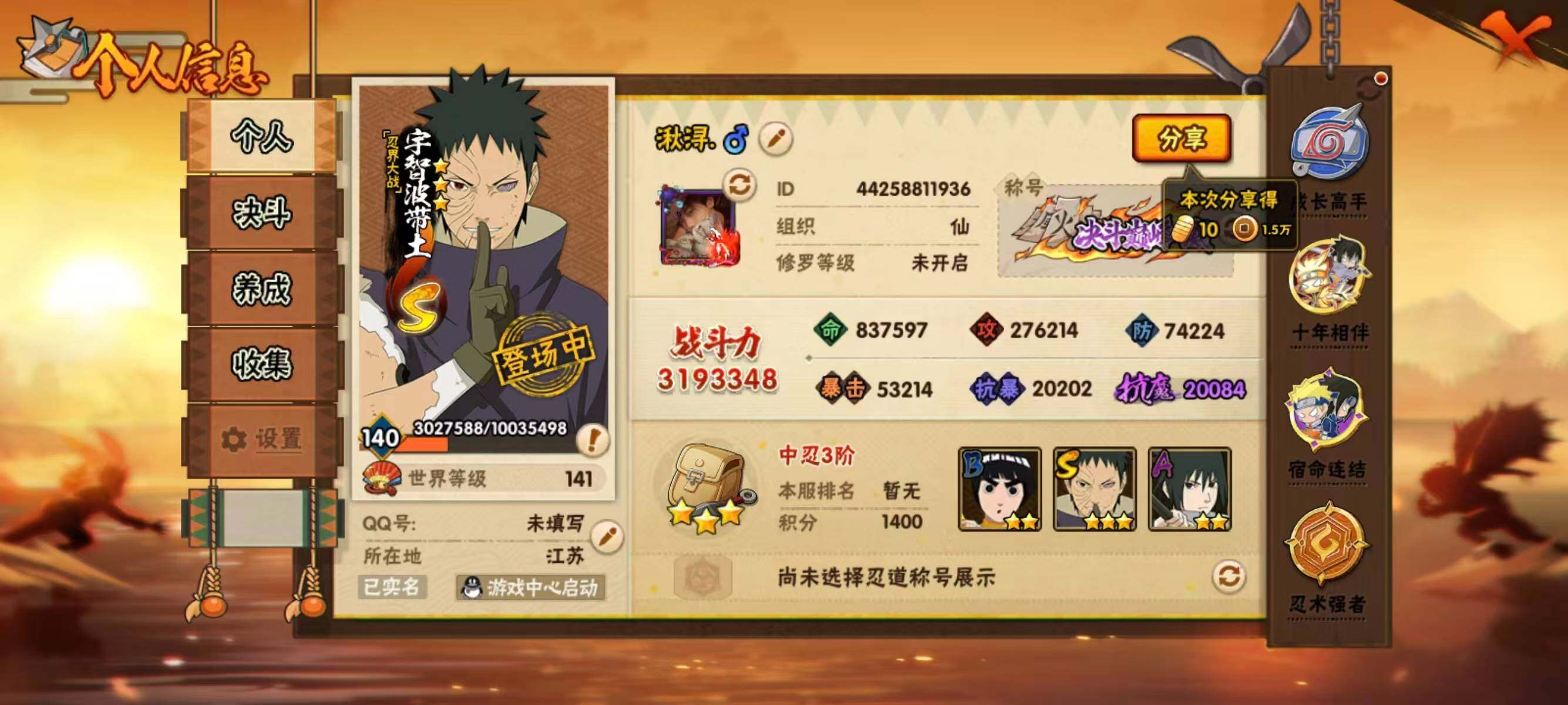 6S级忍者数-21A级忍者数【S级忍者】:宇智波带土「忍界大战」(3星),宇