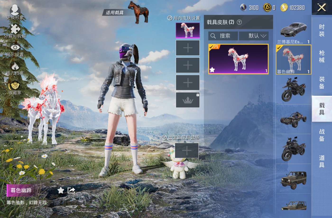 有一个马皮肤 还有兰博基尼