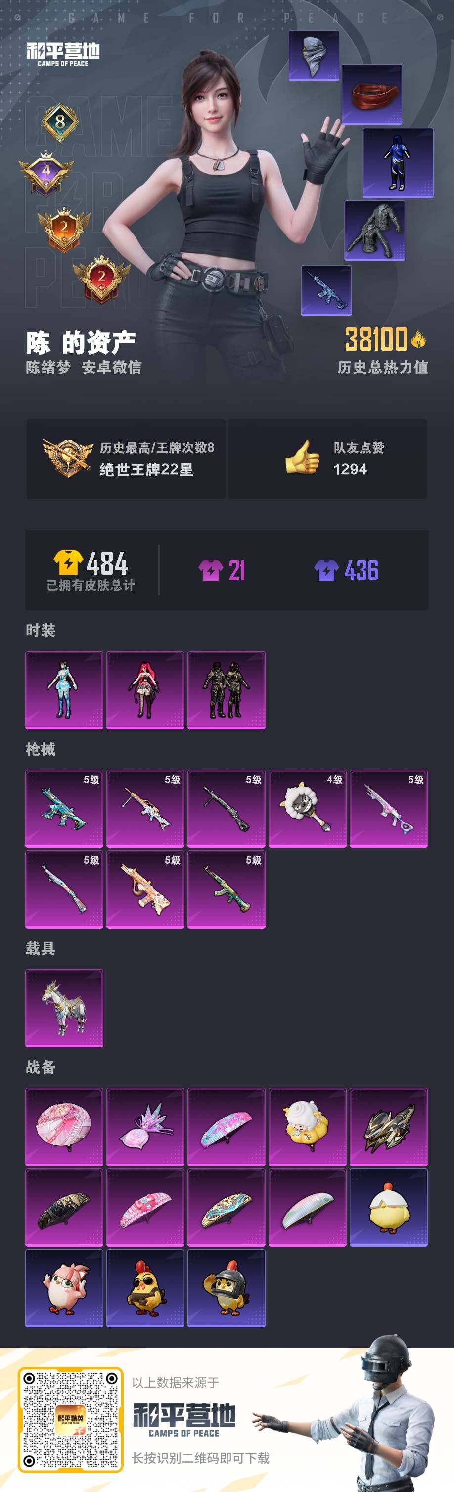 小身法! 【暗影哥特,都市猎人】-3粉装-8特效枪-1载具-2粉色飞行器-38100热力值-8王牌印记-83套装-148枪皮