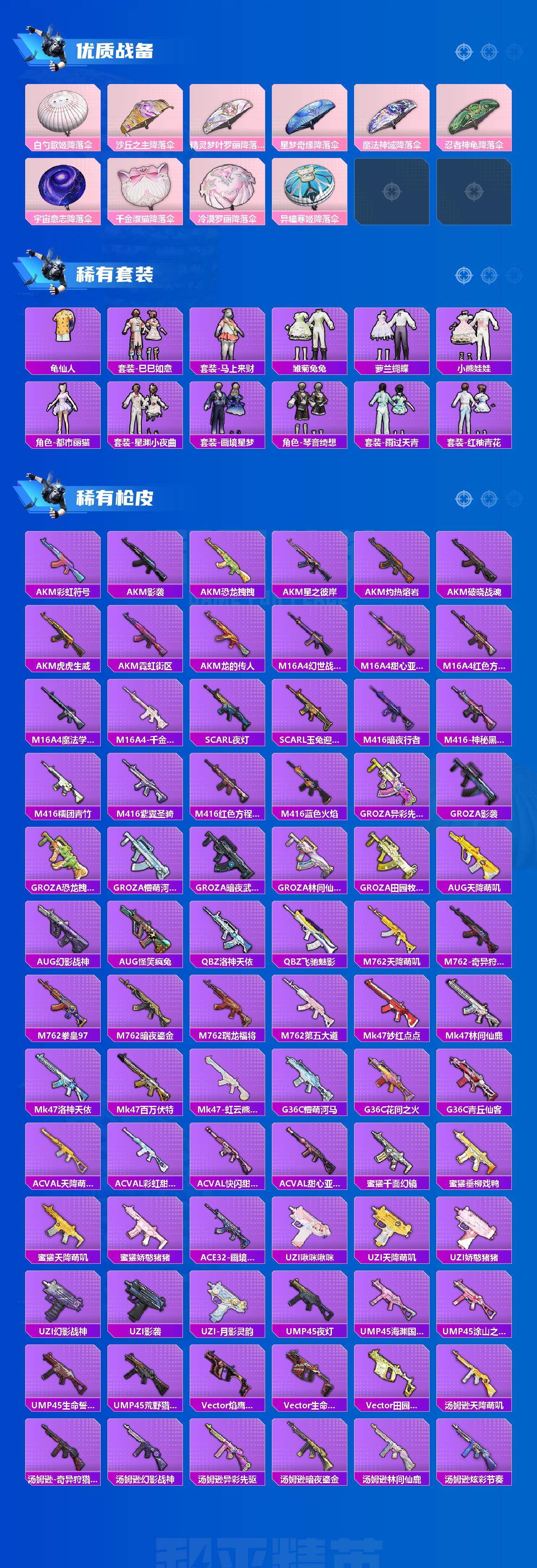 【热门品类】:粉装-雪国幻梦,粉装-梦幻火箭,套装-浪漫天命,套装-都市猎人,套装-小丑鱼,角色-军刀雅典娜,套装-忍者信条,套装-龟仙人,套装-暗影哥特,角色-Mark.06
