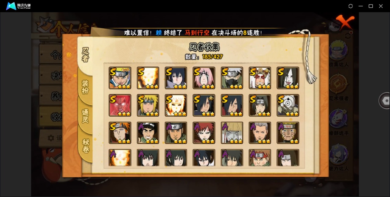 【S级忍者】宇智波斑「秽土转生·解」,宇智波佐助「永恒万花筒」,春野樱 「忍界大战」,漩涡鸣人 「九喇嘛连结」,迈特凯「死门」,宇智波斑 「木叶创立」,自来也 「舞之豪杰」,旗木卡卡西「须佐能乎」,波风水门「九喇嘛连结」,漩涡鸣人·宇智波佐助,宇智波斑「白面具」,宇智波鼬 「须佐能乎」,佩恩「天道」,波风水门,大蛇丸