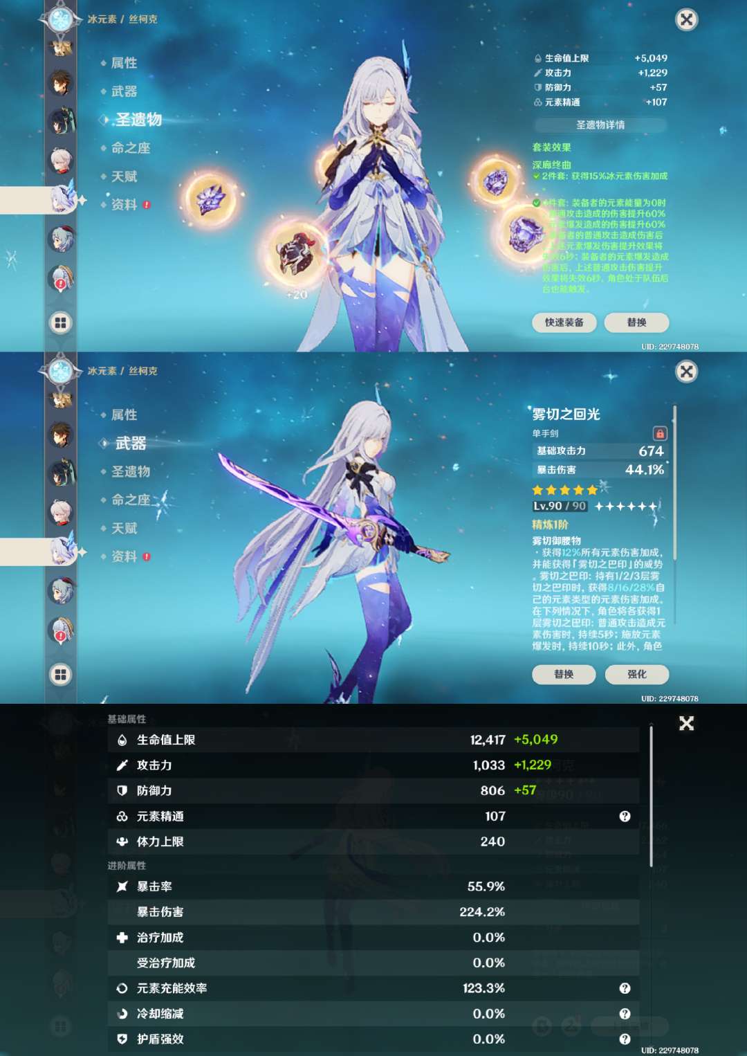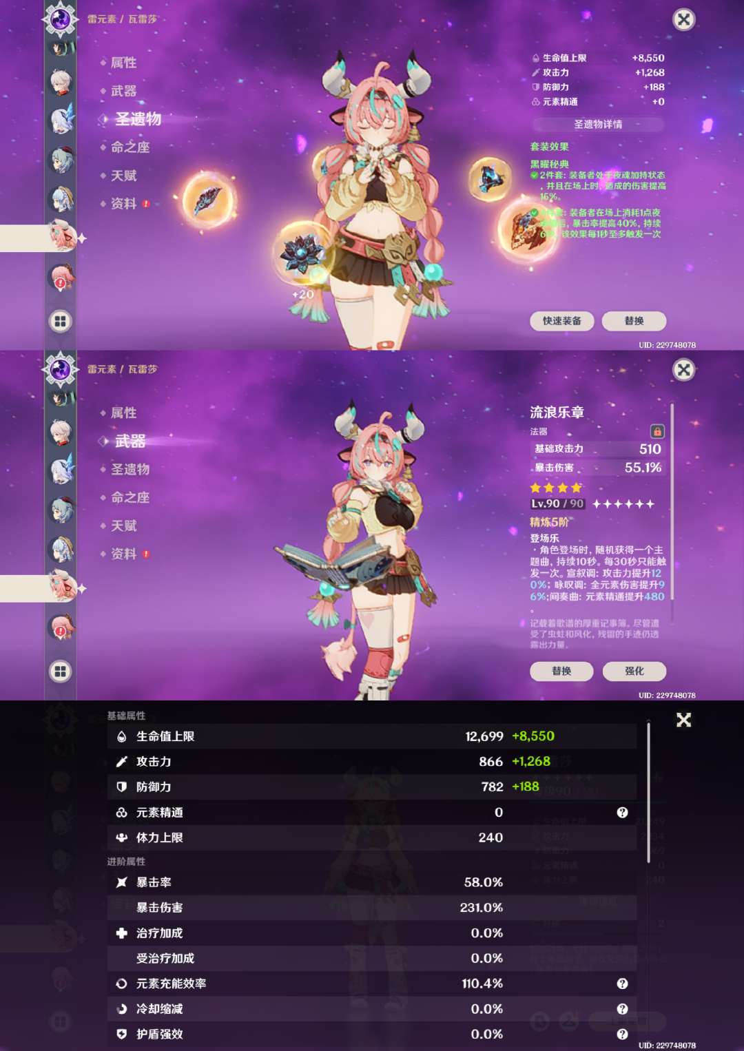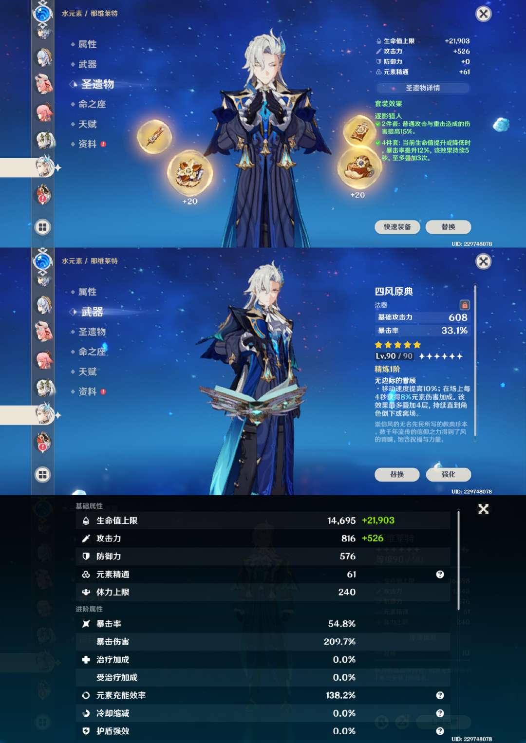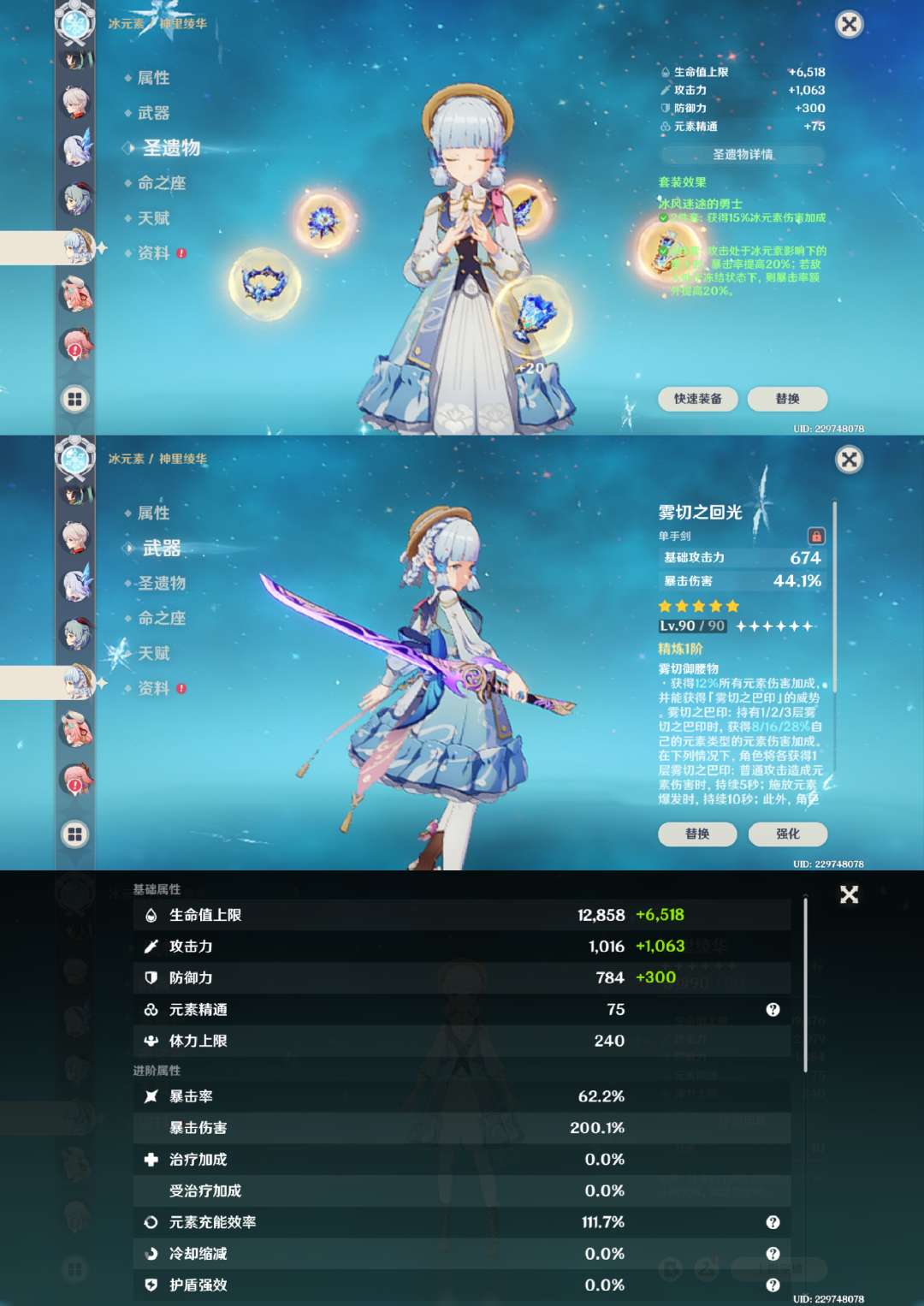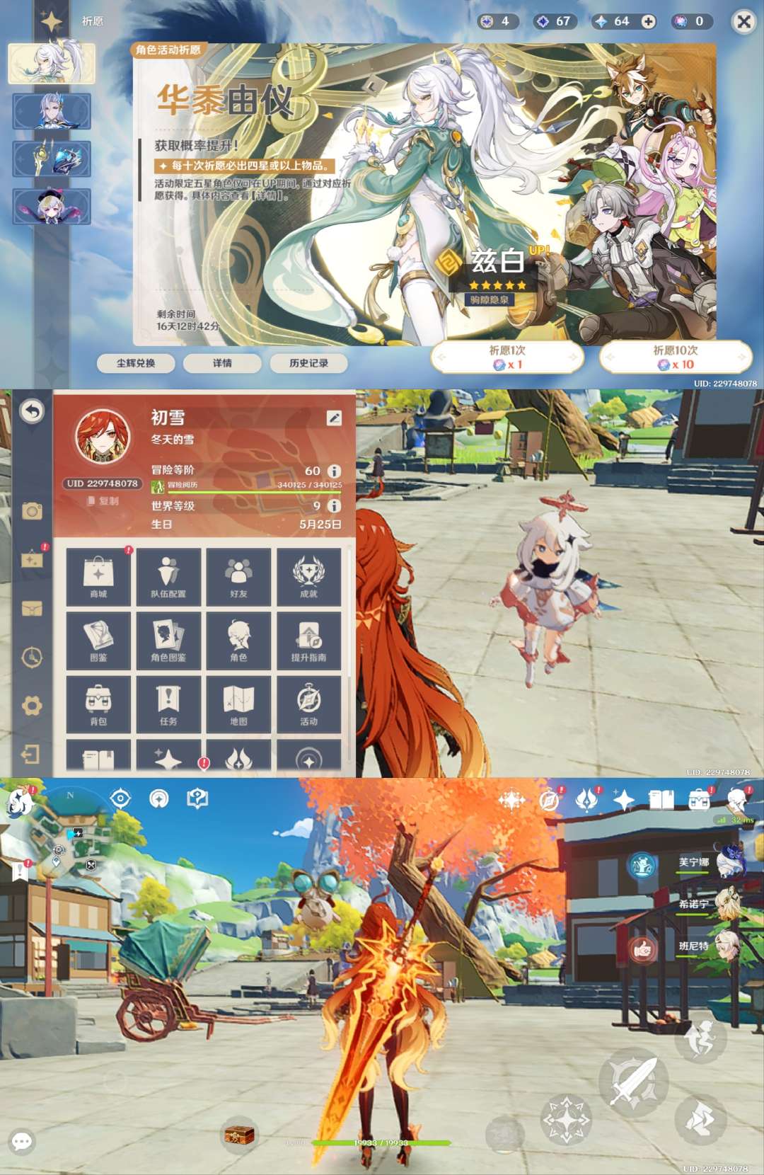 火神2命带专武,芙宁娜提纳里3命,龙王希诺宁万叶1命,神里绫华带专武,号里专武很多,角色练度都很高