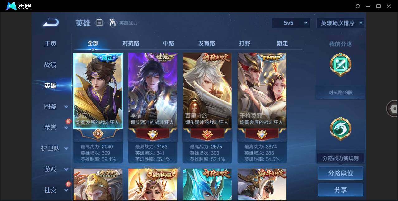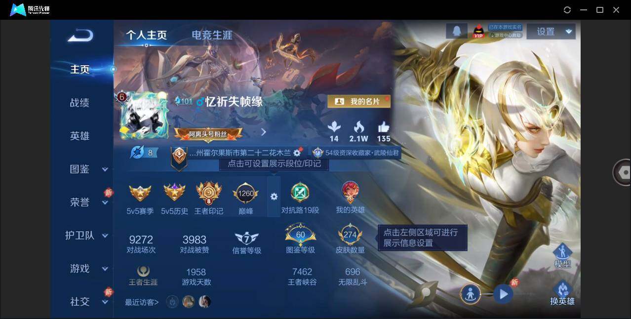 V6-最强王者段位-126英雄-274皮肤-1典藏皮肤-20传说-71史诗